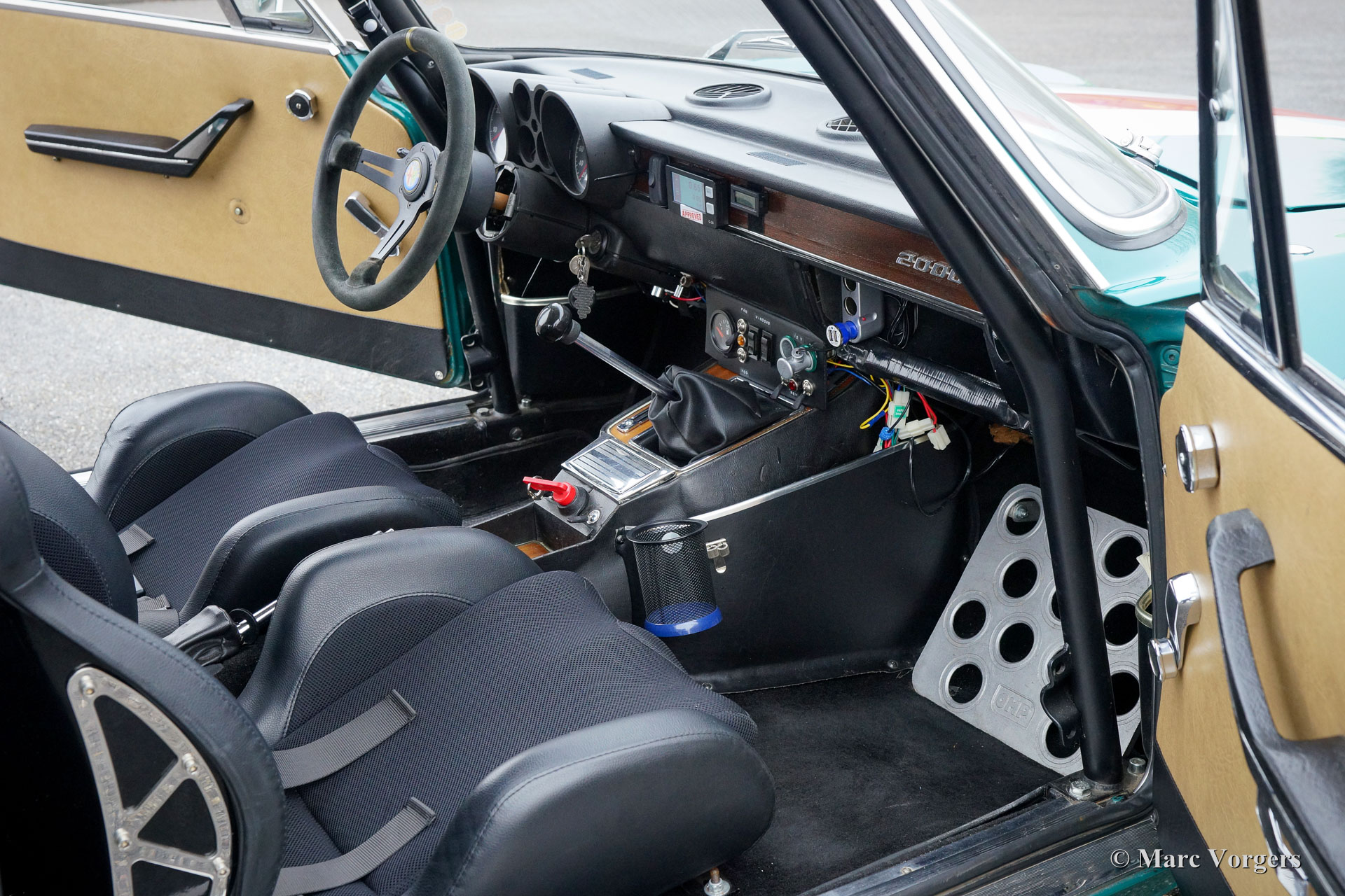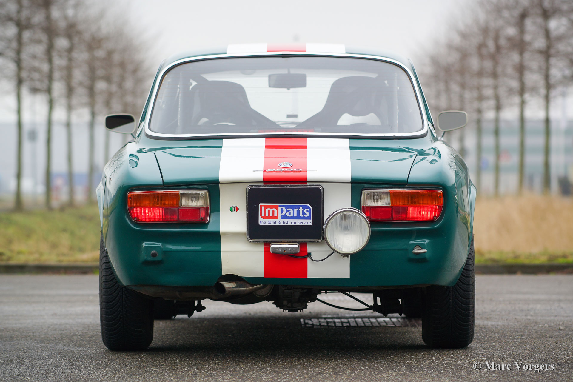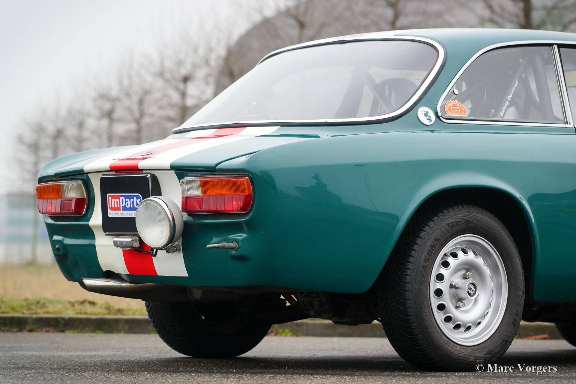 Alfa Romeo Giulia 2000 GTV rallyauto, jaar 1971. Kleur groen (Pine Green/ Pino Verde) met een zwart rally interieur. Deze fraaie Alfa Romeo ‘Bertone’ werd in het jaar 2009 in Nederland geregistreerd. Aansluitend werd de auto geprepareerd voor deelname aan historische rally evenementen waarvoor de auto uitermate geschikt is. De Alfa Romeo Giulia modellen uit de jaren 1960 en 1970 waren technisch al zeer geavanceerd; de auto’s beschikten over een aluminium motorblok met bovenliggende nokkenassen (DOHC), twee dubbele carburateurs, standaard vijfversnellingsbak en schijfremmen rondom. De 2000 GTV was zelfs uitgerust met een sperdifferentieel waardoor de 150 SAE-pk’s effectief op de weg overgebracht konden worden. Deze Alfa Romeo is uitgebreid rally geprepareerd. Deze echte rijdersauto verkeert in zeer goede en fraaie staat. Hierbij moet opgemerkt worden dat er aan de carrosserie een paar kleine roestplekjes aanwezig zijn (onderaan het linker portier en aan de rechter C-stijl).