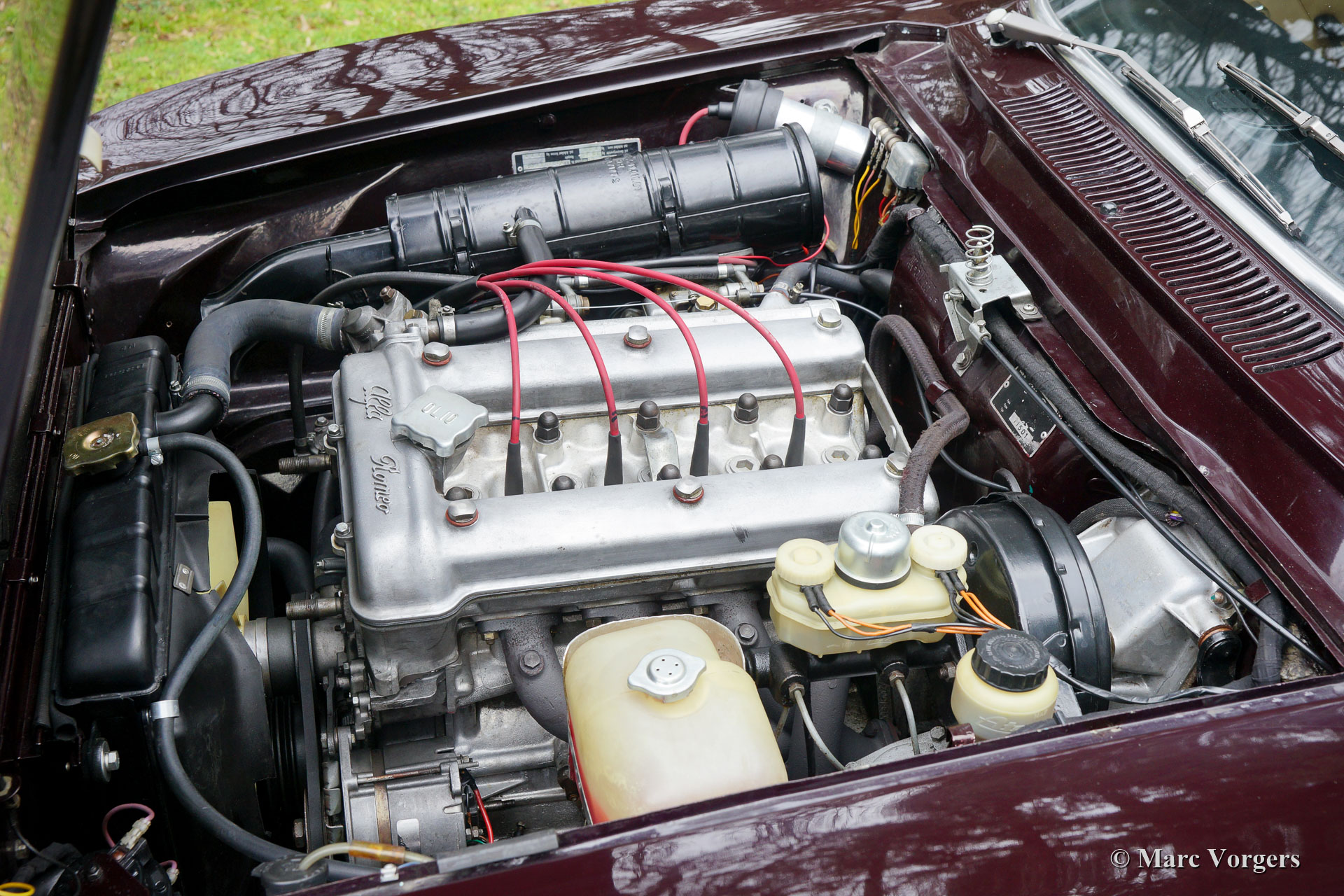 Deze prachtige Alfa Romeo werd in de afgelopen jaren uitvoering gerestaureerd. De auto verkeert in excellente staat en de auto rijdt uitstekend! Deze Giulia GTV toont prachtige originele details en de auto is voorzien van 'GB' Minilite lichtmetalen wielen. De Alfa Romeo Giulia modellen uit de de jaren 1960 en 1970 hadden alle kenmerken van rasechte sportwagens. De auto’s waren voorzien van een aluminium motorblok met dubbele bovenliggende nokkenassen (DOHC), hemisferische (halfbolvormige) verbrandingskamers, met natrium gevulde/ gekoelde uitlaatkleppen, een handgeschakelde vijfversnellingsbak en schijfremmen rondom. De 2000 GTV was zelfs uitgerust met een sperdifferentieel om de 150 SAE pk fatsoenlijk op straat te krijgen! Dit is een fantastische Alfa Romeo Giulia 2000 GTV!