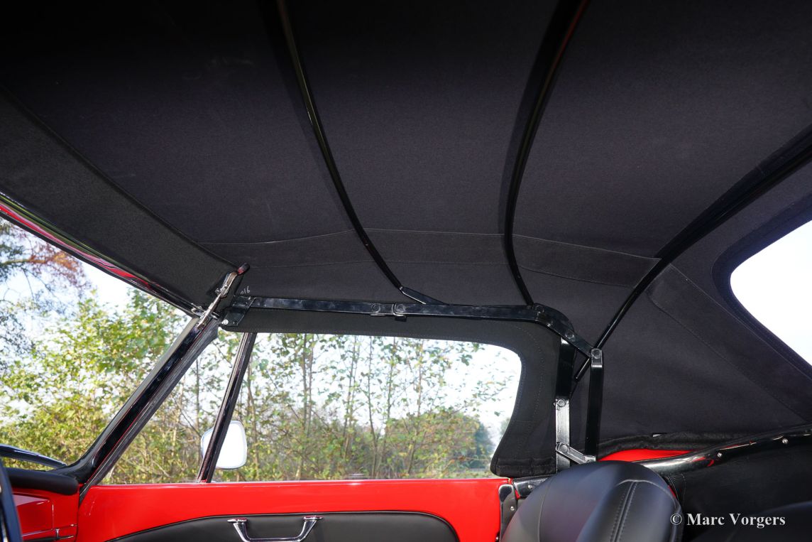 Alfa Romeo Giulietta Spider, jaar 1961. Chassisnummer AR 1713XX. Kleur rood (Rosso Italia) met een zwartleren interieur en zwart tapijt. Zwarte soft top. Deze fantastische Alfa Romeo Giulietta Spider werd nieuw verkocht in Nevada (USA), de auto is sinds het jaar 1998 in Nederland. In de periode 2010 - 2015 is deze prachtige Giulietta Spider uitvoerig en zeer fraai gerestaureerd. De auto verkeert in topstaat; concours! Rekeningen en een fotoreportage van de restauratie zijn aanwezig. Deze begeerlijke Giulietta is niet enkel beeldschoon; de auto rijdt ook geweldig, een TOP-exemplaar!
