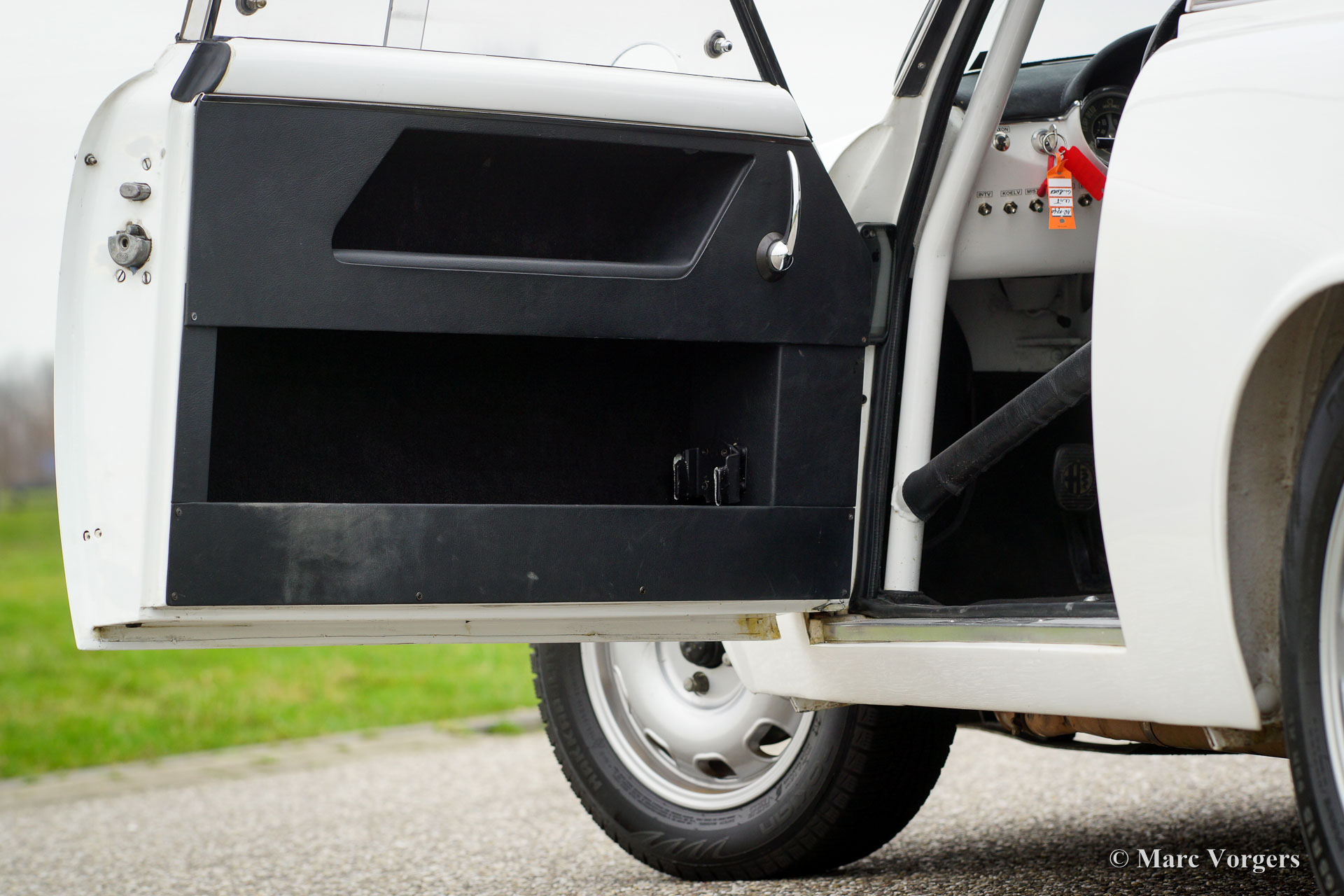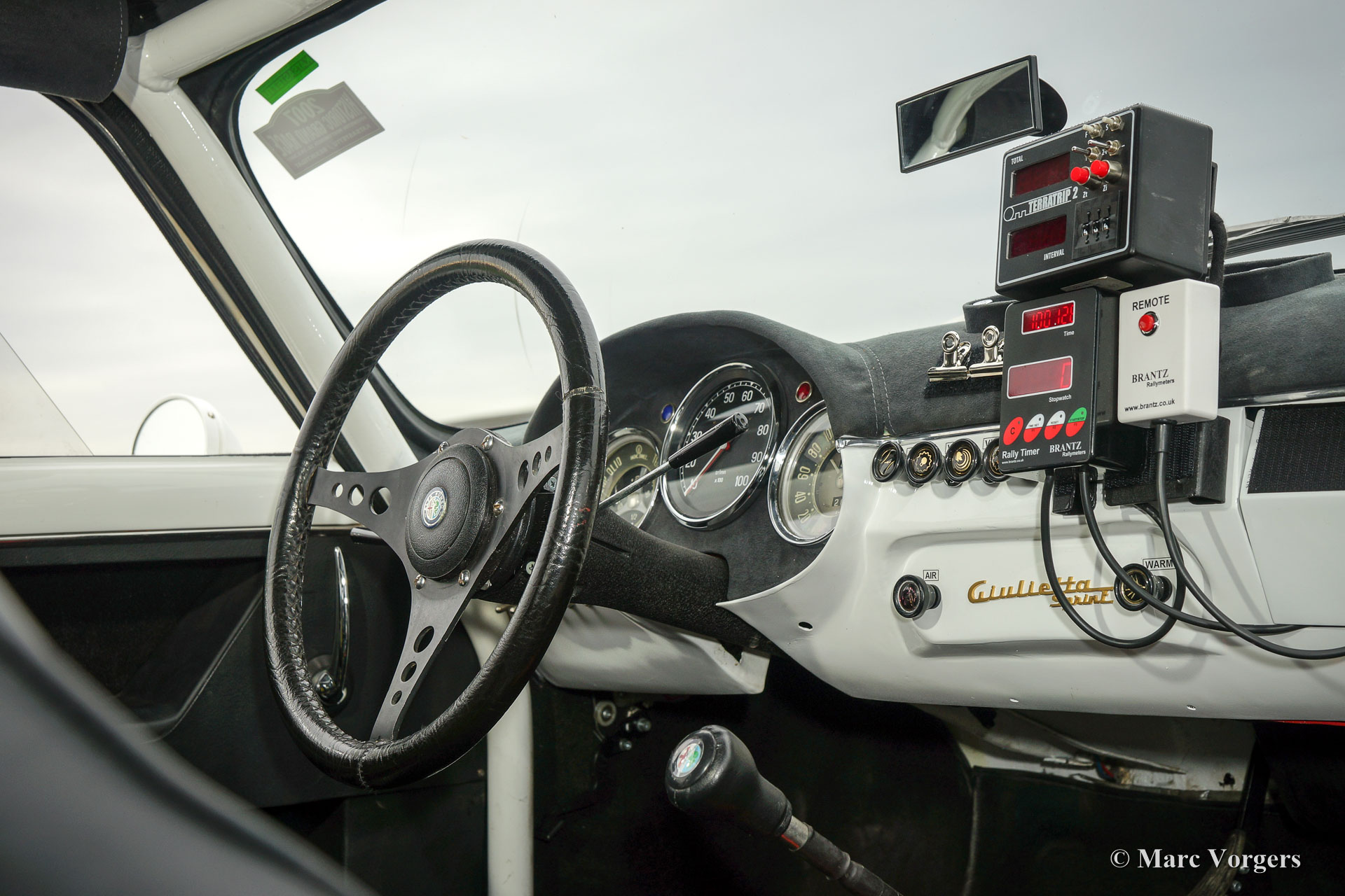 Alfa Romeo Giulietta Sprint Veloce, jaar 1959. Chassisnummer AR1493E096XX. Kleur wit (Sardenia White) met een zwart half lederen rally interieur met een alcantara dashboard. Deze geweldige Alfa Romeo Giulietta Sprint Veloce werd op 30 juli 1959 gebouwd, op 1 augustus 1959 werd de auto afgeleverd aan de eerste eigenaar in Brescia, de befaamde start en finishplaats van de Mille Miglia! Deze Alfa Romeo werd uitvoerig en uitstekend rally geprepareerd. De auto is onder andere uitgerust met een volledige rolkooi, carter en tankbeschermers, aluminium radiator, speciale rvs uitlaat, oliekoeler, extra benzinepomp, sperdifferentieel, sleepoog voor en achter, rallystoelen, vierpunt-veiligheidsgordels, Tripmaster, extra interieurverlichting en mistlampen. Een indrukwekkende rallyauto!