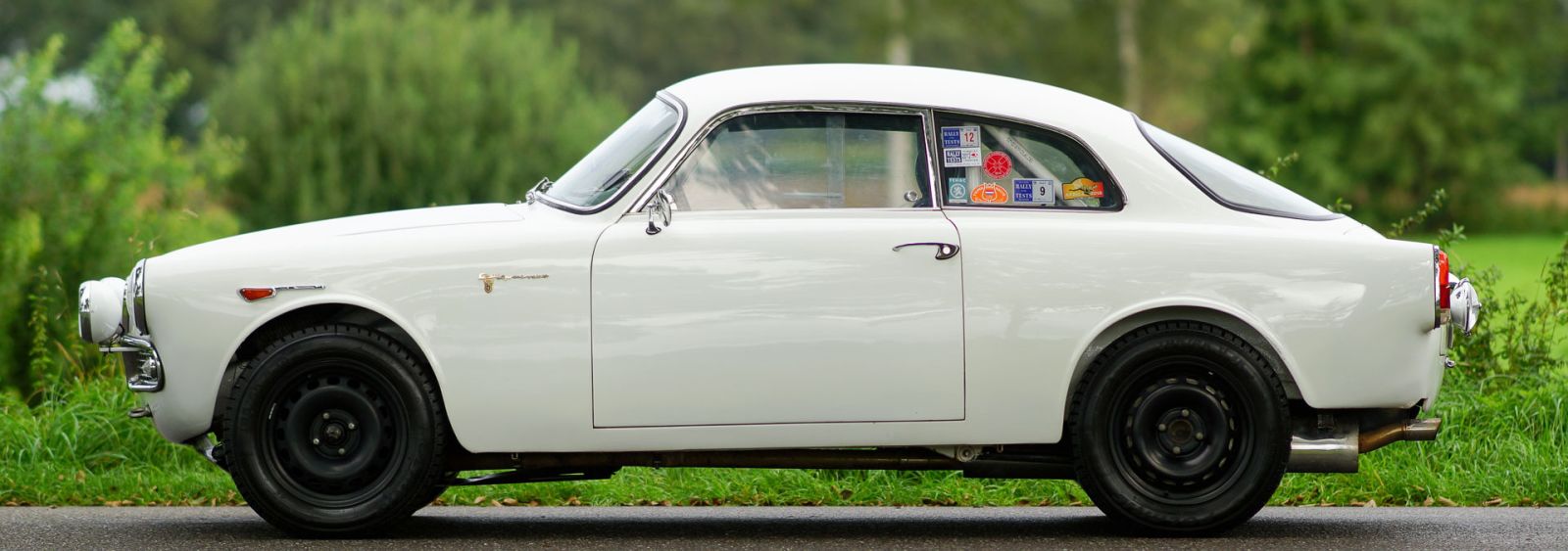 Alfa Romeo Giulietta Sprint Veloce, jaar 1959. Kleur wit (Bianco Sardenia), zwarte wielen en een zwart rally interieur met een donkergrijs alcantara bekleed dashboard. Deze prachtige Alfa Romeo Giulietta Sprint Veloce werd gebouwd op 30 juli 1959. Op 1 augustus werd de auto afgeleverd bij de eerste eigenaar in Brescia, Italië. Vervolgens werd de Alfa Romeo naar Nederland geëxporteerd, waar de auto werd uitvoerig werd gerestaureerd, gereviseerd en geprepareerd voor historische (lange afstand) rallyevenementen. In het jaar 2010 vond deze fantastische Giulietta Sprint Veloce een nieuwe eigenaar in Zweden. De auto is nog altijd geregistreerd in Zweden. Deze prachtige rallyauto is voorzien van een volledige rolkooi, oliecarter en benzinetank-beschermplaten, een aluminium radiator, een speciale roestvrijstalen uitlaat, een oliekoeler, extra benzinepomp, sperdifferentieel, sleepoog aan de voor- en achterzijde, speciale rallystoelen, vierpunts veiligheidsgordels, Tripmaster, extra interieurlampen en extra verstralers en mistlampen de voorzijde. De auto wordt compleet geleverd met een FIVA-identiteitskaart. Onlangs heeft de auto met succes deelgenomen aan een langeafstandsevenement door Afrika. Natuurlijk is de auto nadien weer volledig nagezien en geserviced. De auto wordt geleverd met veel originele onderdelen: motor, ophanging, benzinetank, achteras en uitlaat. Dit is een indrukwekkende en fraaie historische rallyauto!
