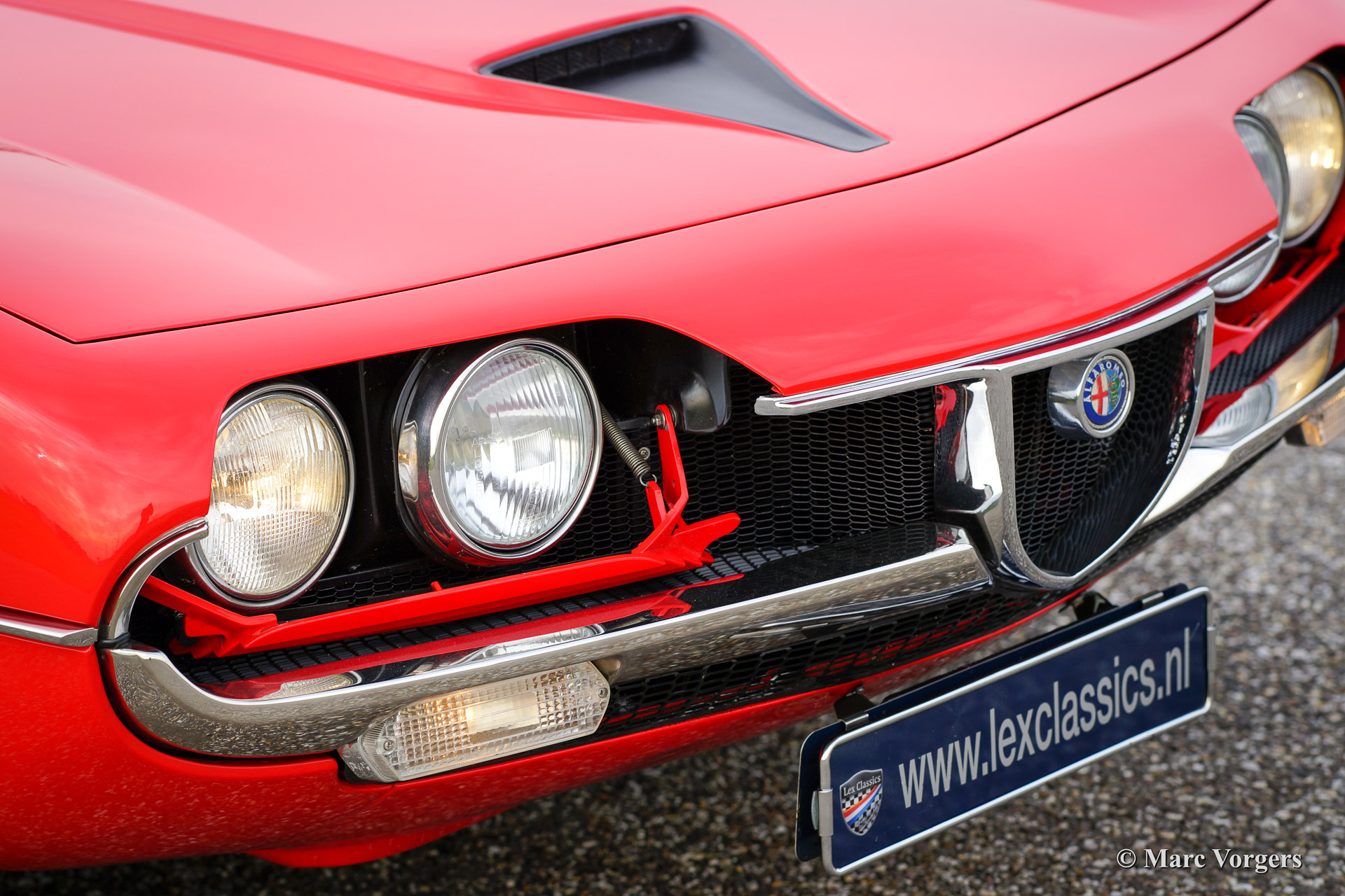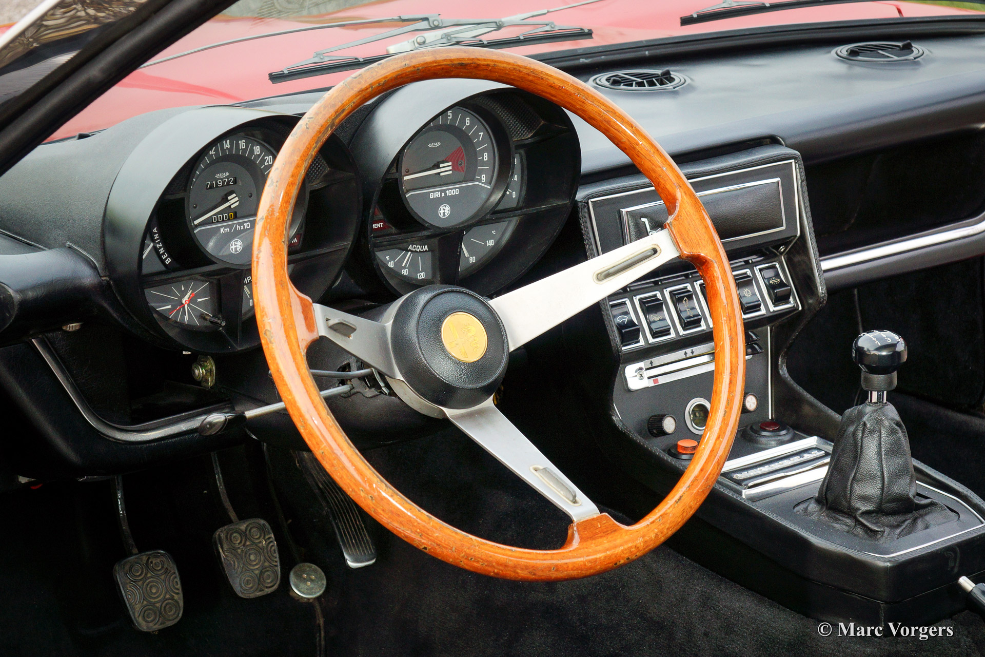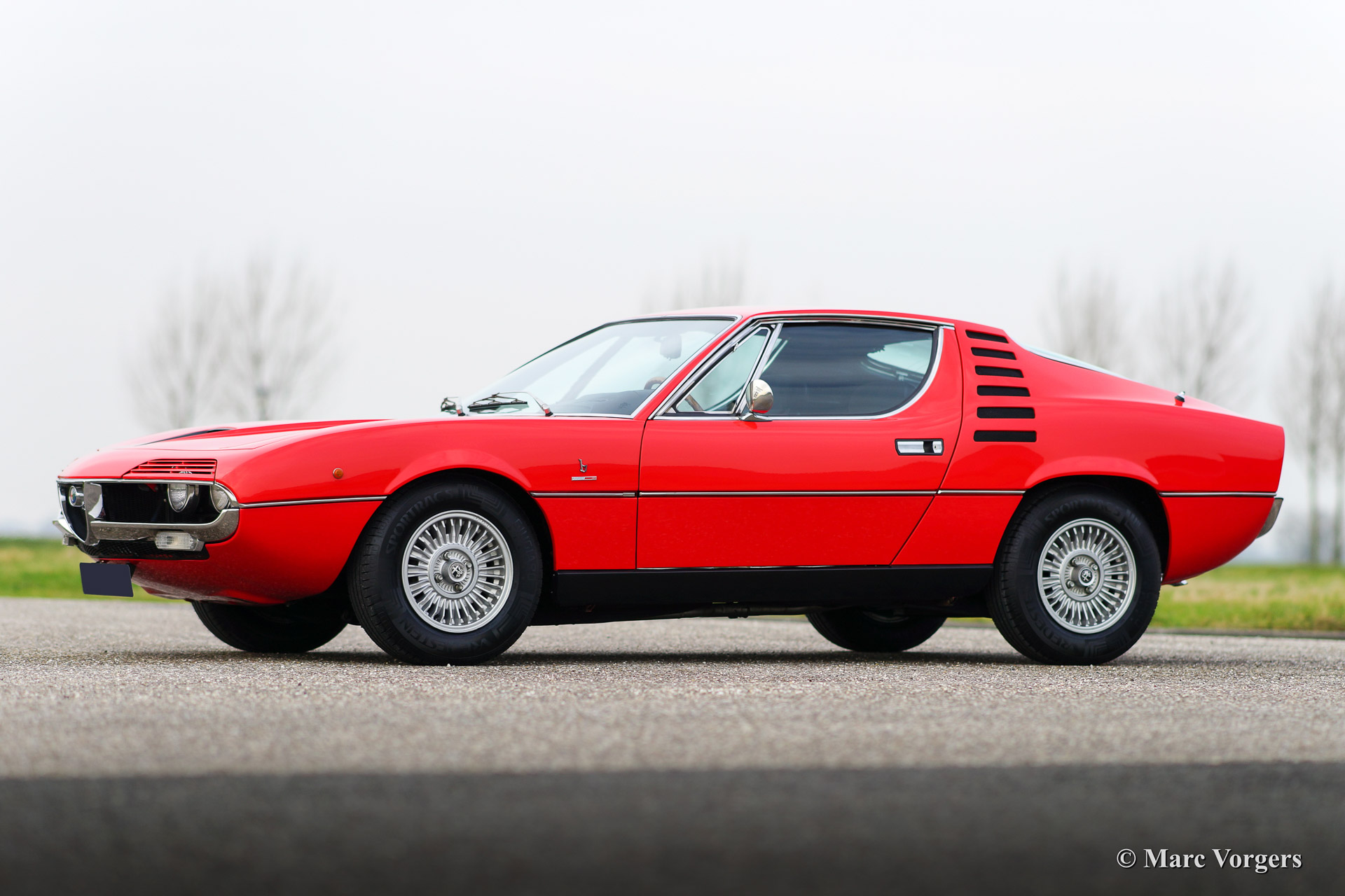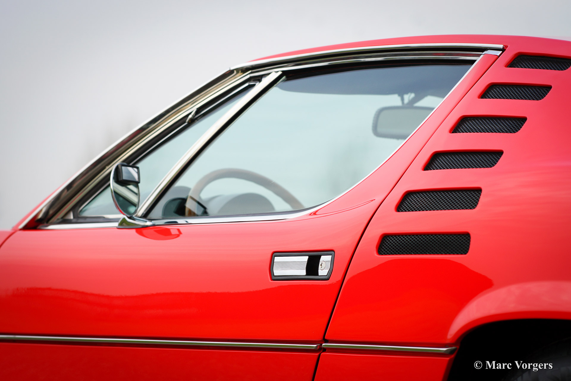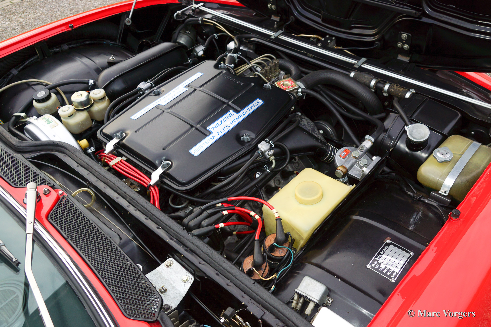 Alfa Romeo Montreal, year 1975. Colour red with a black cloth interior. Black carpet. Chassis number AR1428XXX. This magnificent Alfa Romeo Montreal is in to superb (excellent+) condition and the car drives fantastic! This automobile has been cherished by a true Alfa Romeo enthusiast who has taken excellent care of this tremendous car. The car was delivered new in the Netherlands. This Montreal shows the original details and the car comes with the original booklets like the owners manual and service booklet. The V8 engine runs perfectly and the sound is... very addictive! A truly excellent specimen and a sound investment.