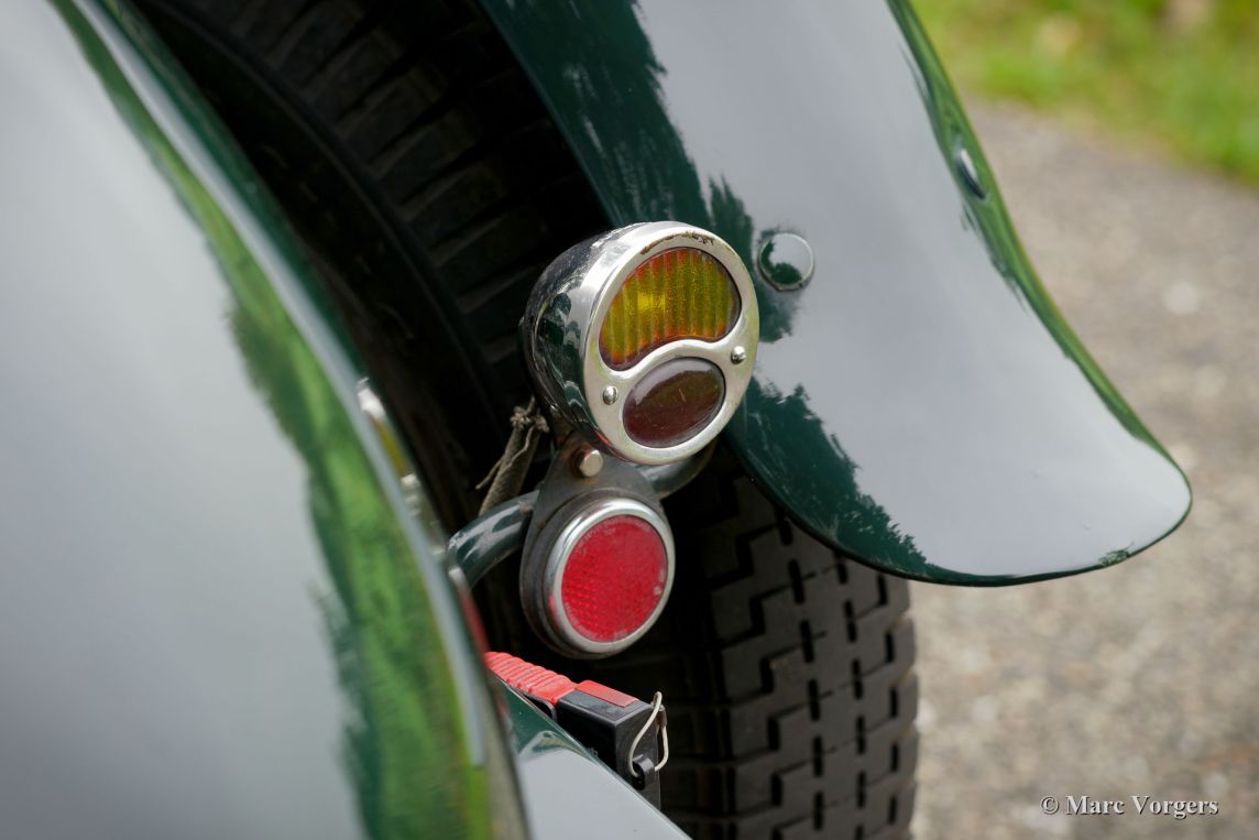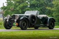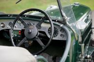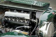 Alvis 4.3 Liter Special, jaar 1939. Exterieurkleur donker ‘British Racing Green’, interieur met donkergroene lederen stoelen. Zwarte soft-top en een grijze tonneau cover. De 4.3 liter is de sterkste en zeldzaamste productieauto ooit gebouwd door Alvis. Deze magnifieke Alvis 4.3 liter special kreeg vele decennia geleden een speciale tweezits carrosserie in ‘Brooklands’ race-stijl. Deze Alvis is nieuw verkocht in het Verenigd Koninkrijk en in 1999 is de auto naar Nederland geëxporteerd. Het oude Britse kenteken (BRV 55) is nog aanwezig. In Nederland heeft deze indrukwekkende vooroorlogse automobiel maar één eigenaar gekend. De eigenaar heeft in de afgelopen 22 jaar aan vele historische evenementen deelgenomen, deze Alvis is een bekende automobiel in Nederlandse Alvis kringen. Deze Alvis toont een prachtig vintage patina en de auto verkeert in een goede en zeer betrouwbare conditie. De auto is uitgerust met de beroemde volledig gesynchroniseerde Alvis 4-versnellingsbak, het originele ontstekingssysteem, dubbele benzinepompen, hydraulische remmen, een elektrische koelventilator (voor extra koeling in het moderne verkeer) en 19 inch spaakwielen met Dunlop Racing 6.50 x 19 banden. Deze indrukwekkende Alvis 4.3 liter special uit 1939 is een auto voor de echte ‘vintage’ sportwagen liefhebber die weet wat een machine van dit kaliber kan brengen als deze met een bekwame hand wordt behandeld, gekoesterd en gereden.