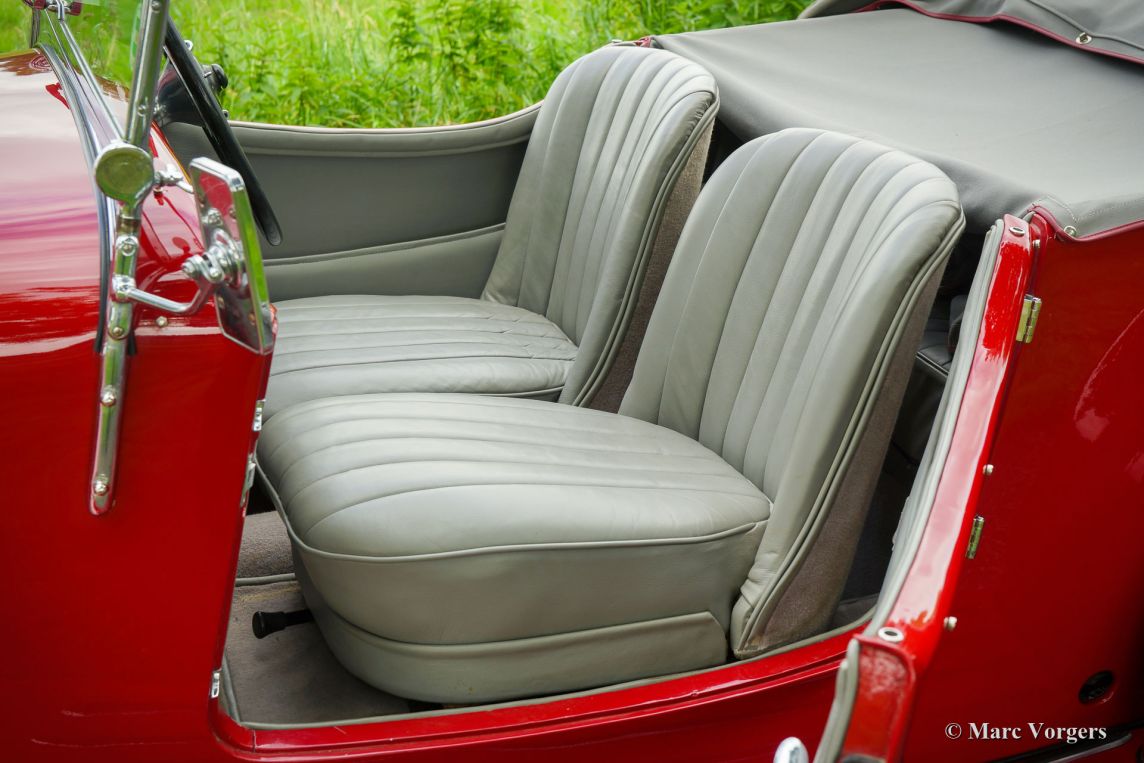 Alvis Speed 20 SA tourer, jaar 1932. Kleur rood gecombineerd met een lichtgrijs lederen interieur en lichtgrijs tapijt. Lichtgrijze kap, tonneaucover en kap-afdekking, allemaal afgezet met rode biezen. Deze schitterende Alvis Speed 20 SA Tourer werd in 1932 nieuw verkocht aan een familie Hebert in Engeland. De originele bestelformulieren voor het chassis en de Vanden Plas Tourer carrosserie zijn aanwezig in het uitgebreide historiedossier. De historie is vanaf dag 1 compleet en alle vorige eigenaren zijn bekend! Deze super originele Alvis Speed 20 is een ‘matching numbers’ auto, het originele Alvis ‘car record’, met vermelding van de originele nummers is aanwezig. De laatste eigenaar koestert de Alvis sinds 1996. In de periode 2000-2003 is de auto door een gespecialiseerd bedrijf volledig en perfect gerestaureerd. De mechanische componenten zijn gereviseerd en gerestaureerd door Alvis-specialist Early Engineering in het Verenigd Koninkrijk. De restauratie is tot in de puntjes uitgevoerd. Een uitgebreide fotoreportage van de restauratie is aanwezig. De automobiel verkeert in excellente tot sublieme conditie en de auto rijdt, schakelt, remt en stuurt voortreffelijk! Dit is een zeldzame kans om een Alvis Speed 20 in prachtig gerestaureerde en nog super originele staat te bemachtigen, compleet met volledige historie en ‘matching numbers’. Deze Alvis Speed 20 SA Tourer is een fantastische vondst voor de Alvis verzamelaar en liefhebber.