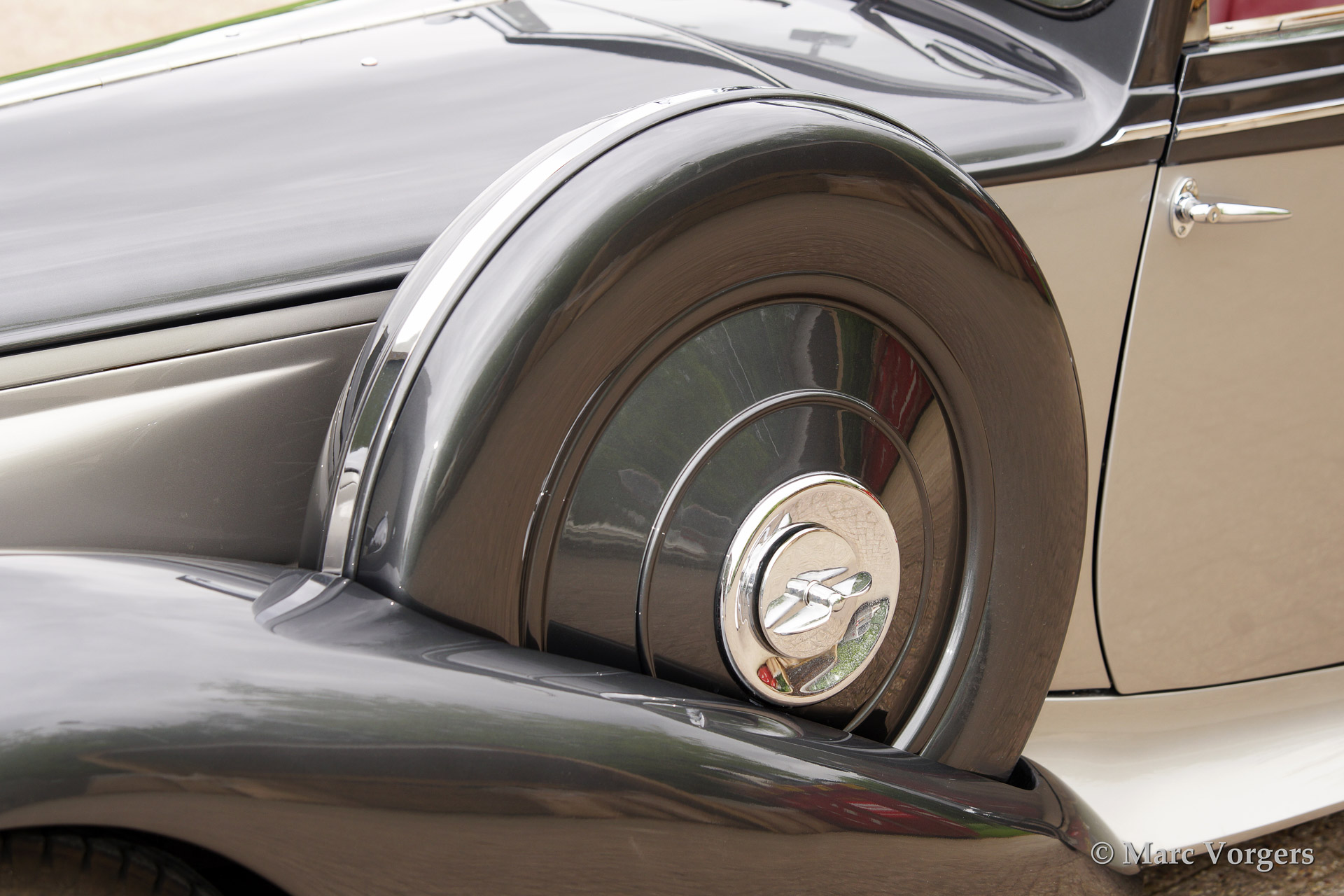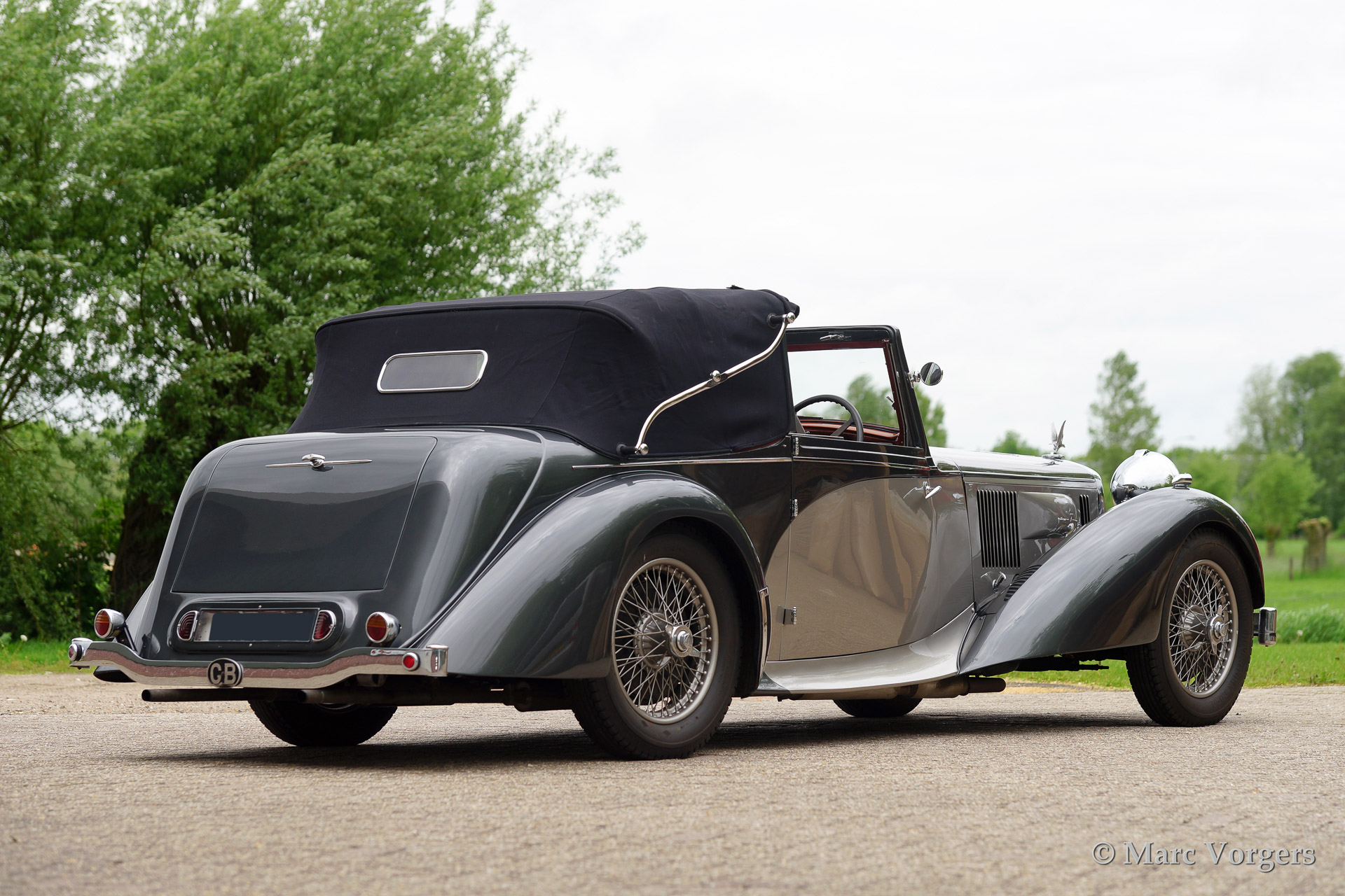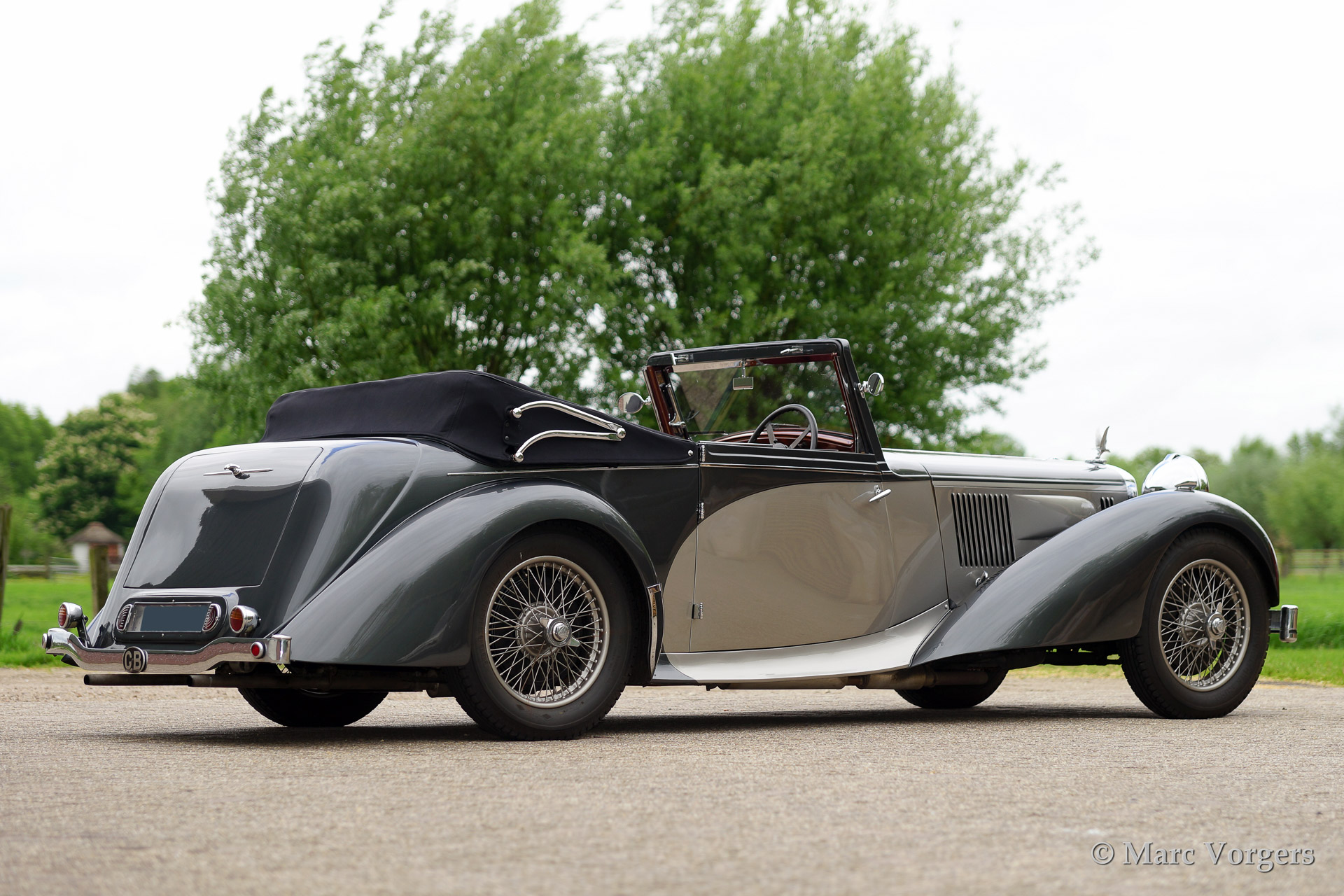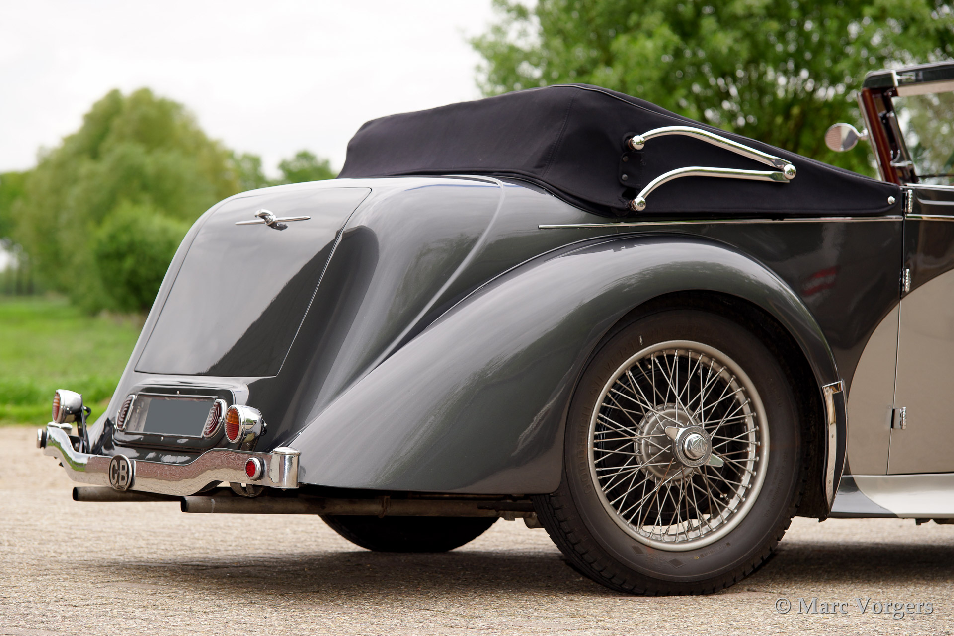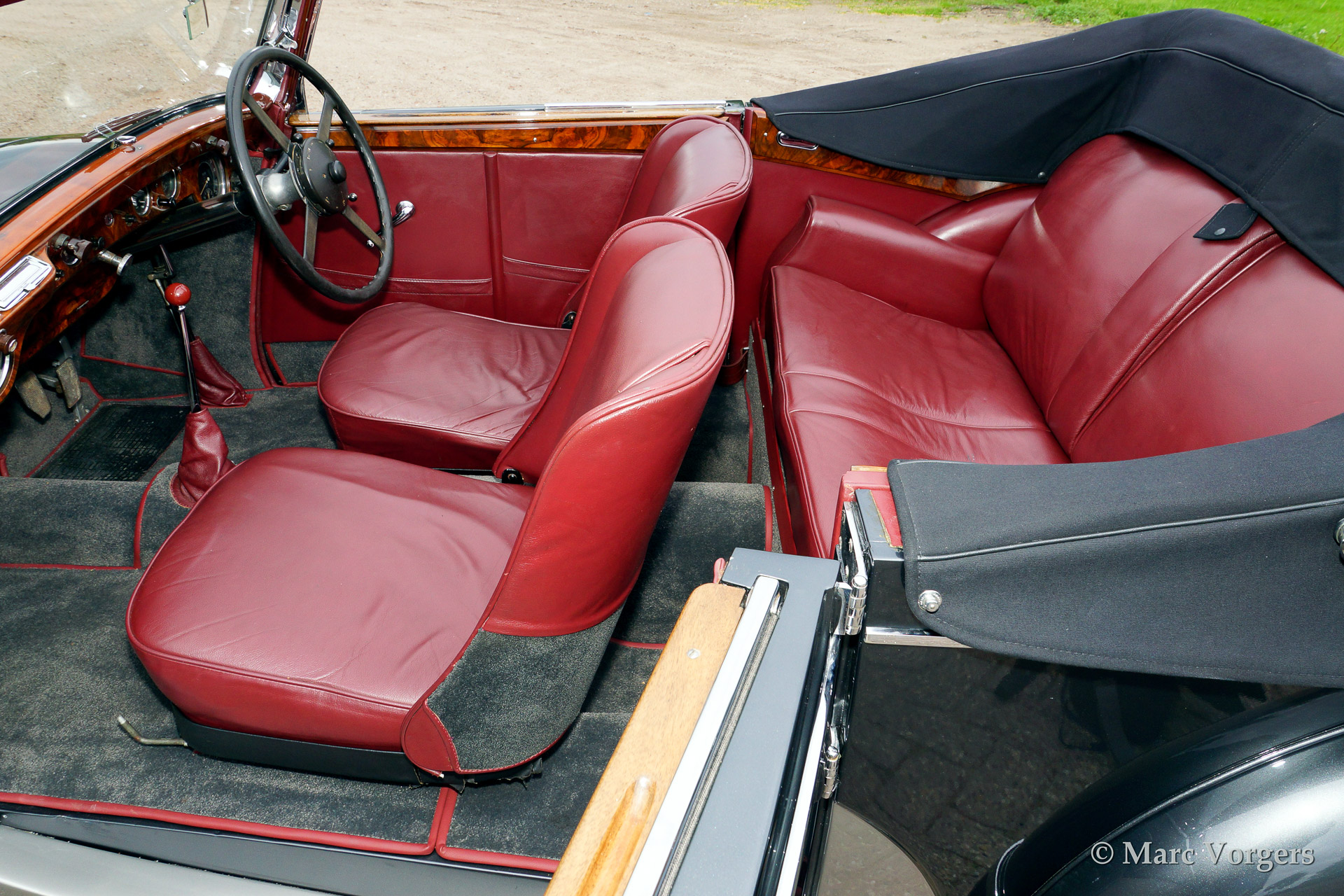 Alvis Speed 25 Charlesworth DHC, bouwjaar 1939. kleur 'two tone', zilver metallic/grijs metallic met een donkerrood lederen interieur en grijs tapijt. Zwarte cabrioletkap en hood cover. Deze geweldige Alvis Speed 25 is een schaarse automobiel, er werden slechts 62 Charlesworth Drophead coupe's gebouwd. Alvis is een van de grote vooroorlogse Engelse merken. Een echt 'ingenieursmerk' waarbij de technici zelf bijna alle delen ontwierpen waar veel andere merken deze inkochten. De volledig gesynchroniseerde versnellingsbak is hiervan een voorbeeld. In vergelijking met de toenmalige concurrentie werkt die van Alvis perfect en kraakvrij zonder te 'double declutchen' met de koppeling. De Charlesworth Drophead Coupe wordt gekenmerkt door een speciale 3-positie kap. Open, half open of gesloten.