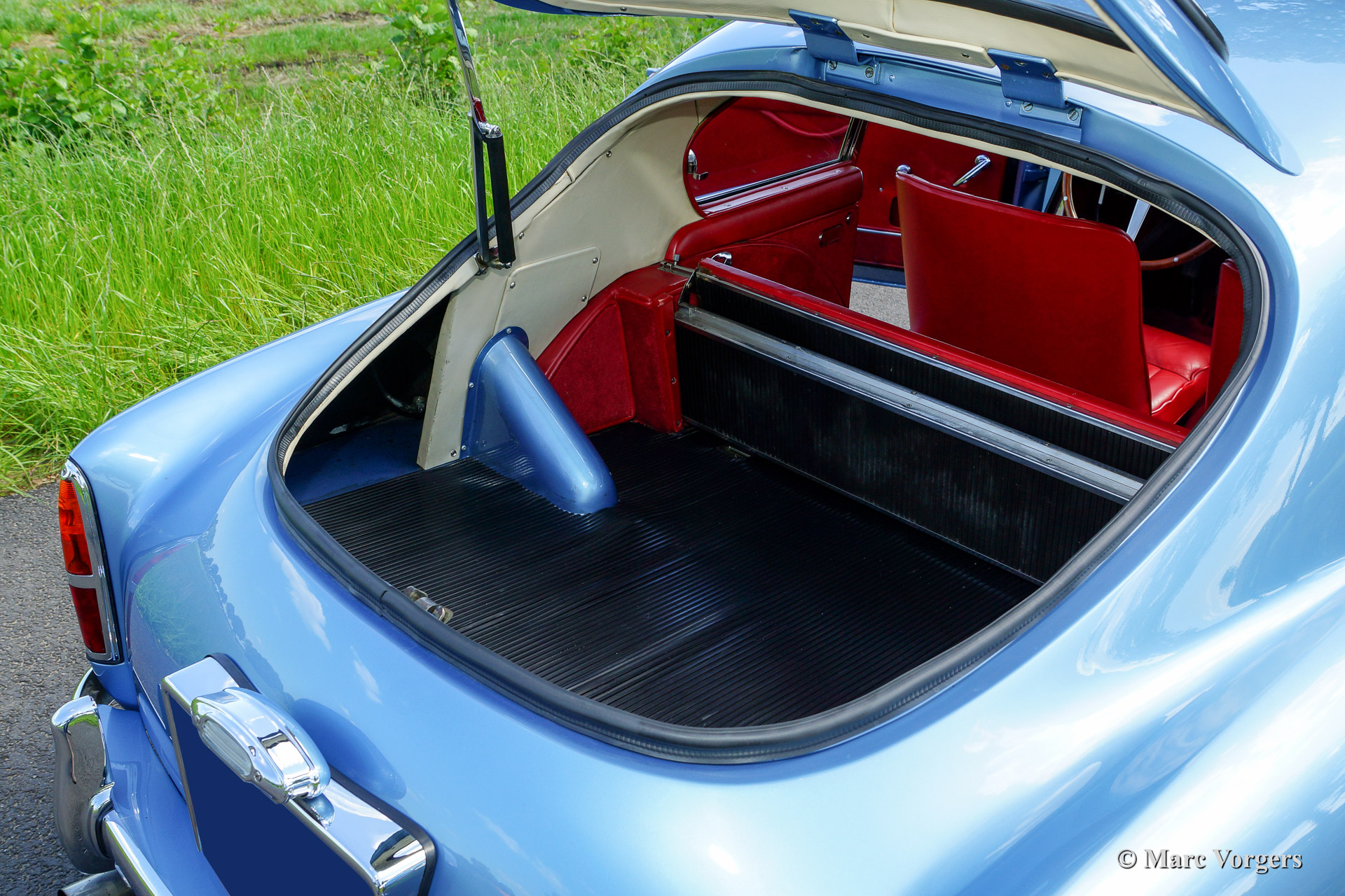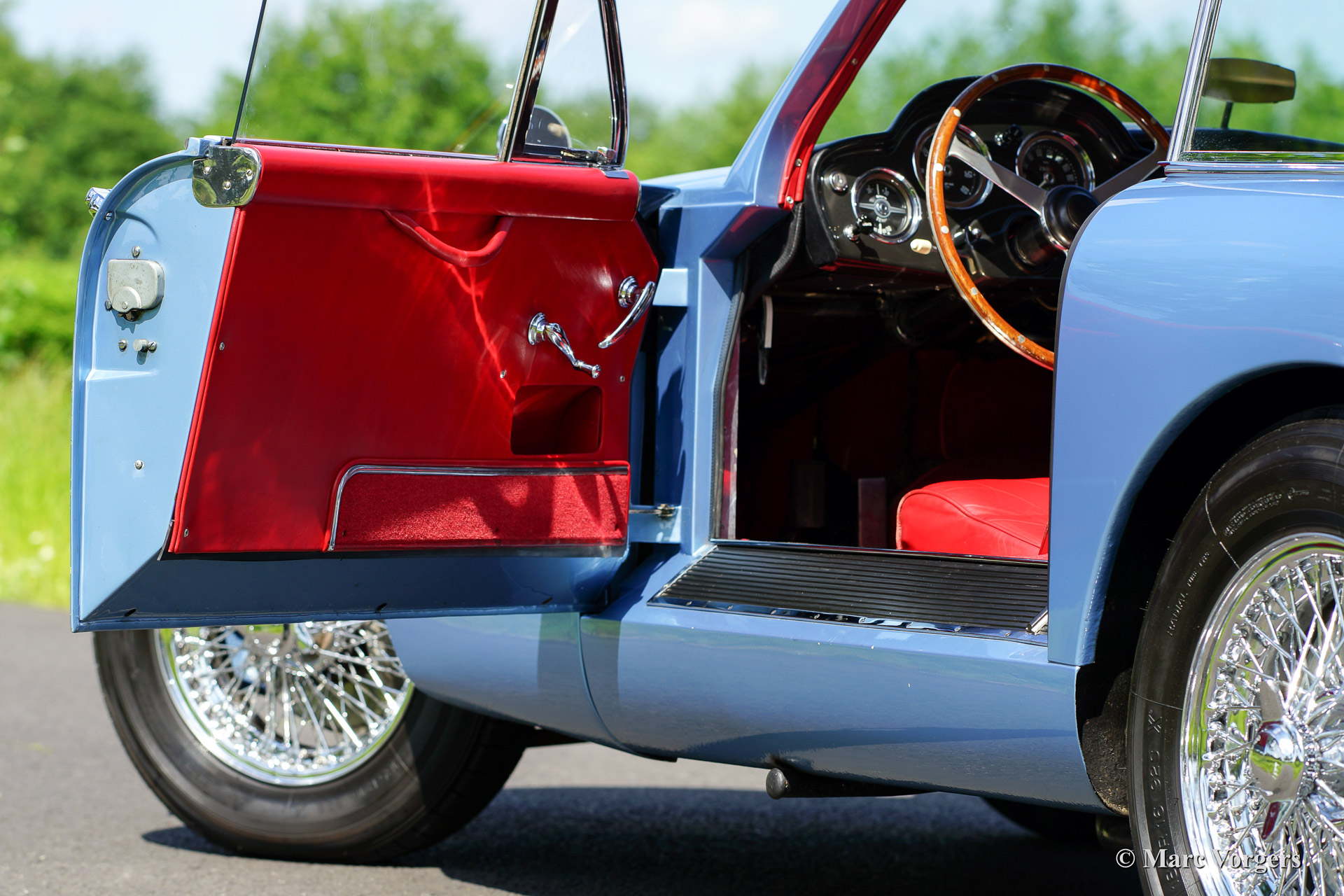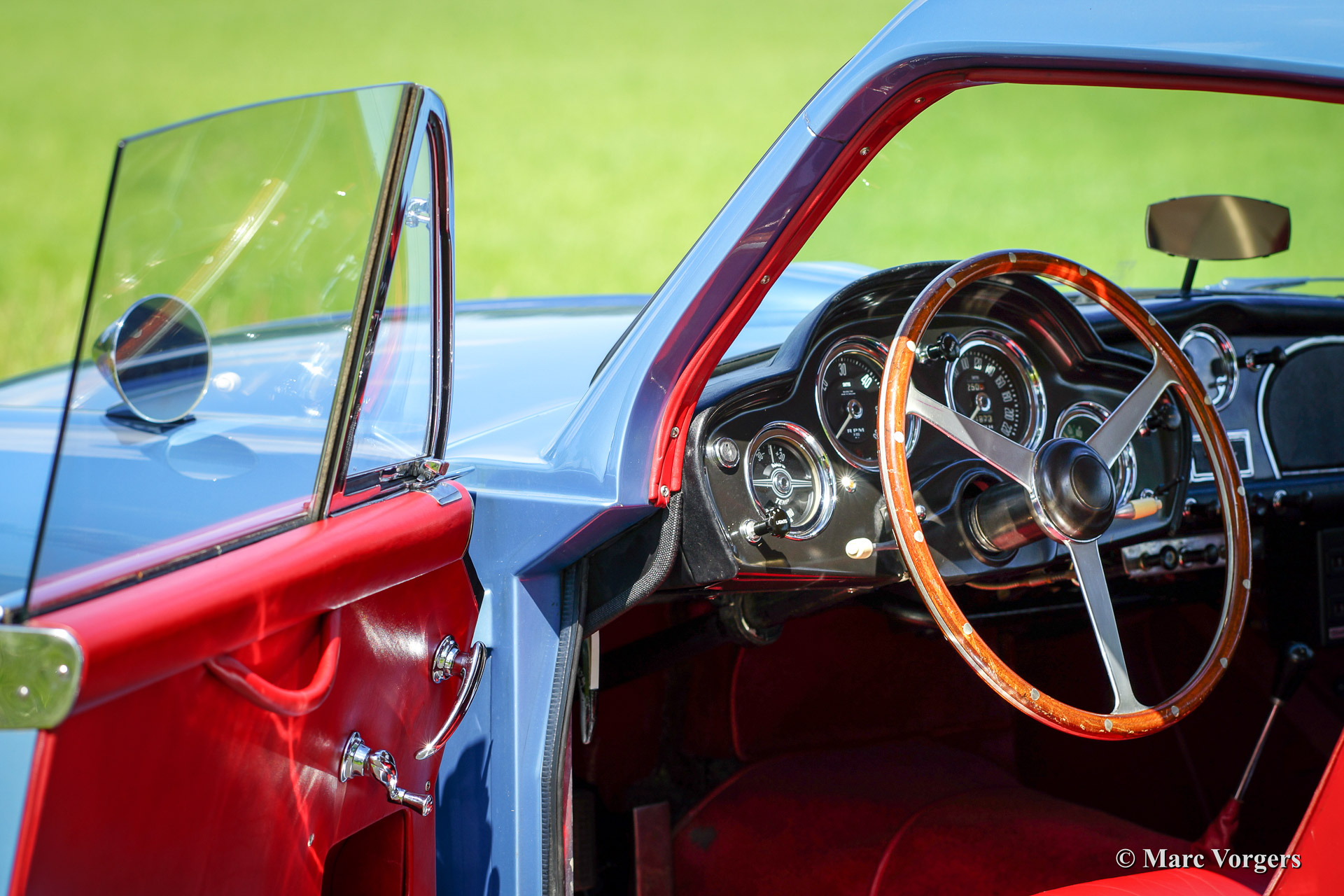 Aston Martin DB 2/4 Mk III, bouwjaar 1959. Kleur lichtblauw metallic met een rood lederen interieur. Een PLAATJE!