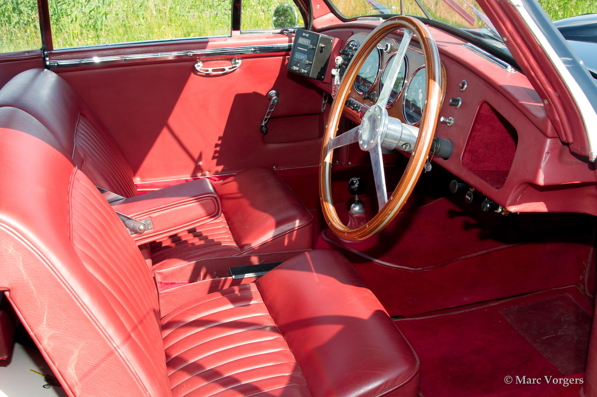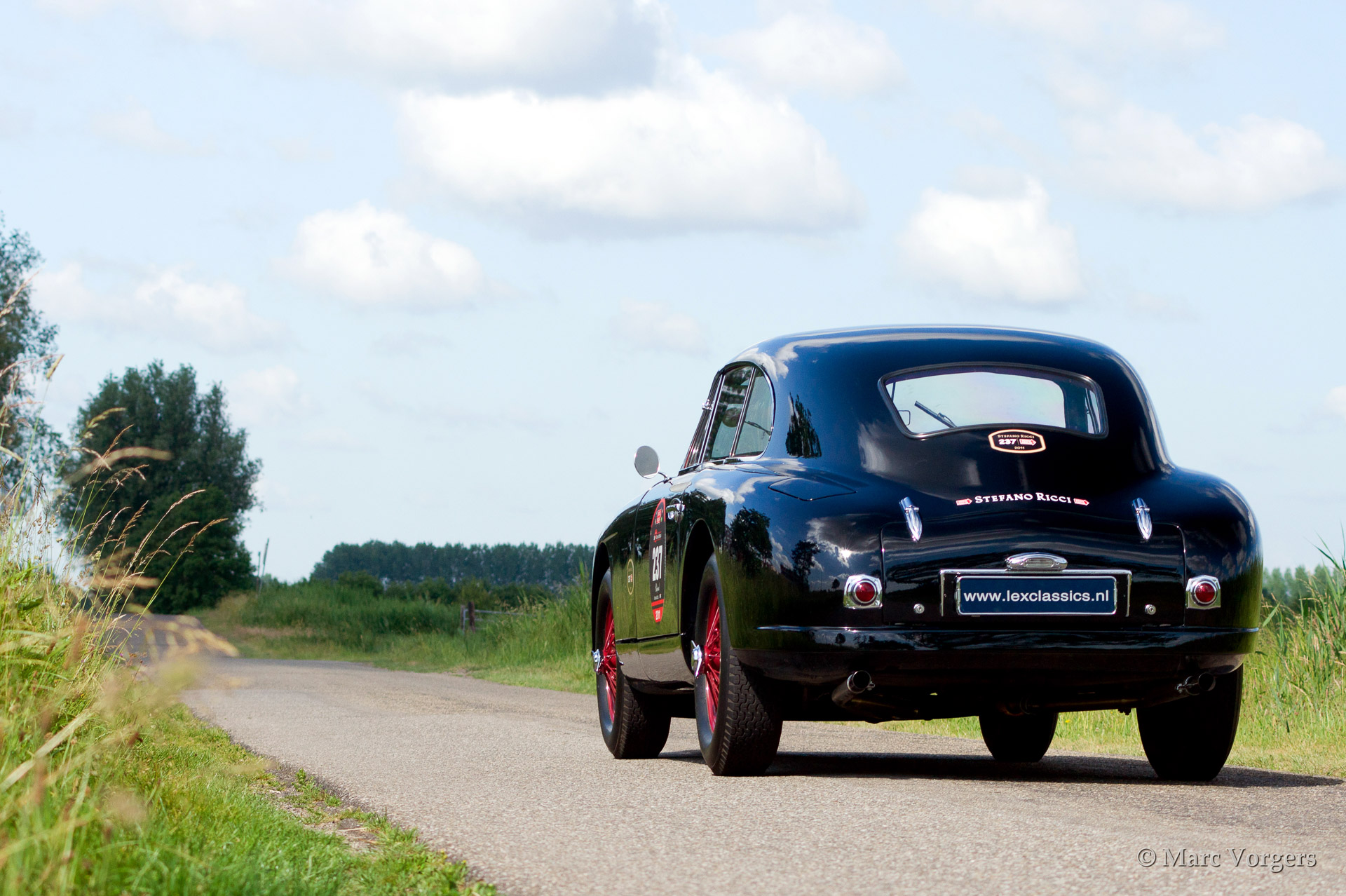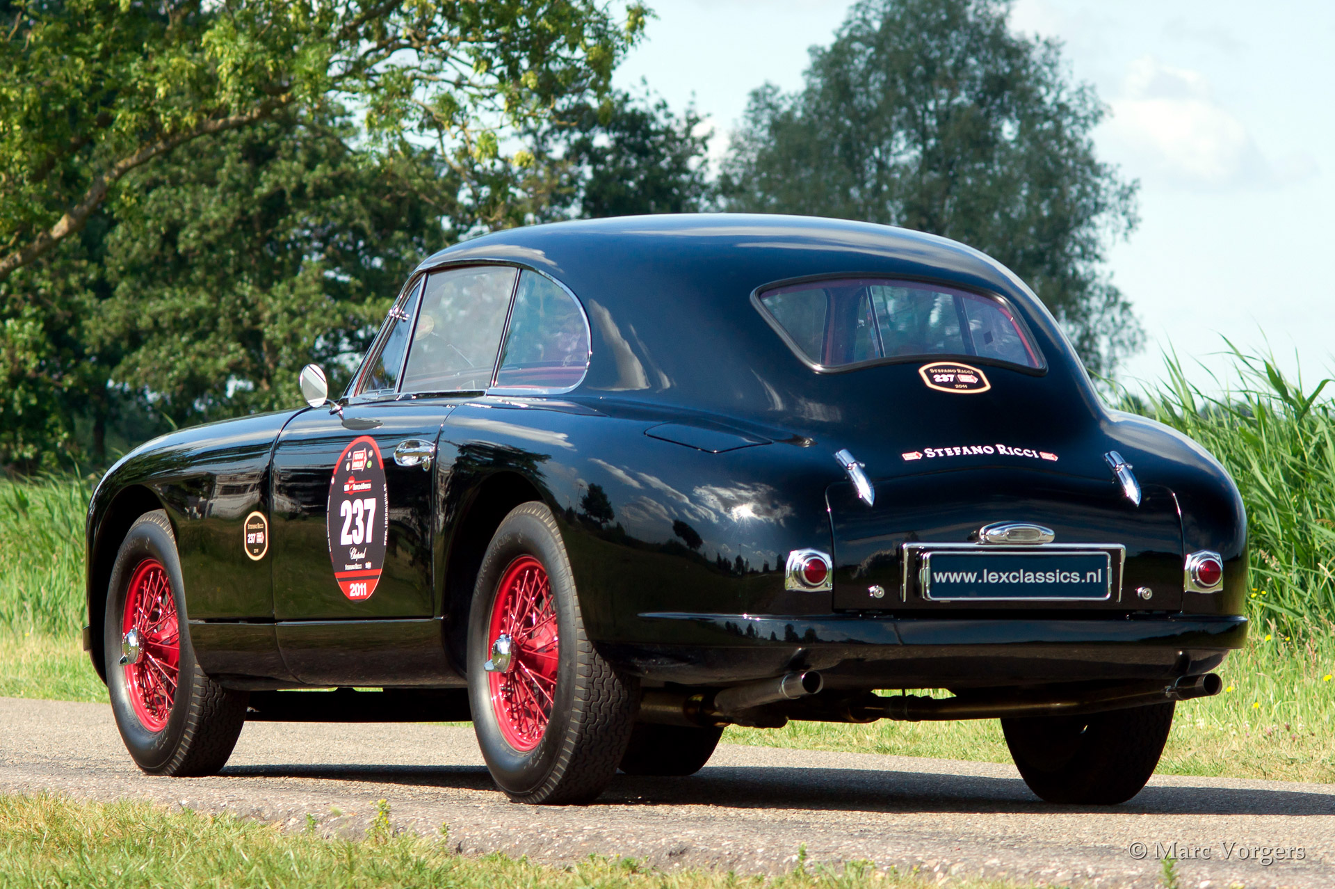 Aston Martin DB2 Vantage, bouwjaar 1952. Kleur zwart met donkerrood gelakte spaakwielen en een donkerrood lederen interieur. Deze zeldzame en bijzonder fraaie DB2 Vantage werd uitvoerig gerestaureerd. Deze Aston Martin werd nieuw afgeleverd door H.W. Motors (HWM) op 1 januari 1953.