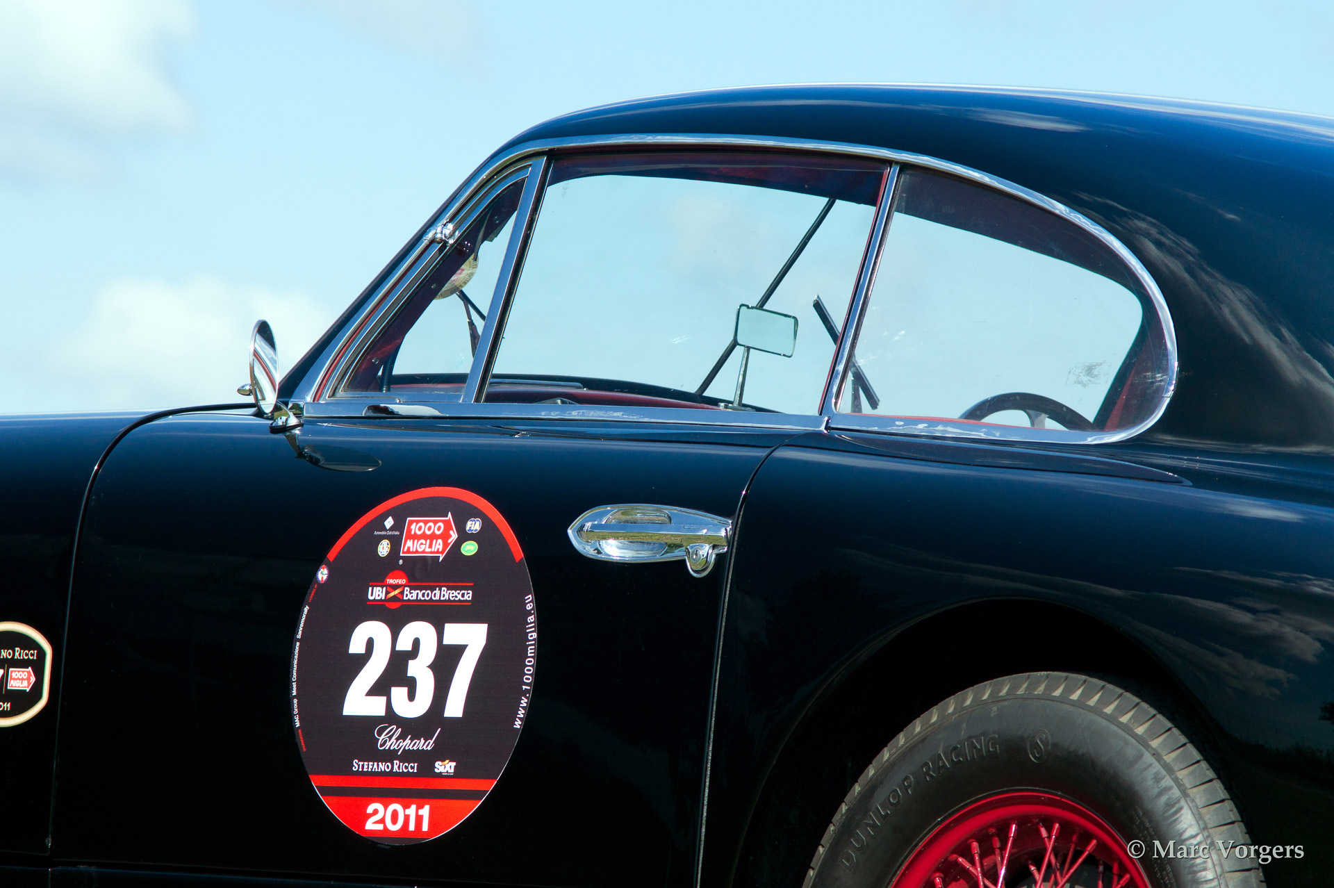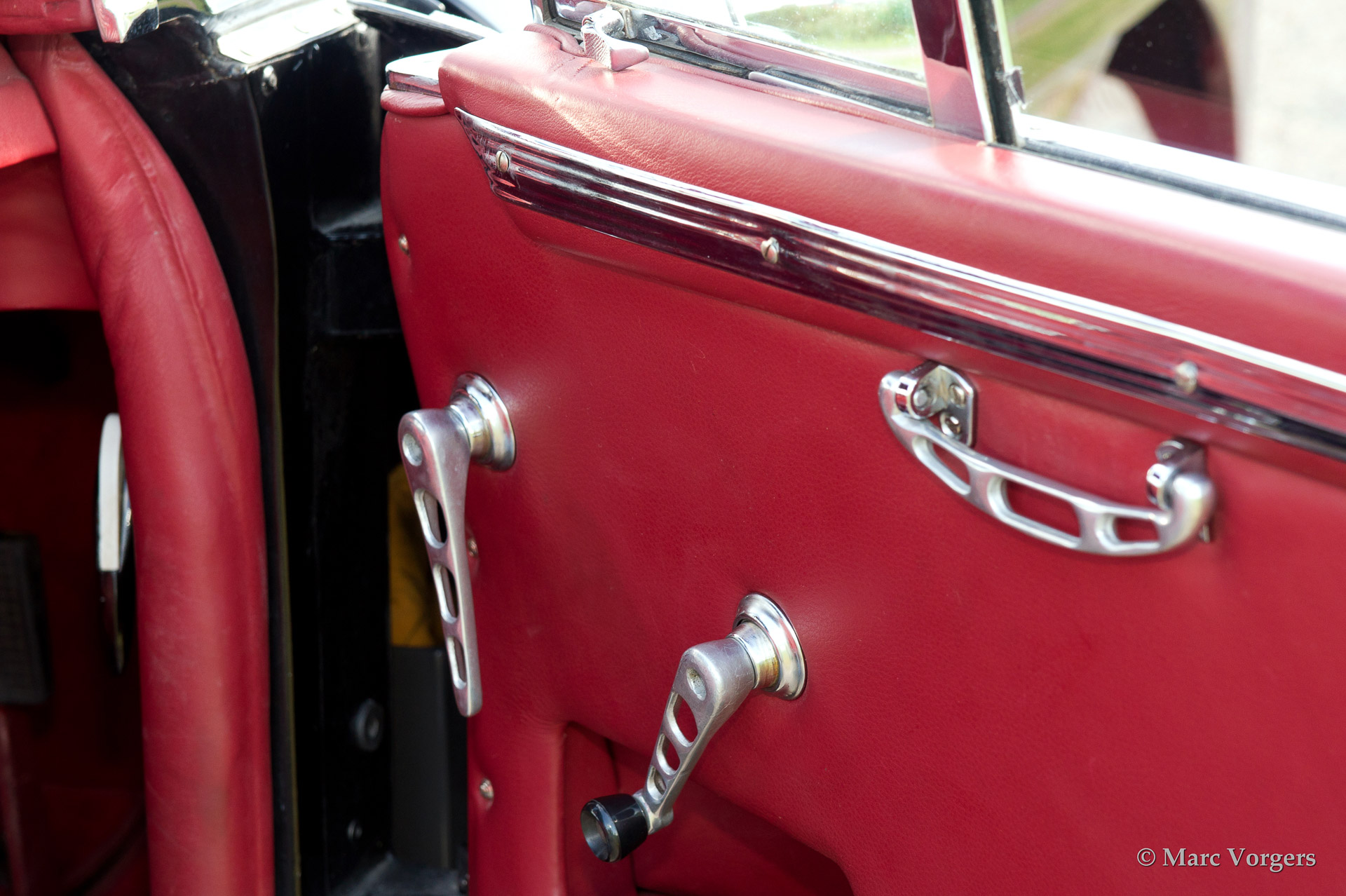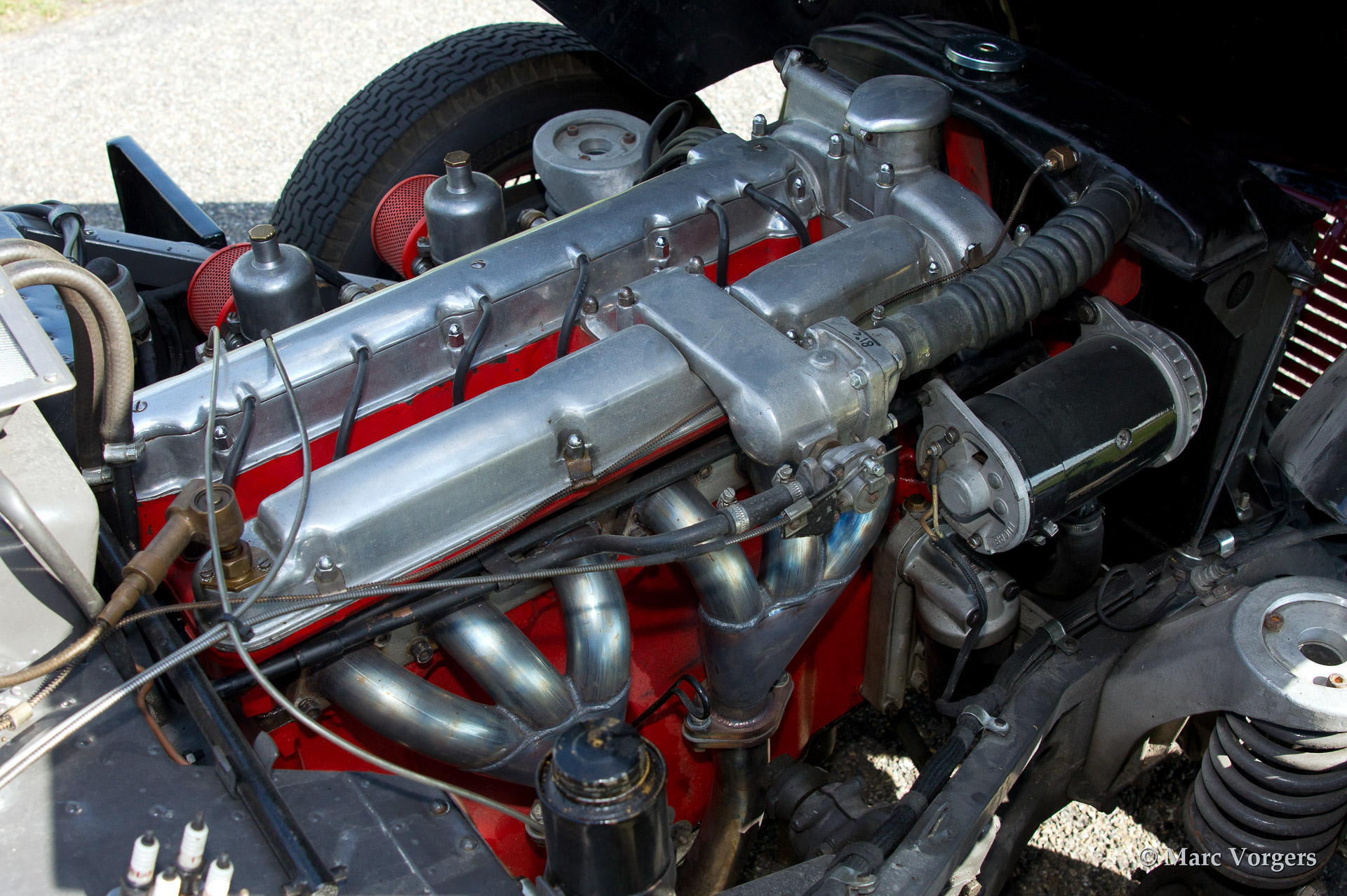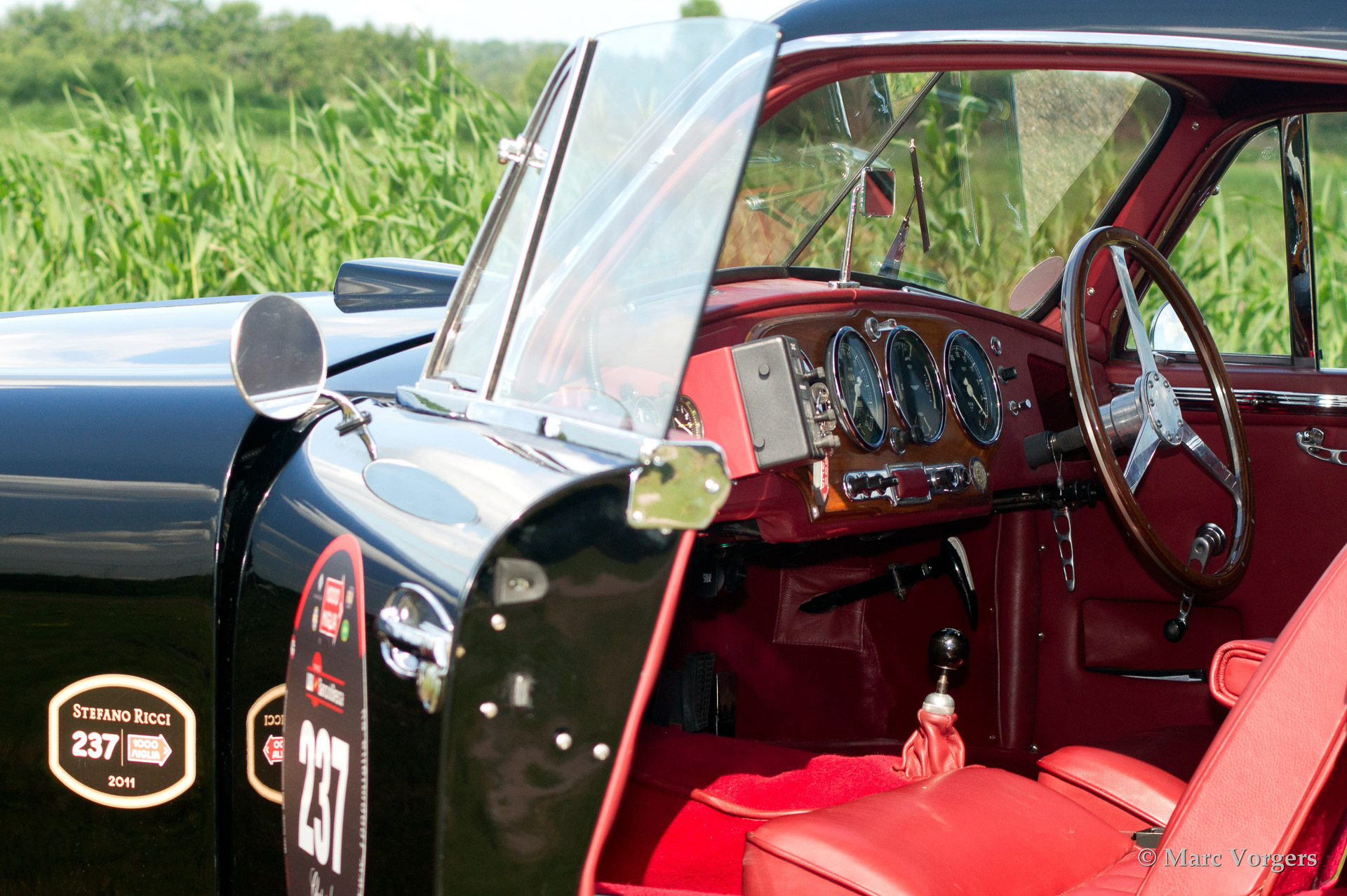 Aston Martin DB2 Vantage, bouwjaar 1952. Kleur zwart met donkerrood gelakte spaakwielen en een donkerrood lederen interieur. Deze zeldzame en bijzonder fraaie DB2 Vantage werd uitvoerig gerestaureerd. Deze Aston Martin werd nieuw afgeleverd door H.W. Motors (HWM) op 1 januari 1953.
