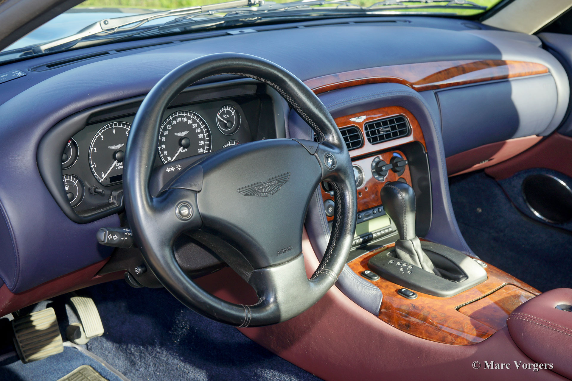 Aston Martin DB7 Vantage, jaar 2002. Chassisnummer SCFAB22302K302XXX, motornummer 029XX. Kleur donkerblauw metallic (Antrim Blue) met een ‘Pacific’ vol-lederen interieur (blauw/ bordeaux). Deze indrukwekkende Aston Martin DB7 Vantage is voorzien van een geweldige V12 motor en een automatische versnellingsbak. Het betreft een Nederlands exemplaar, geleverd door Cito Motors in Eindhoven. De auto is afkomstig van de tweede eigenaar en de auto werd vanaf nieuw onderhouden door Cito Motors. Deze Aston verkeert in excellente origineel staat en de auto heeft vanaf nieuw 89.814 kilometer gereden. De originele boekjes zijn aanwezig en de historie is volledig bekend. De auto is voorzien van vele begeerlijke opties en er is een fraaie Aston Martin autohoes aanwezig.