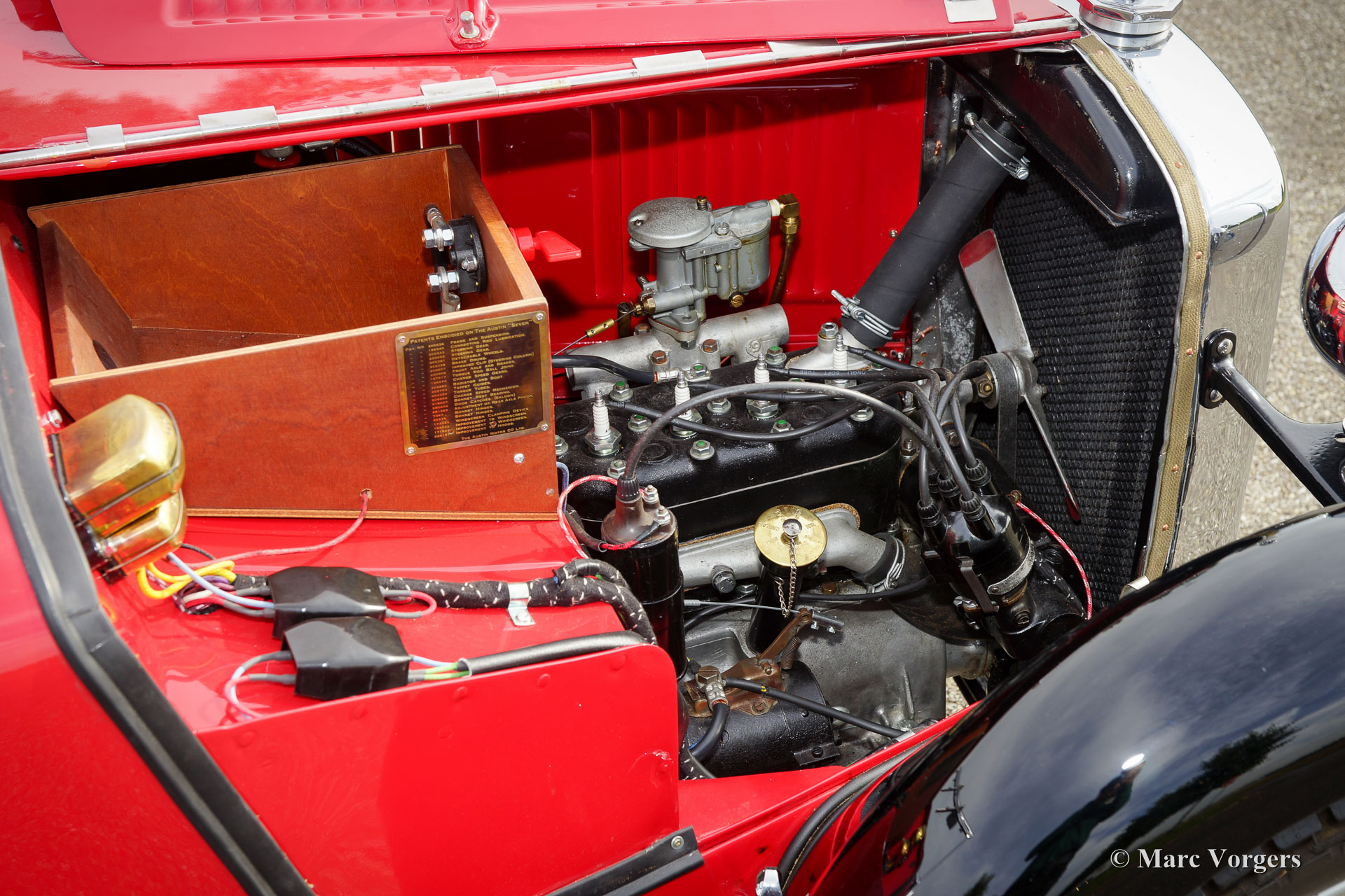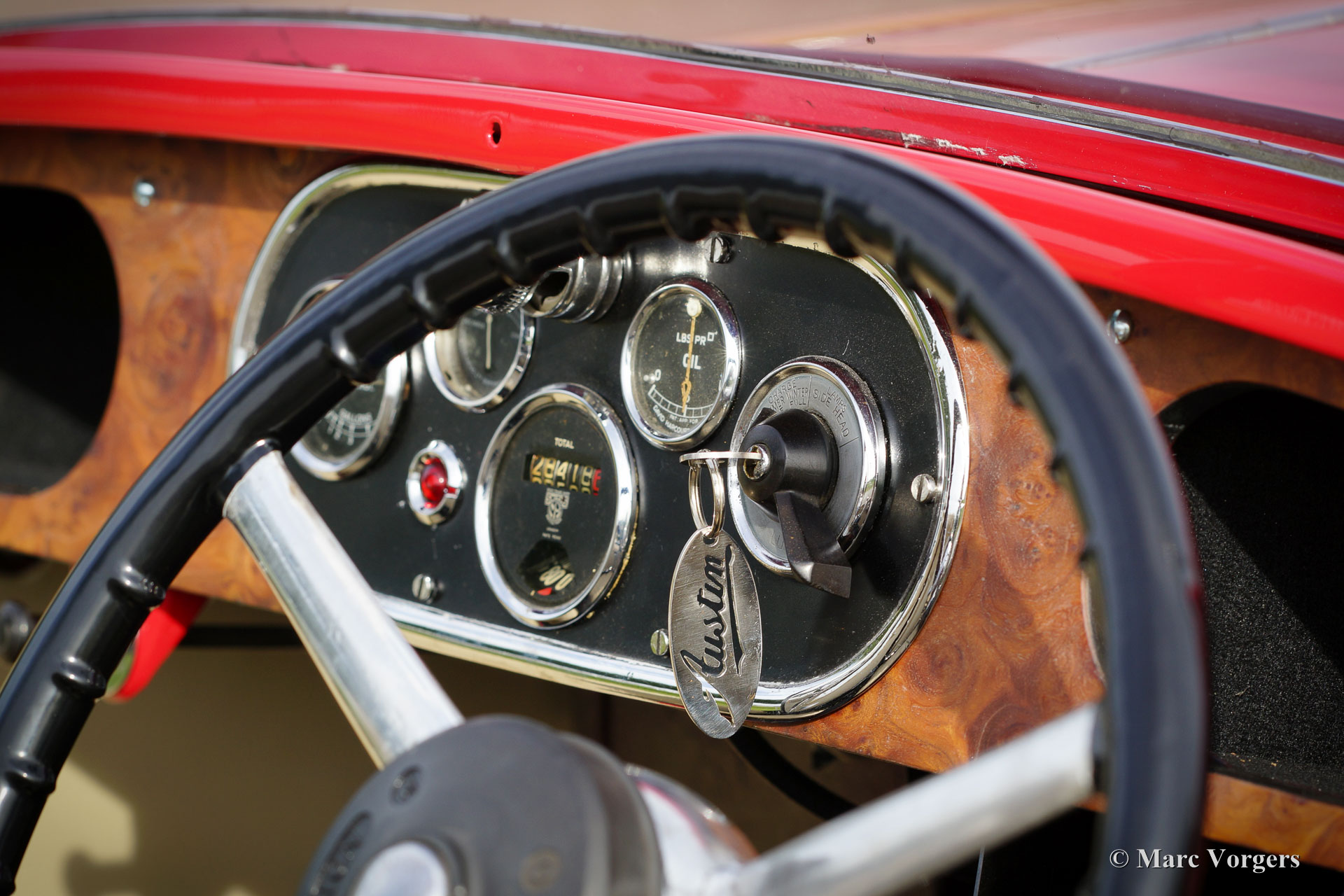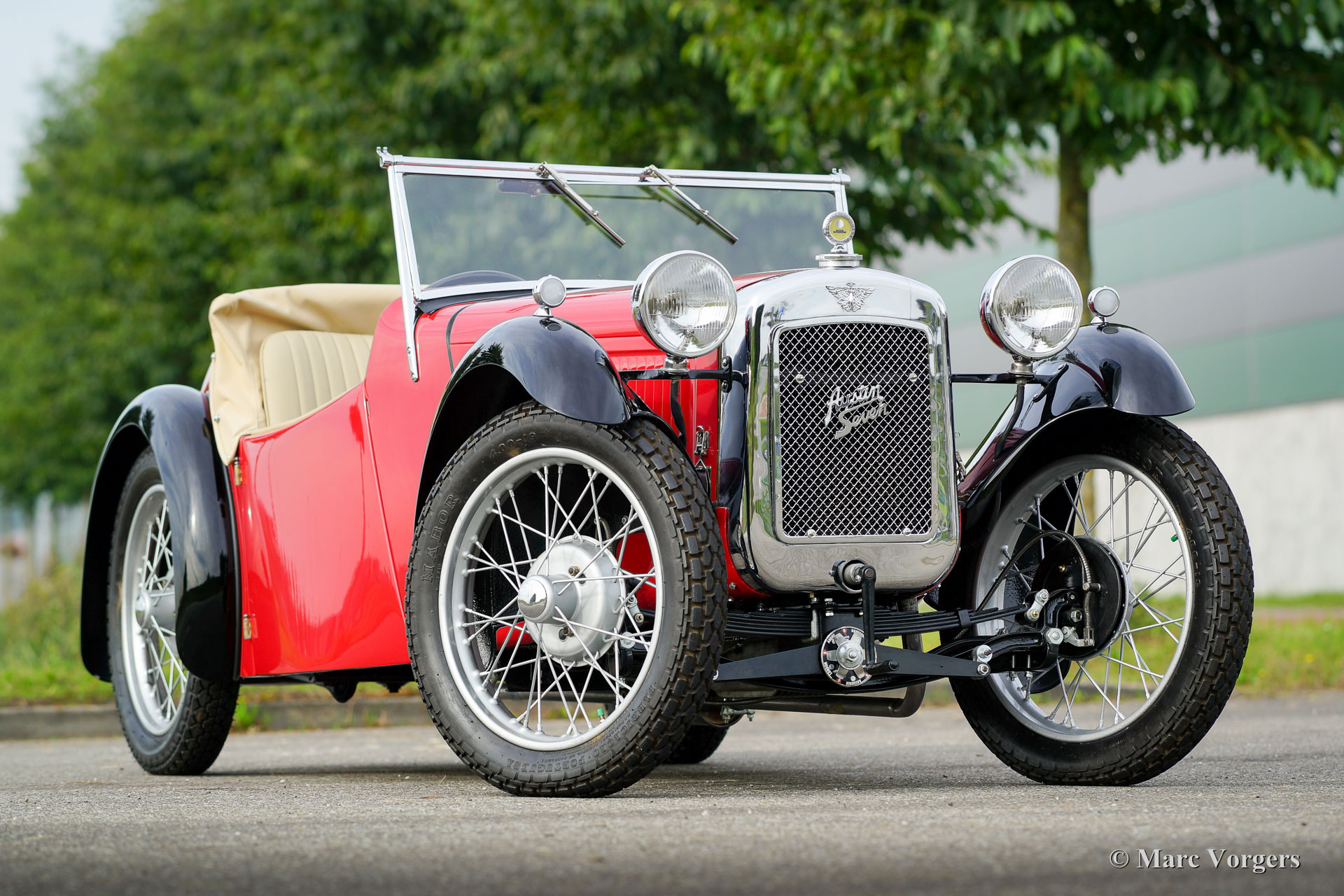Austin 7 Nippy, 1935. Chassisnummer 205049. Engels kenteken FV 5485 van november 1935. Kleur ‘two-tone’ rood / zwart met zilver gelakte spaakwielen. Beige lederen interieur met zwart tapijt. Beige soft top en zijramen. Deze Austin 7 Nippy is een uniek en origineel Austin 7 model uit de jaren 1930. De auto werd uitvoerig en zeer fraai gerestaureerd tot in het kleinste detail. De auto verkeert in sublieme topstaat, concours. De rijbeleving is geweldig! De Austin 7 is voorzien van de 747 cc. Viercilindermotor met zijkleppen, een vier-versnellingsbak en kabelbediende trommelremmen rondom. De auto staat op Engels kenteken. Een zeer bijzondere auto!