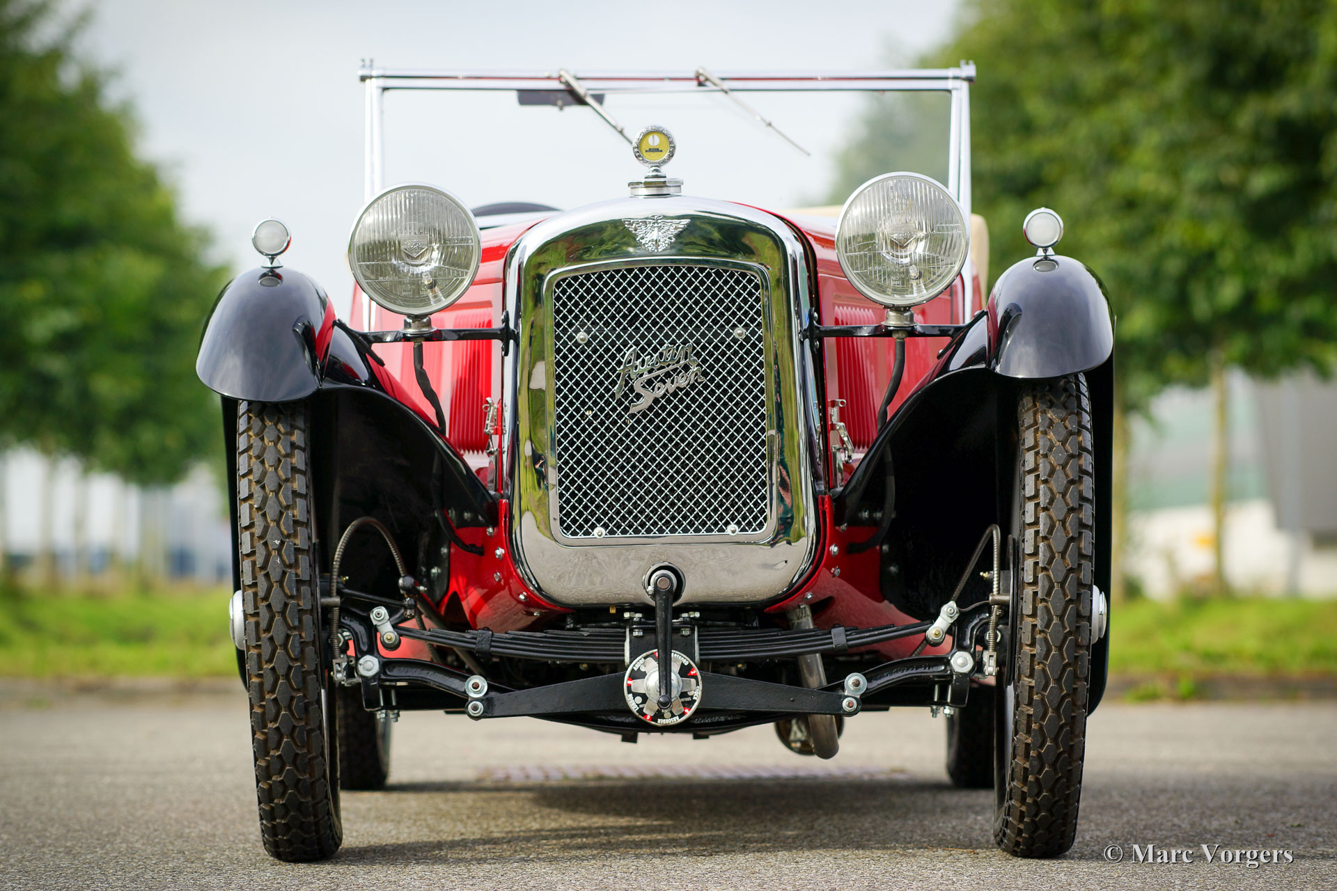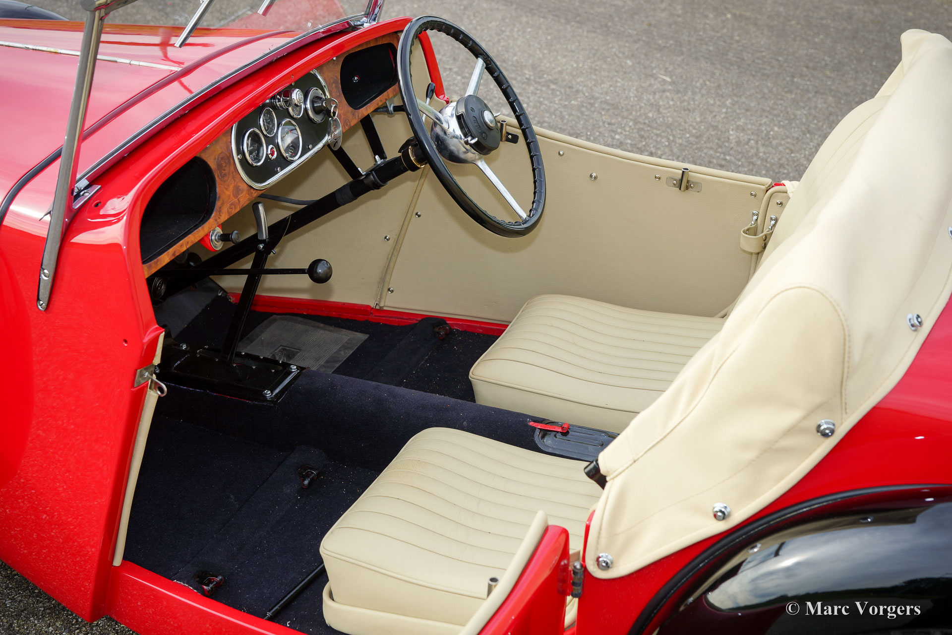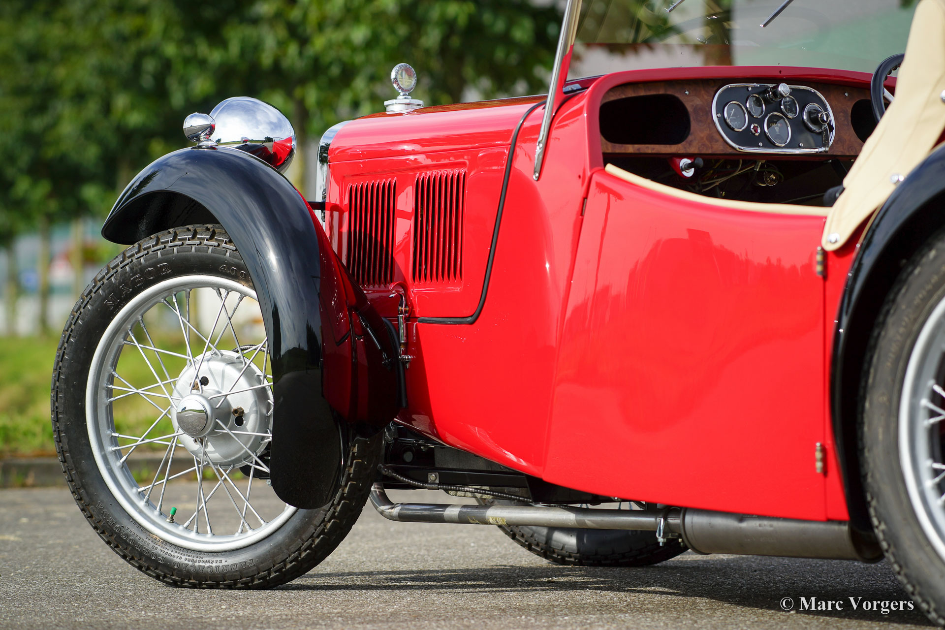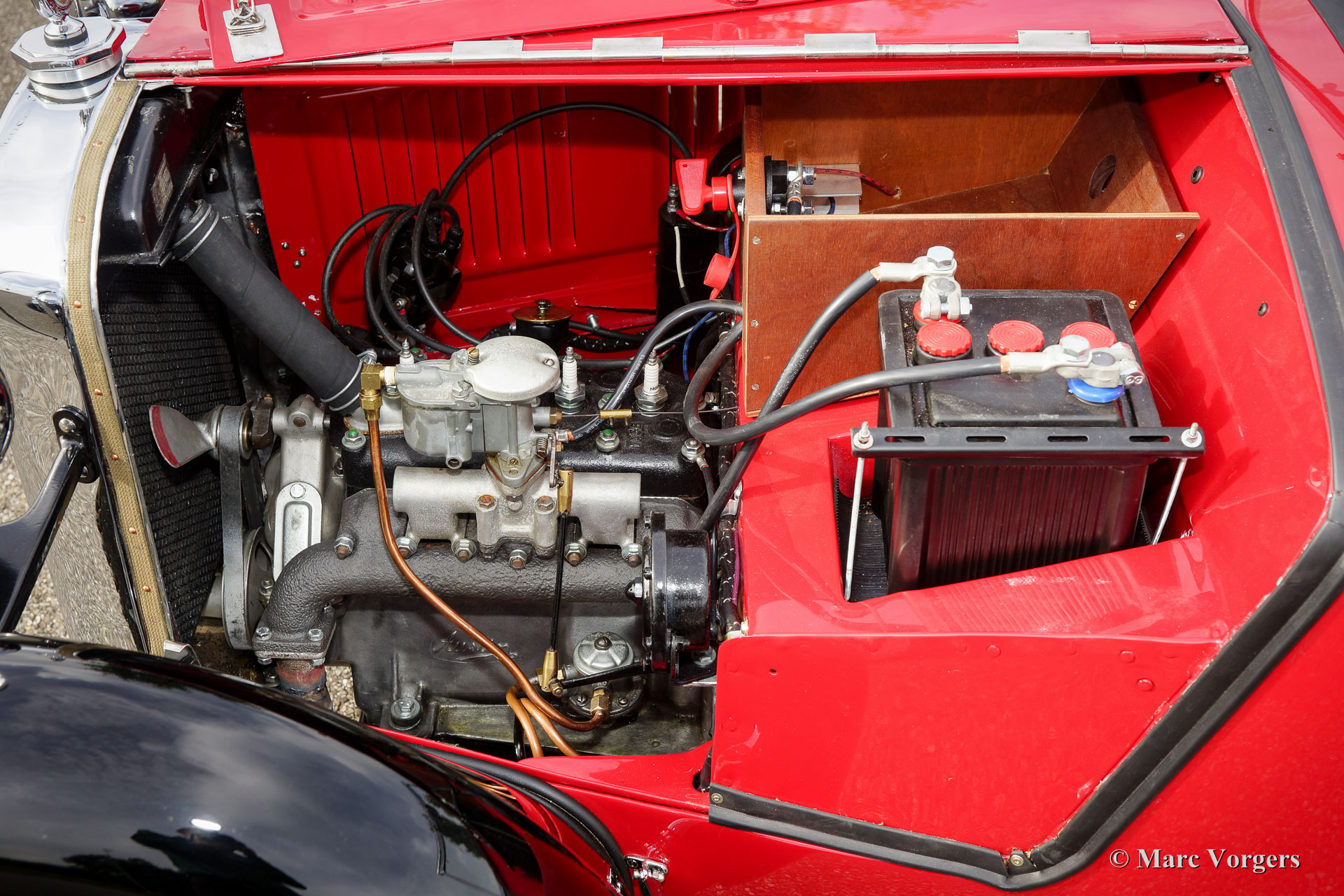 Austin 7 Nippy, 1935. Chassisnummer 205049. Engels kenteken FV 5485 van november 1935. Kleur ‘two-tone’ rood / zwart met zilver gelakte spaakwielen. Beige lederen interieur met zwart tapijt. Beige soft top en zijramen. Deze Austin 7 Nippy is een uniek en origineel Austin 7 model uit de jaren 1930. De auto werd uitvoerig en zeer fraai gerestaureerd tot in het kleinste detail. De auto verkeert in sublieme topstaat, concours. De rijbeleving is geweldig! De Austin 7 is voorzien van de 747 cc. Viercilindermotor met zijkleppen, een vier-versnellingsbak en kabelbediende trommelremmen rondom. De auto staat op Engels kenteken. Een zeer bijzondere auto!