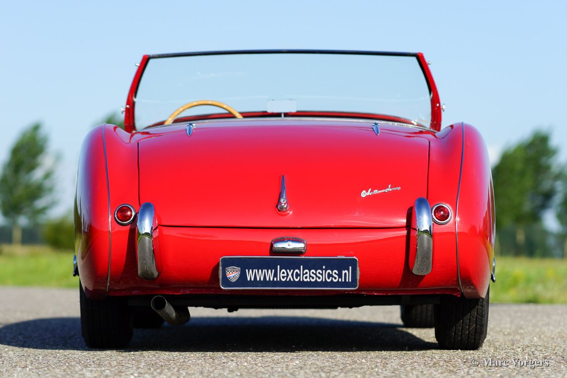 Austin Healey 100/4 BN-1, bouwjaar 1955. Chassis nummer BN1L225XXX, motornummer 1B2256XXX. Kleur rood met met een zwart interieur afgebiest met rode 'piping'. Deze prachtige Austin Healey 100/4 BN-1 werd in de jaren negentig uit Amerika geïmporteerd. In 2008 werd de auto voor het eerst geregistreerd voor gebruik op de openbare weg. De auto kende slechts een Nederlandse eigenaar totdat wij de auto aan onze collectie toevoegden. Van eind 2013 tot 2014 werd de Healey gedeeltelijk gerestaureerd, de keiharde carrosserie werd onderhanden genomen en professioneel nieuw gespoten. Tevens werd het een deel van de chroom delen opnieuw verchroomd. De mechaniek en de elektrische delen werden geheel nagezien en onderhouden. Deze prachtige en stoere Healey 100/4 verkeert in zeer goede tot excellente staat.