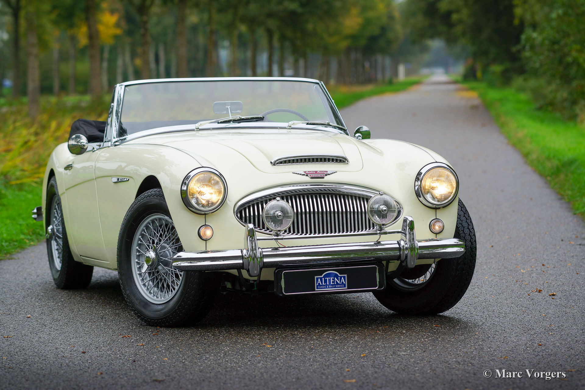 Austin Healey 3000 Mk III, jaar 1964. ‘Matching numbers’, een Heritage certificaat om dit te bevestigen is aanwezig. Kleur Old English White gecombineerd met een zwart interieur en zwart tapijt. Zwarte soft-top en een zwarte mohair kapafdekking. Deze prachtige ‘Big Healey’ werd nieuw verkocht in de USA, in 2014 werd de auto in Nederland geïmporteerd. Na aankomst in Nederland werd de auto gerestaureerd. Restauratiefacturen zijn aanwezig. Deze Austin Healey verkeert in een zeer goede staat en de auto rijdt perfect! De motorruimte is prachtig gedetailleerd. De auto is voorzien van overdrive, zilvergelakte spaakwielen met Vredestein Classic banden, Lucas SFT576 mistlampen aan de voorkant, een roestvrijstalen uitlaat en het originele stuurwiel. Deze prachtige ‘Big Healey’ staat klaar om ten volle van te genieten!