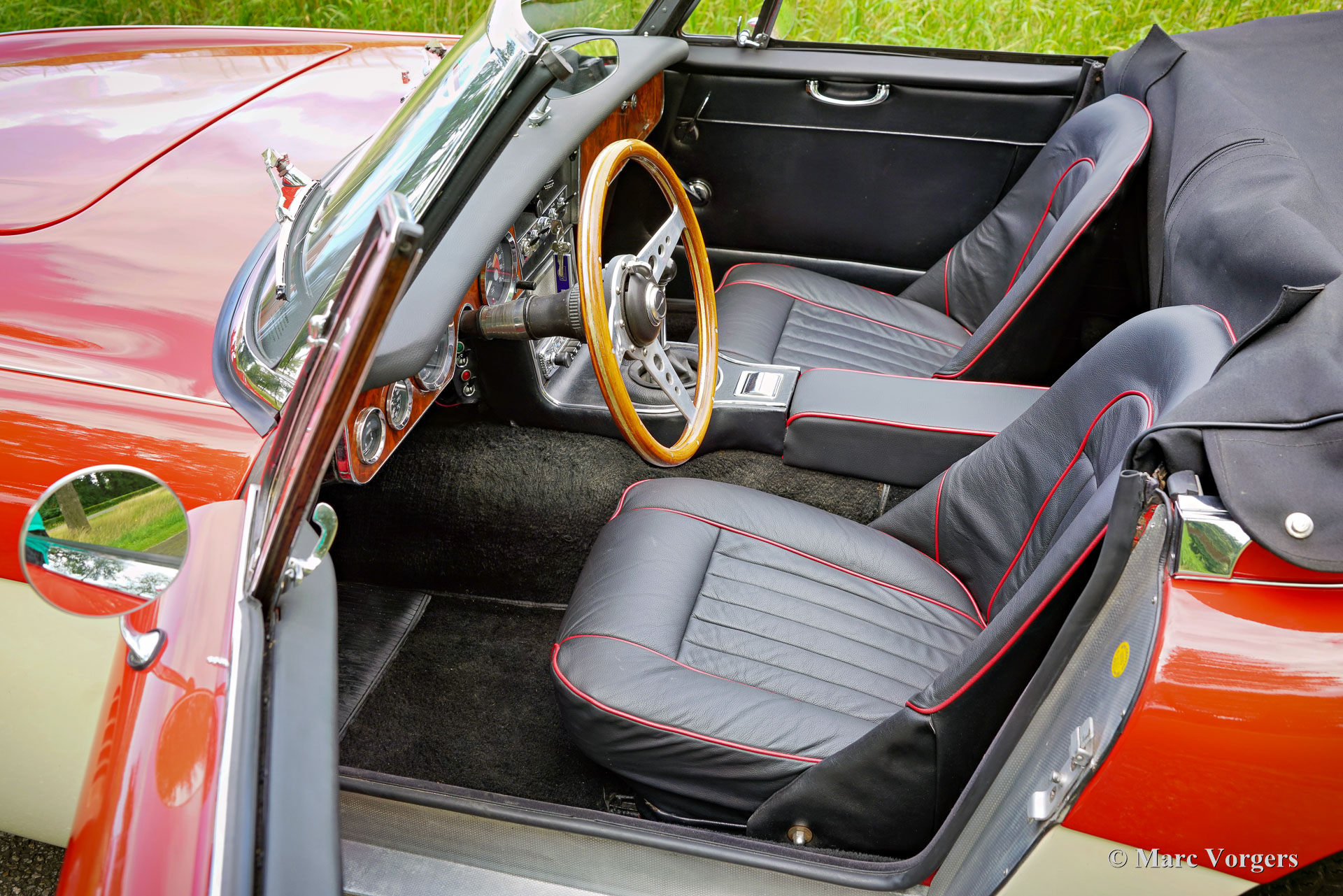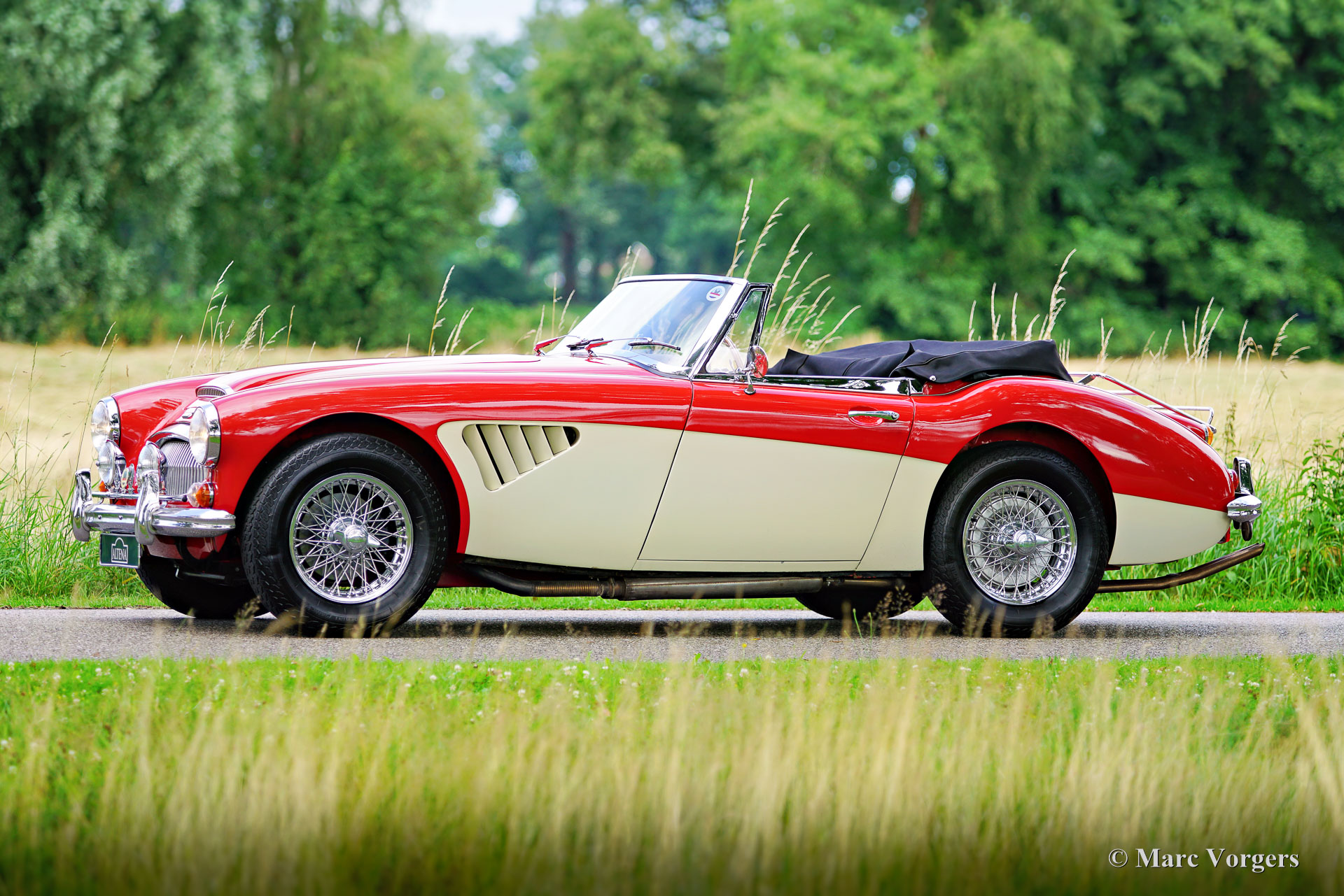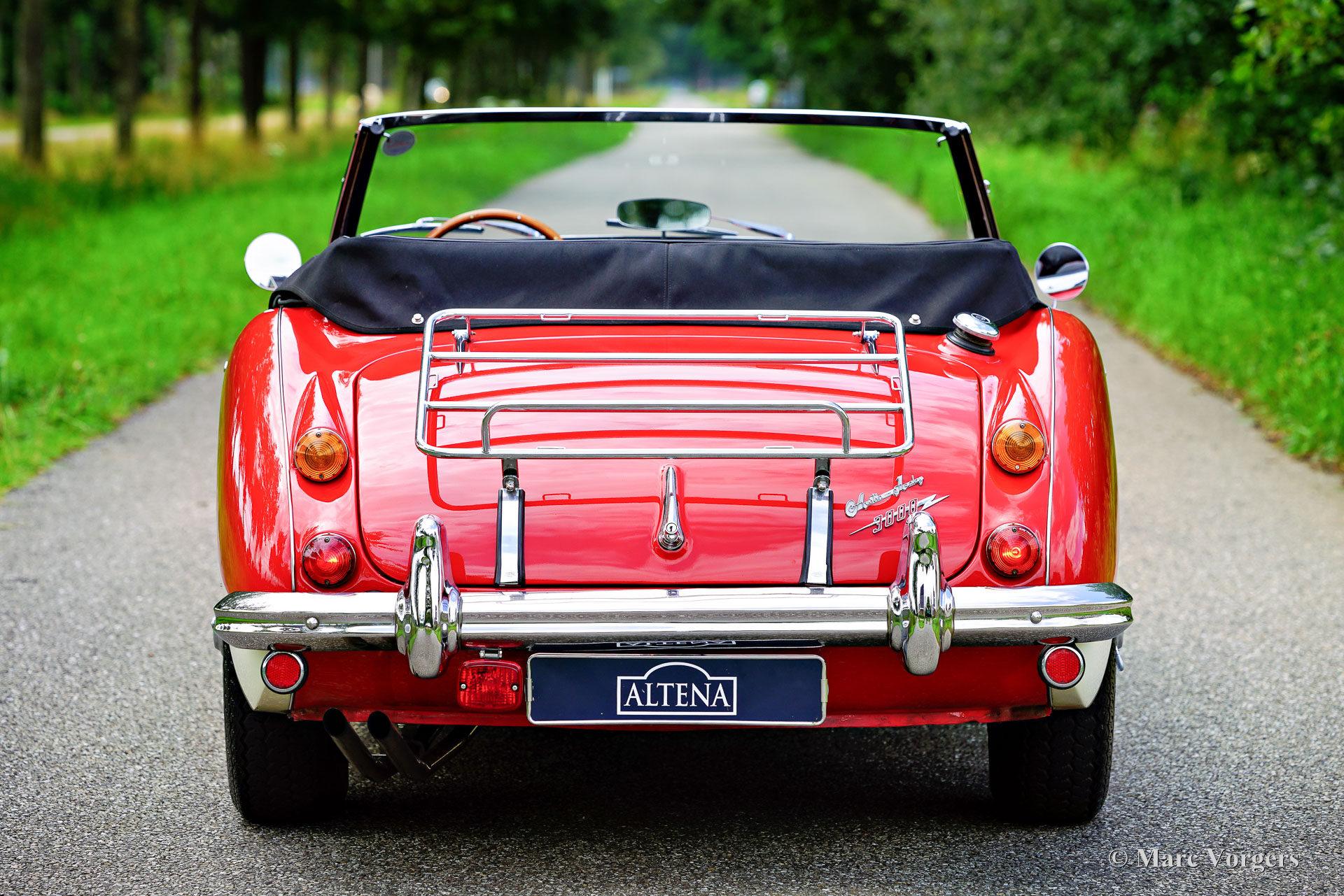 Austin Healey 3000 MK III, jaar 1966. Kleur rood boven Old English White gecombineerd met een zwartlederen interieur afgewerkt met rode biezen en zwart tapijt. Zwarte vinyl soft-top en een zwarte mohair tonneau cover. Deze prachtige Austin Healey 3000 werd nieuw verkocht in de Verenigde Staten van Amerika. Na import naar Nederland werd de Healey uitgebreid gerestaureerd naar topconditie door een specialistisch bedrijf. Deze fantastische “Big Healey” werd gekoesterd door een Austin Healey clublid en de auto is onderhouden door Altena Classic Service. Deze prachtige Austin Healey verkeert in een uitstekende staat en de auto rijdt perfect! De Austin Healey is voorzien van de volgende opties: chromen spaakwielen met Vredestein Sprint Classic banden, een Lecarra sportstuur met een houten rand, een klassieke Blaupunkt Frankfurt radio, een chromen badge bar, Lucas SFT576 mist-/bochtverlichting aan de voorzijde, koelroosters in de voorste spatborden en een chromen bagagerek. Het elektrische systeem is omgebouwd van positieve naar negatieve aarde inclusief de montage van een wisselstroomdynamo. De Austin Healey is een van de mooiste Britse sportwagens ooit gebouwd. De klassieke rijervaring is opwindend en het is een waar genot om de kronkelige landschapswegen door heel Europa en Groot-Brittannië te ontdekken met deze “Big Healey”. Deze Austin Healey is een geweldig exemplaar voor de echte liefhebber.