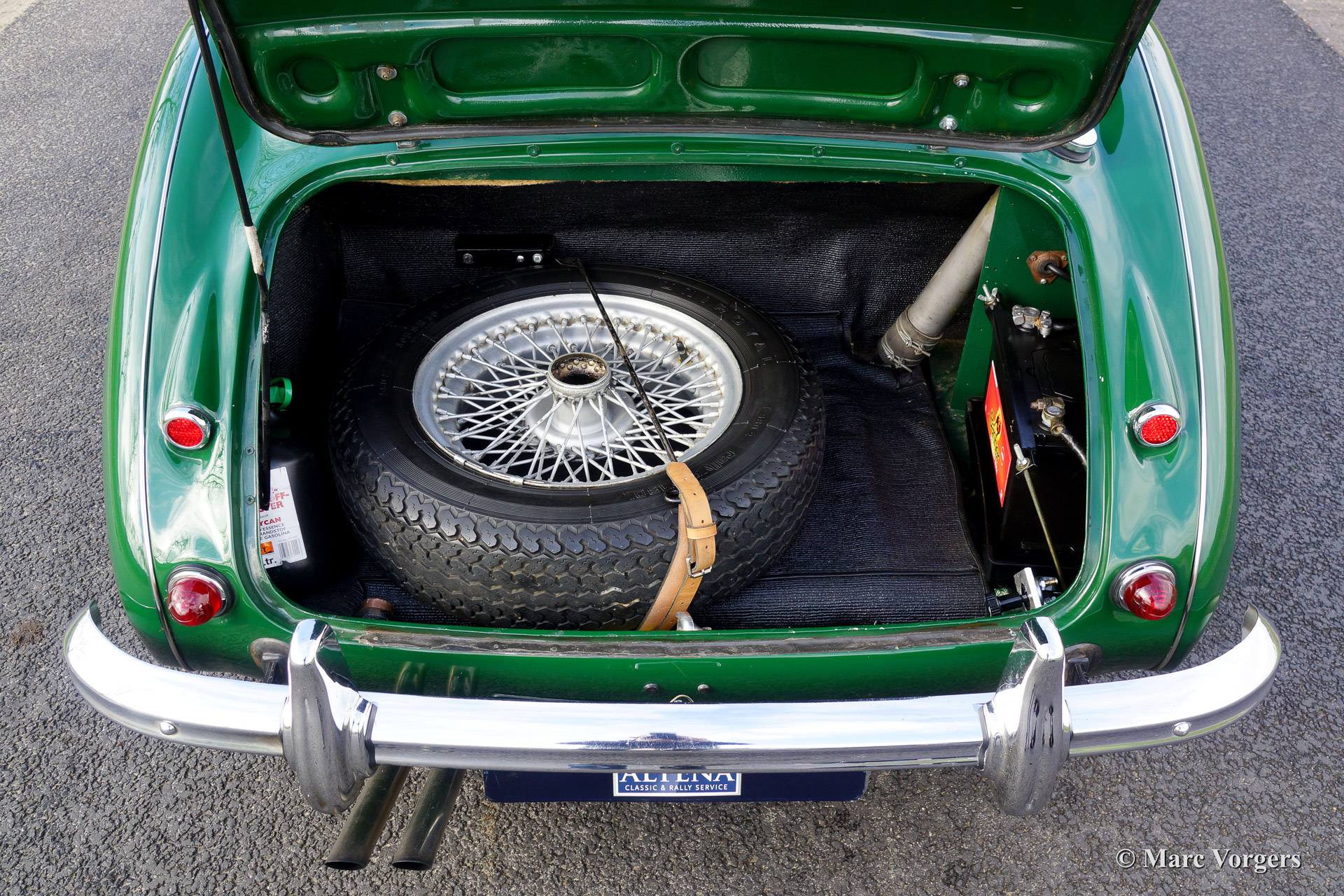 Austin Healey 3000 MK IIa, bouwjaar 1963. Kleur donkergroen met een zwart lederen interieur. Deze Austin Healey is in zeer goede tot excellente staat. De automobiel werd in het jaar 2000 geïmporteerd. De auto werd bij Altena classic Service onderhouden sinds het jaar 2005. Service historie is aanwezig vanaf het jaar 2000. Deze Healey rijdt geweldig en de auto is voorzien van chroom spaakwielen, een MotoLita stuurwiel met houten rand, een chroom 'badge bar' en extra verlichting aan de voorzijde. De Mk IIa is een zogenaamde 'convertible'. Deze is voorzien van een eenvoudig te openen en te sluiten cabriolet kap en neerdraaibare zijramen.