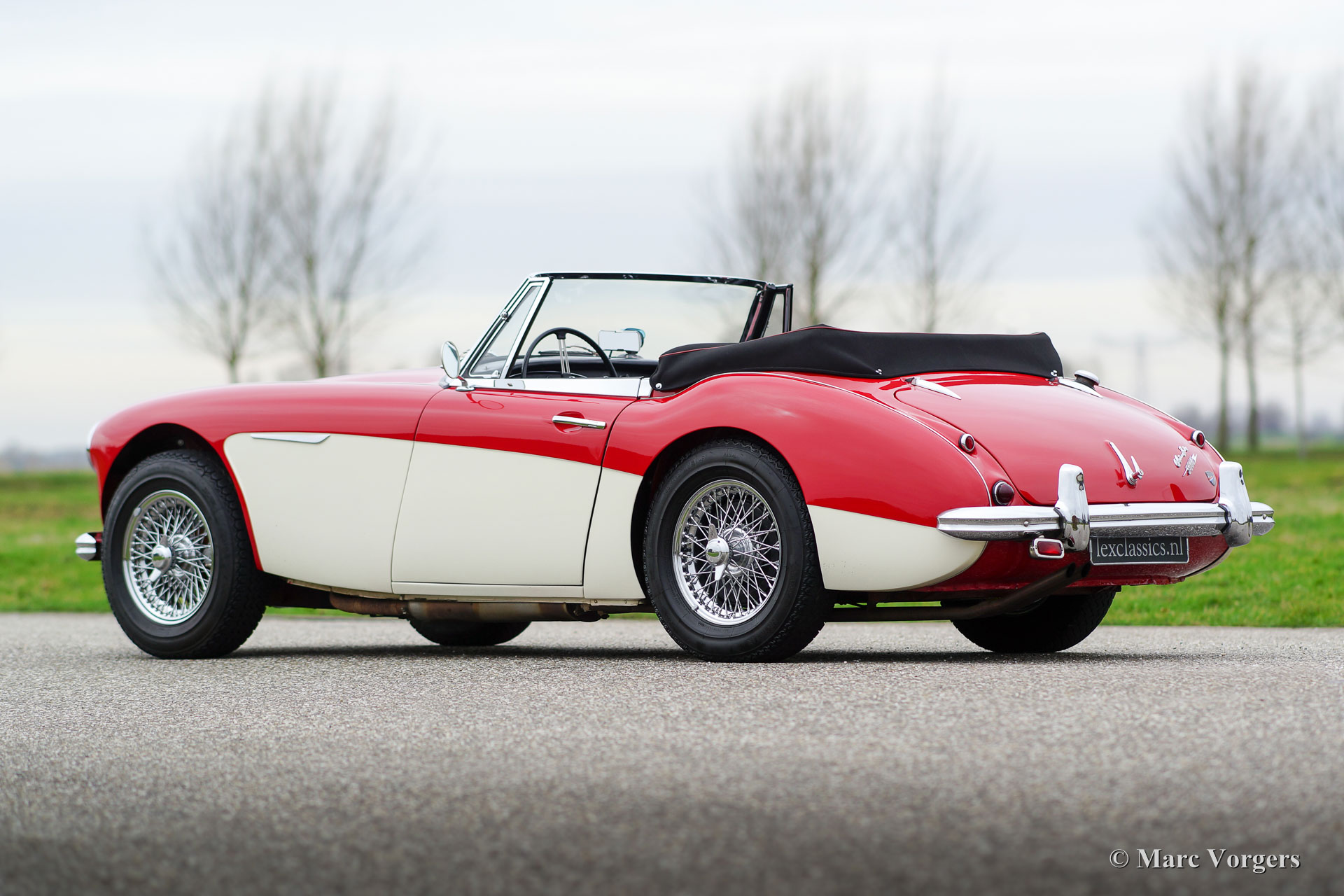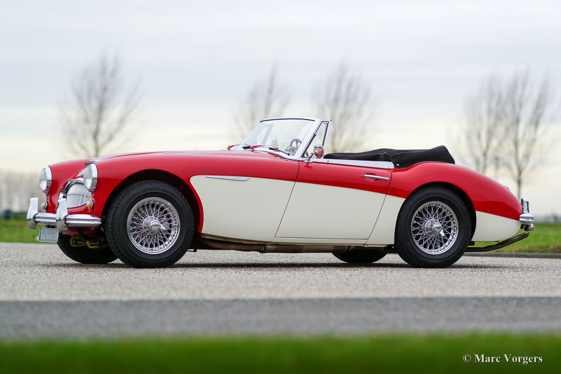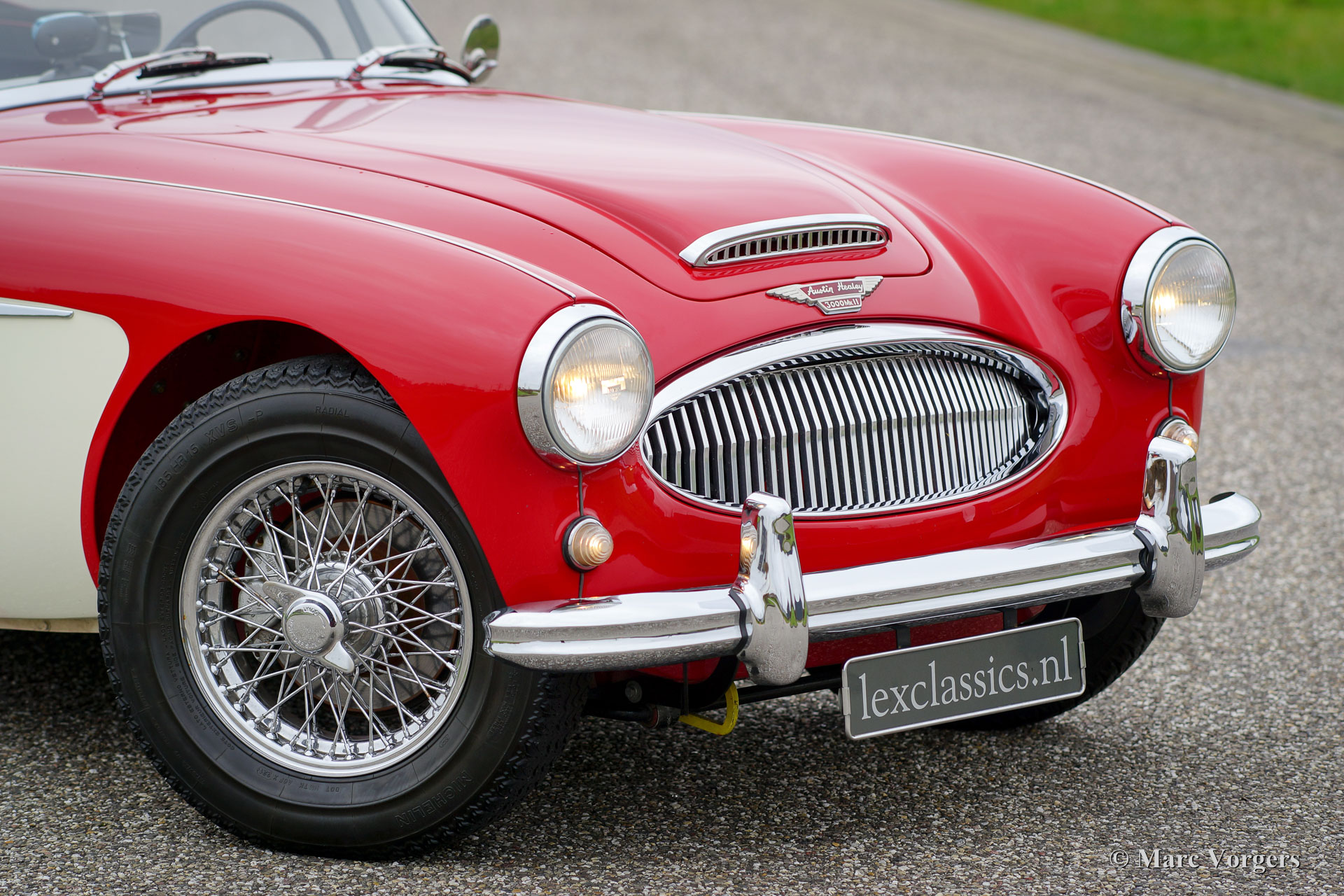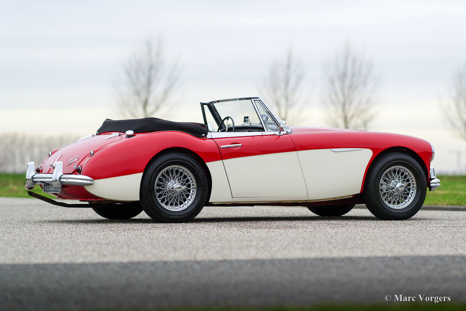 Austin Healey 3000 Mk IIa (convertible), jaar 1963. Chassisnummer HBJ7L207XX. Kleur rood boven crème wit met een zwartlederen interieur afgewerkt met rode biezen. Zwarte ‘soft-top’ en ‘hood-cover’. Deze zeer fraaie Austin Healey verkeert in excellente staat en de auto rijdt perfect! De auto is de afgelopen jaren onderhouden door Lex Classics. De Healey Mk IIa ‘convertible’ is een zeer gezocht model dat is voorzien van de in de deuren neerdraaibare zijruiten en de eenvoudig te bedienen kap net als de latere Austin Healey 3000 Mk III. Deze prachtige Healey is voorzien van: Chroom spaakwielen, chroom ‘knock off’ vleugelmoeren, overdrive, Kenlow koelventilator, gescheiden remsysteem, 2 buitenspiegels, aluminium kleppendeksel en een tripmaster. Dit is een zeer fraaie en werkelijk perfect rijdende ‘Big Healey’!