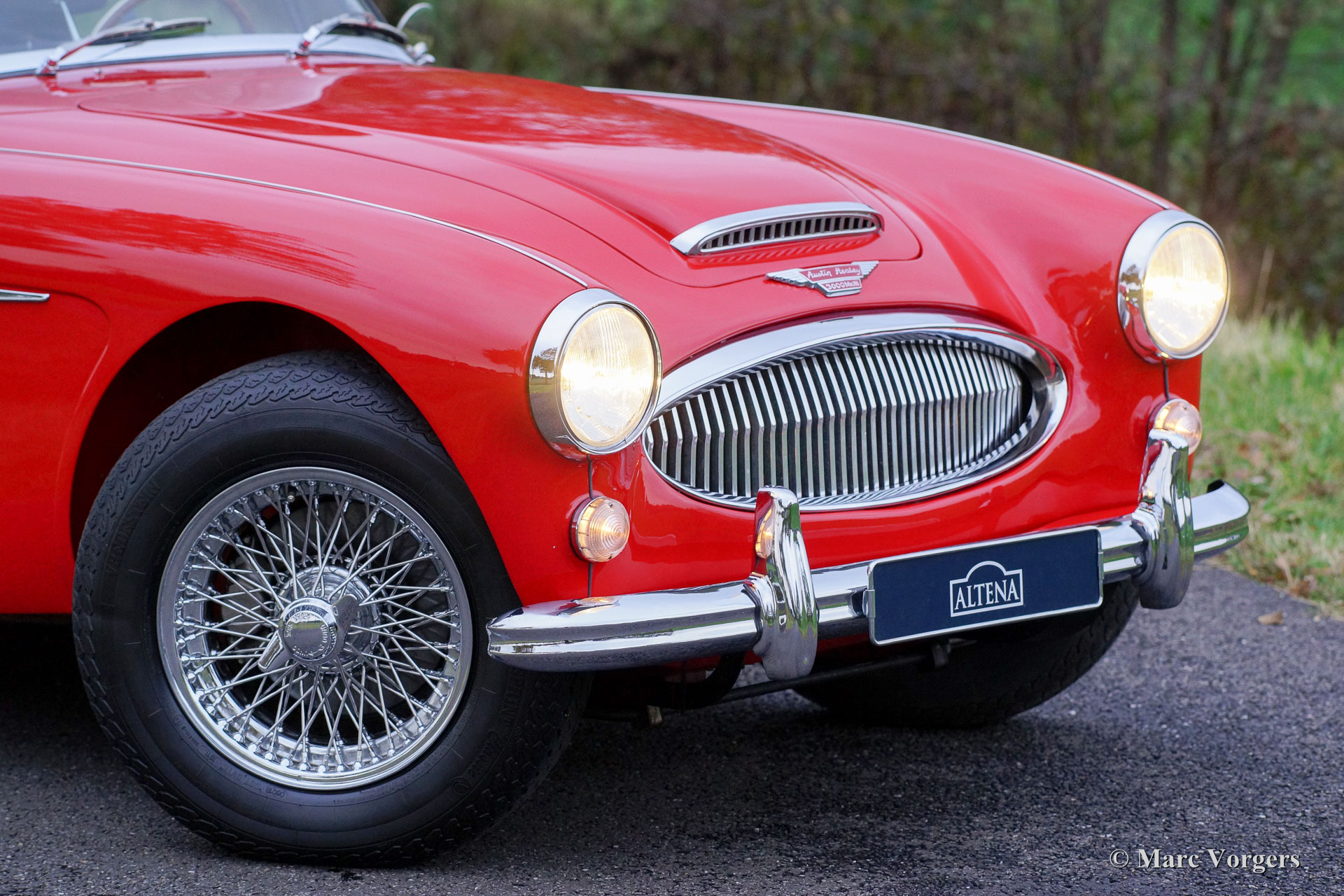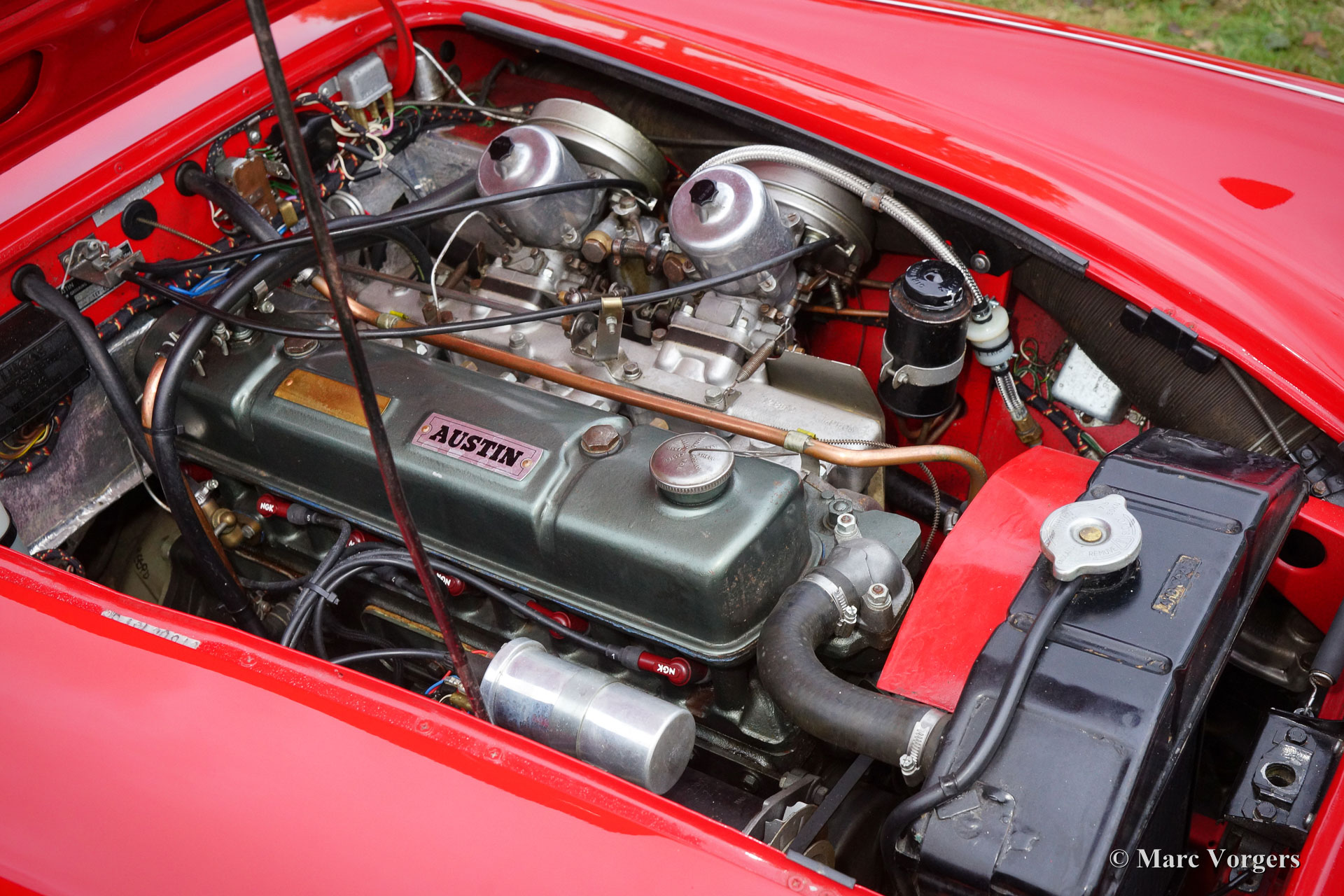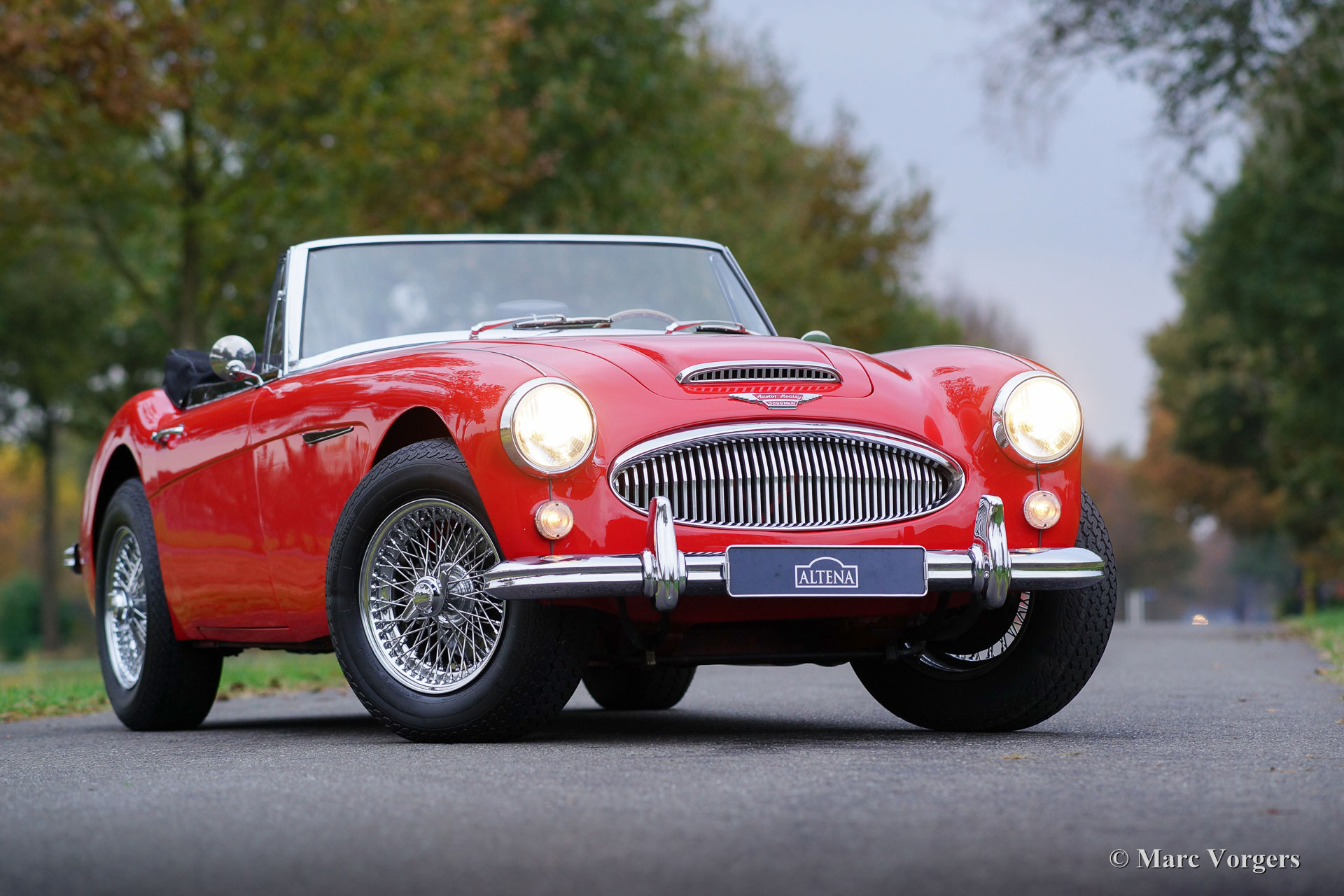 Austin Healey 3000 Mk III phase 1, jaar 1965. Chassisnummer HBJ8L308XX. Kleur rood met een zwartlederen interieur. Zwarte cabrioletkap, ‘hood cover’ en ‘tonneau cover’. Deze prachtige Austin Healey is sinds 1995 in Nederland, de auto werd uitvoerig gerestaureerd; een fotoreportage van de restauratie is aanwezig. Deze ‘Big Healey’ verkeert in sublieme staat en de auto rijdt perfect. Deze Healey is voorzien van chroom spaakwielen, een prachtig Moto-Lita sportstuur met houten rand, een chroom kofferrek en een prachtige klassieke Blaupunkt autoradio. Een prachtig en uitstekend exemplaar!