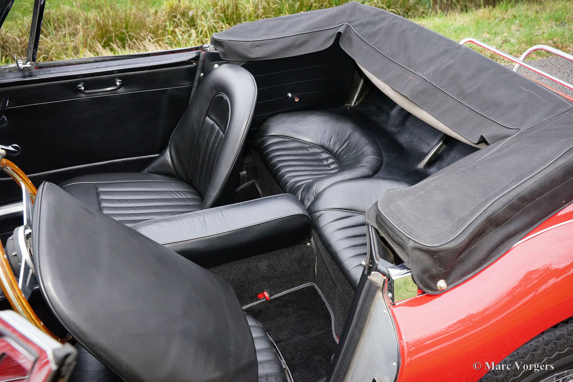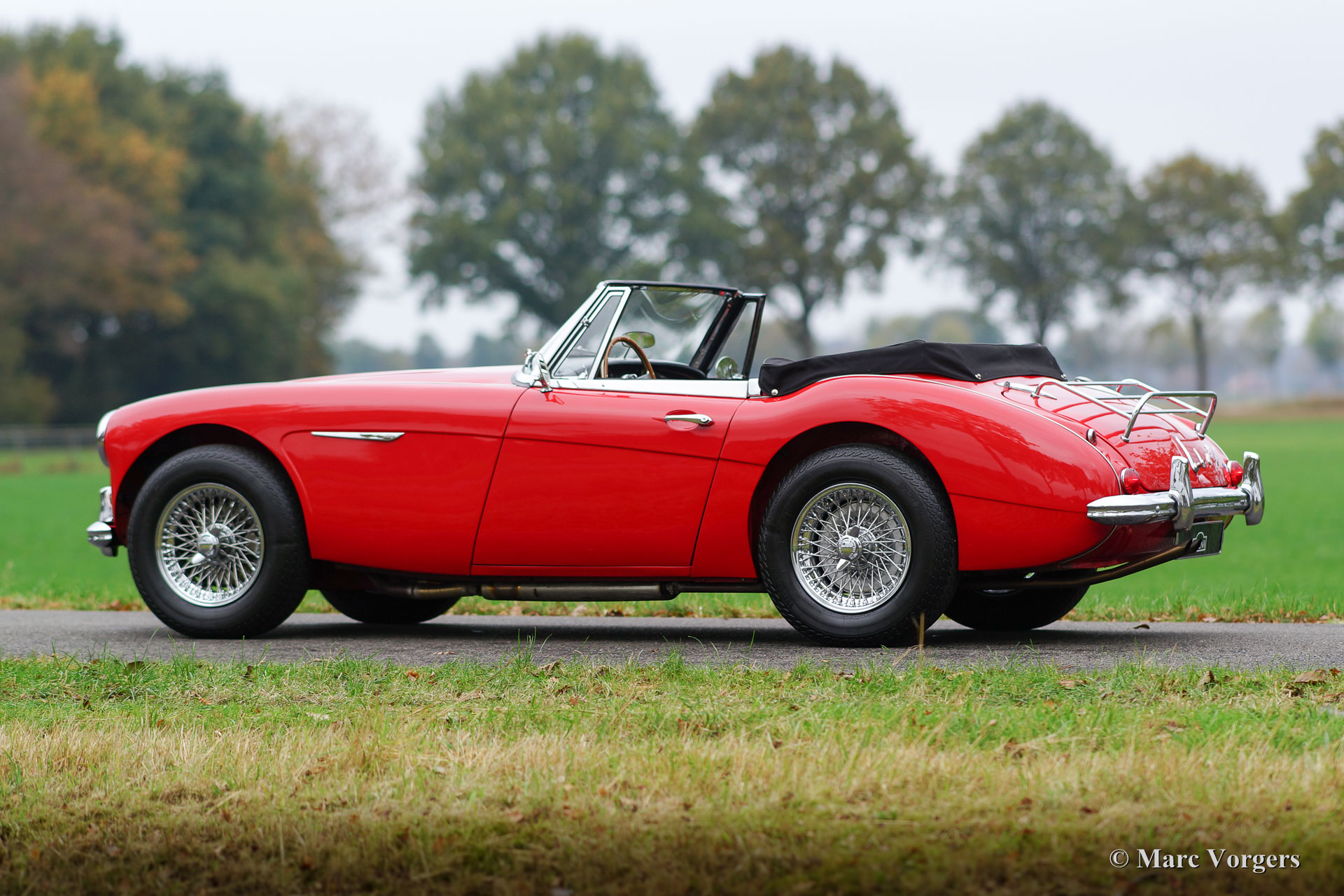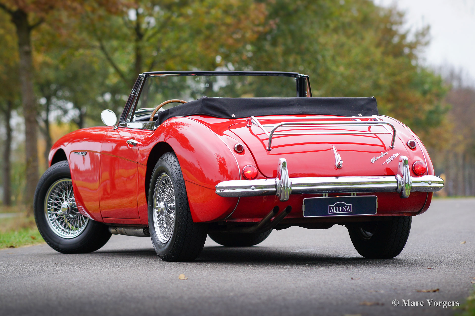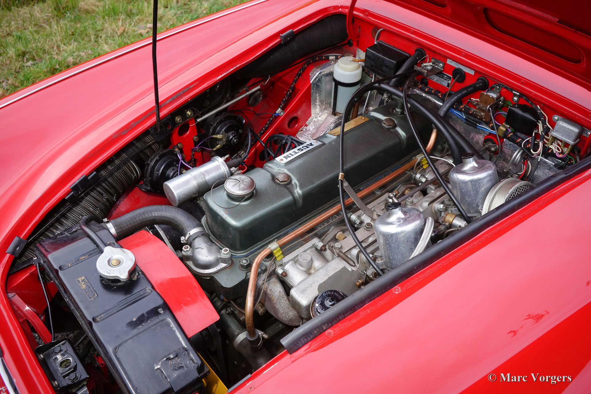Austin Healey 3000 Mk III phase 1, jaar 1965. Chassisnummer HBJ8L308XX. Kleur rood met een zwartlederen interieur. Zwarte cabrioletkap, ‘hood cover’ en ‘tonneau cover’. Deze prachtige Austin Healey is sinds 1995 in Nederland, de auto werd uitvoerig gerestaureerd; een fotoreportage van de restauratie is aanwezig. Deze ‘Big Healey’ verkeert in sublieme staat en de auto rijdt perfect. Deze Healey is voorzien van chroom spaakwielen, een prachtig Moto-Lita sportstuur met houten rand, een chroom kofferrek en een prachtige klassieke Blaupunkt autoradio. Een prachtig en uitstekend exemplaar!