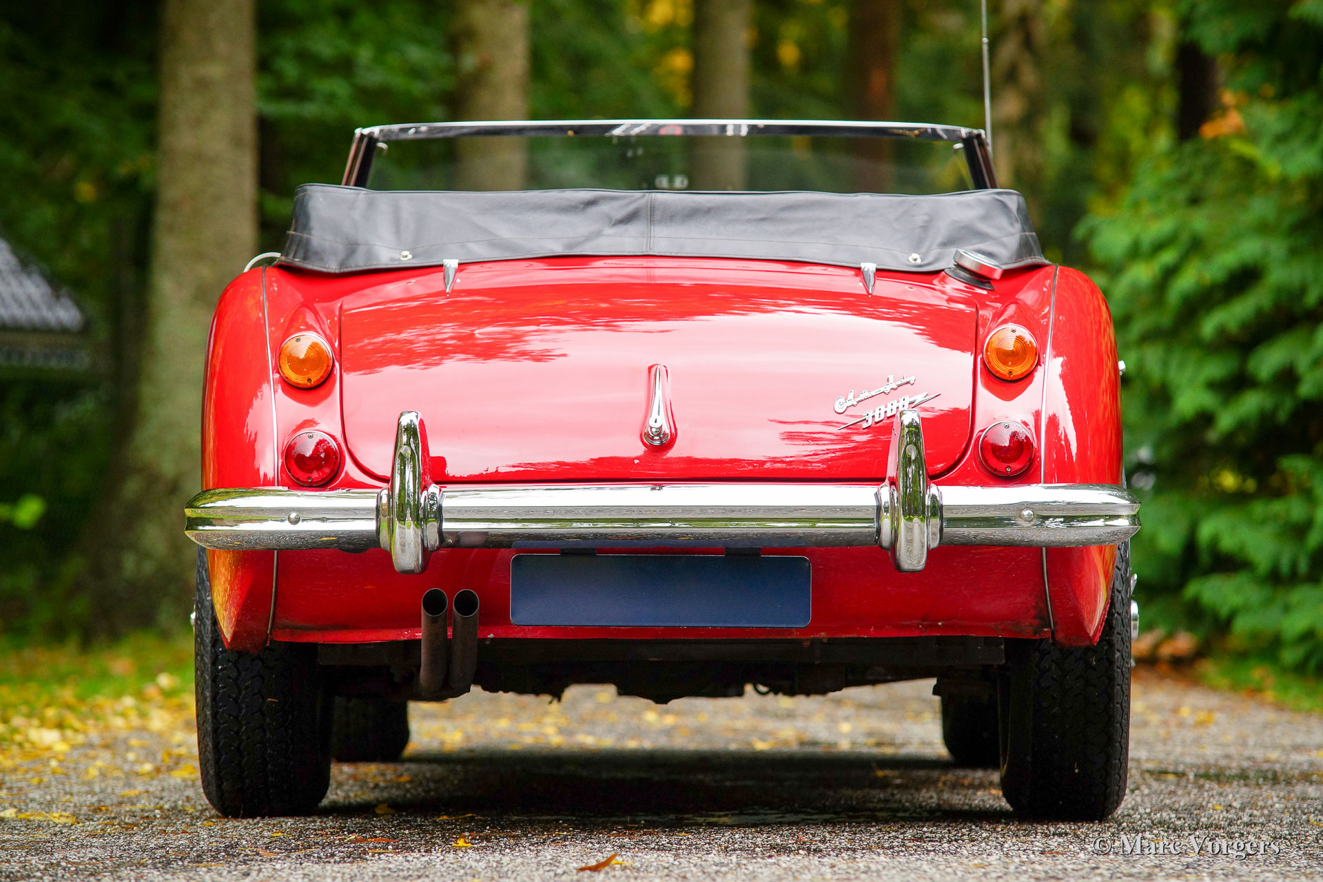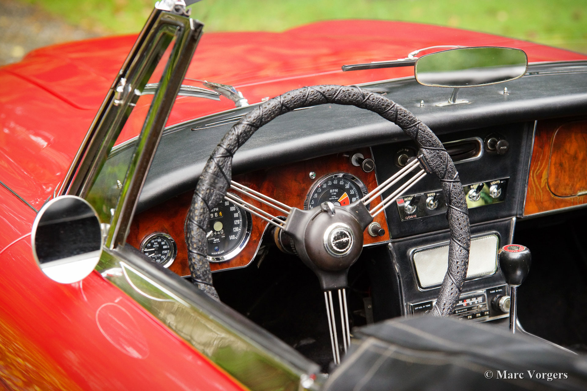 Austin Healey 3000 Mk III phase 2, bouwjaar 1966. Kleur rood met een origineel zwart interieur. Deze prachtige ‘Big Healey’ werd nieuw verkocht in Amerika. In 1990 vond de auto een nieuwe eigenaar in Nederlands die de auto 25 jaar lang gekoesterd heeft! In de jaren 1990 werd de auto uitvoerig ‘body off’ gerestaureerd. Deze Austin Healey verkeert in zeer goede staat en de auto rijdt uitstekend. De auto is recent voorzien van nieuwe banden. Uitgebreide service historie (facturen) aanwezig.