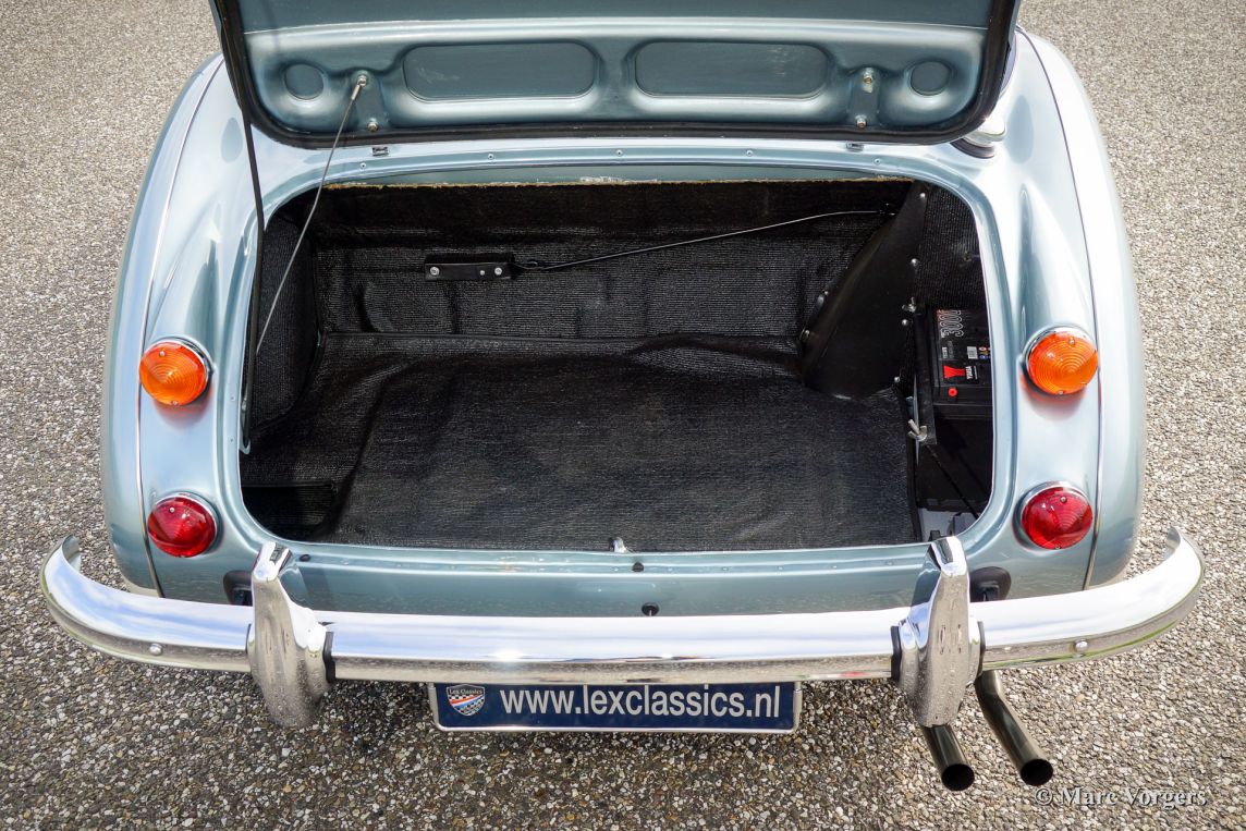 Austin Healey 3000 Mk III phase 2, bouwjaar 1967. Chassisnummer: HBJ8L/39539. Kleur Ice Blue metallic boven crème wit. Blauw lederen interieur met blauw tapijt. Blauwe mohair kap en hood cover. Deze prachtige Austin Healey van het laatste type is in recente jaren uitvoerig ‘body off’ gerestaureerd. Een uitgebreide fotoreportage van de restauratie is aanwezig. Sinds de restauratie is de auto gedurende 2.044 mijl ingereden. De auto verkeert in sublieme topstaat. De auto is voorzien van chroom spaakwielen, overdrive en een klassieke radio. Een Heritage certificaat is aanwezig, alle nummers corresponderen: ‘matching numbers’.