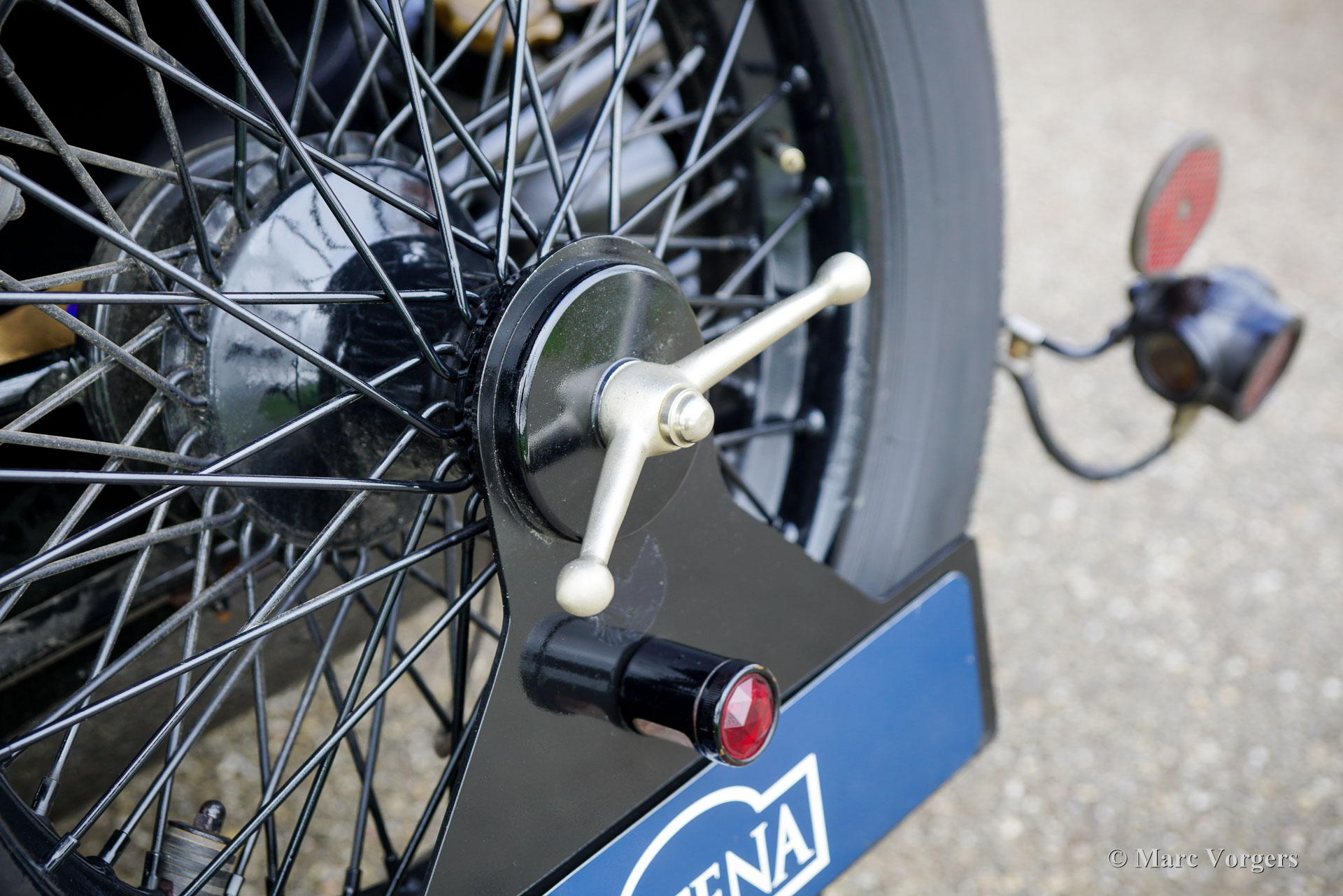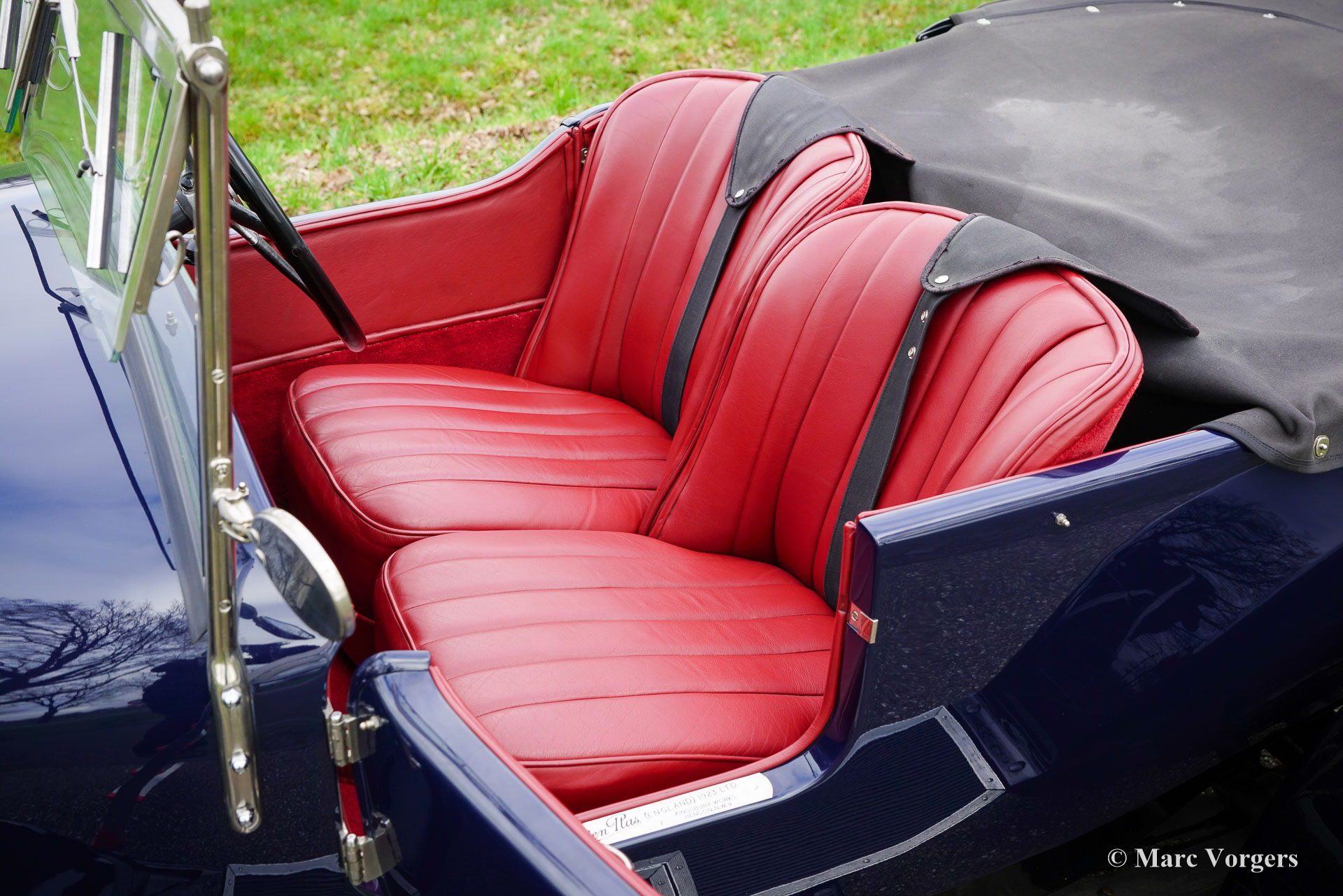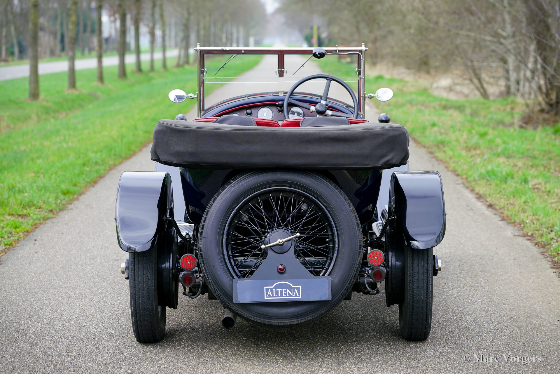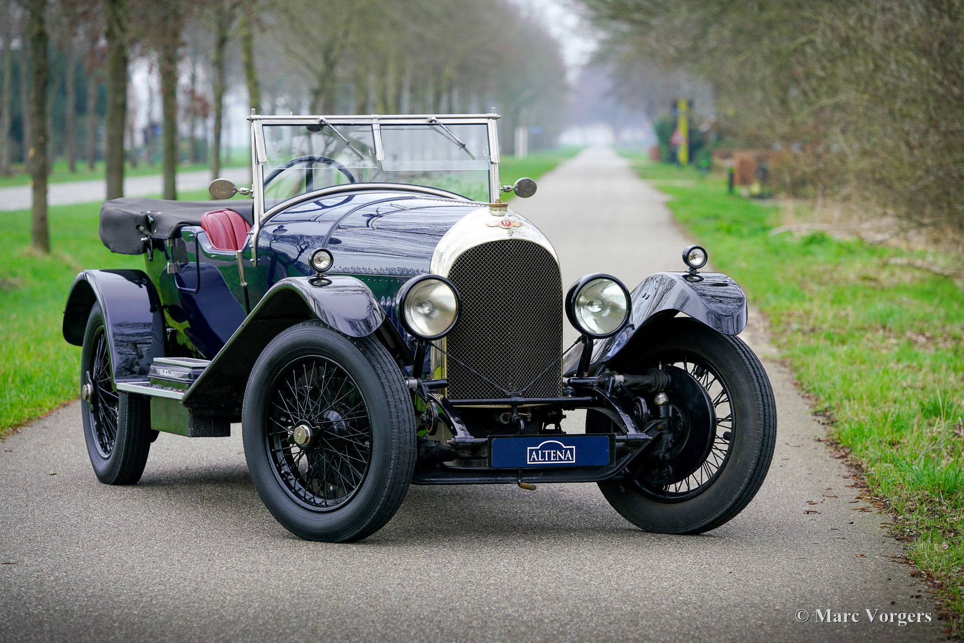 Bentley 3 Litre Speed model, bouwjaar 1924. Kleur donkerblauw met zwarte spaakwielen gecombineerd met een roodleren interieur afwerkt met rood wollen tapijt. Zwarte kap, hood-cover en tonneau-cover. Dit originele Bentley 3-litre ‘red badge’ Speed-model met kort chassis werd nieuw verkocht in het Verenigd Koninkrijk, uitgerust met een ‘Park Ward’ carrosserie. In latere jaren werd de auto voorzien van de huidige 4-zits open tourer carrosserie. De automobiel werd uitvoerig gerestaureerd en gereviseerd door een Bentley specialist met oog voor originaliteit. De motor en alle mechanische onderdelen zijn volledig gereviseerd. Alle belangrijke chassis- en mechanische onderdelen zijn fabrieksorigineel, de nummers op het chassis, de motor, de versnellingsbak, de stuurinrichting en de achteras zijn correct voor deze auto zoals deze de fabriek verliet in 1924! De auto toont vele prachtige originele details zoals de bijzondere Sloper carburateurs en de met ‘Bentley’ gemarkeerde dashboardinstrumenten. De volledige historie is bekend en gedocumenteerd en van de uitgebreide restauratie is een fotoreportage aanwezig. Dit Bentley 3-Litre Speed-model wordt genoemd in het boek ‘Bentley The Vintage Years’, een standaardwerk over Bentley van Clare Hay. Deze schitterende Bentley 3-Litre verkeert in een prachtige en zeer goede staat. De automobiel ademt de kwaliteit die W.O. Bentley voor ogen had toen hij zijn ‘3-Litre’ creëerde; ‘Een snelle auto, een goede auto, de beste in zijn klasse’. De 3-litre was als een van de eerste productie auto’s uitgerust met een motor voorzien van 4 kleppen per cilinder, dry-sump-smering en een bovenliggende nokkenas. Het eerste Bentley 3-Litre chassis werd gepresenteerd op de London (Olympia) Motor Show in 1919, en de eerste klantenauto werd in 1921 afgeleverd. Tussen de show en 1921 was er veel werk nodig om de verfijning te verbeteren. Zoals W.O. later schreef: ‘Ik haat lawaai omwille van het lawaai. 110 km per uur in stilte is veel verdienstelijker dan een luidruchtige 130 km per uur.” De Bentley 3-Litre werd zeer goed ontvangen door de autopers. Sammy Davis van Autocar schreef: “Voor de man die een echt sportief type lichte auto wil voor gebruik op een continentale tour – waar het niet de bedoeling is dat snelheidslimieten in acht worden genomen – is de 3-liter Bentley ongetwijfeld de auto bij uitstek. ” Vanaf het begin werd met de robuuste en krachtige Bentley 3-Litre deelgenomen aan wedstrijden en races. De 3-Litre won talloze races, waaronder de legendarische 24 uur van Le Mans in 1924 en 1927. Ook een particuliere eigenaar (John Duff) vestigde in 1925 21 wereldrecords in 24 uur aan het stuur van een Bentley 3-Litre. Tussen 1921 en 1929 werden in totaal 1622 Bentley 3-Litre-modellen gebouwd. Dit Bentley 3-Litre-model is een prachtig product uit deze avontuurlijke vroege Bentley Motors-periode. Een prachtig verzamelobject en een droommachine voor vintage Bentley rijders en Bentley liefhebbers.