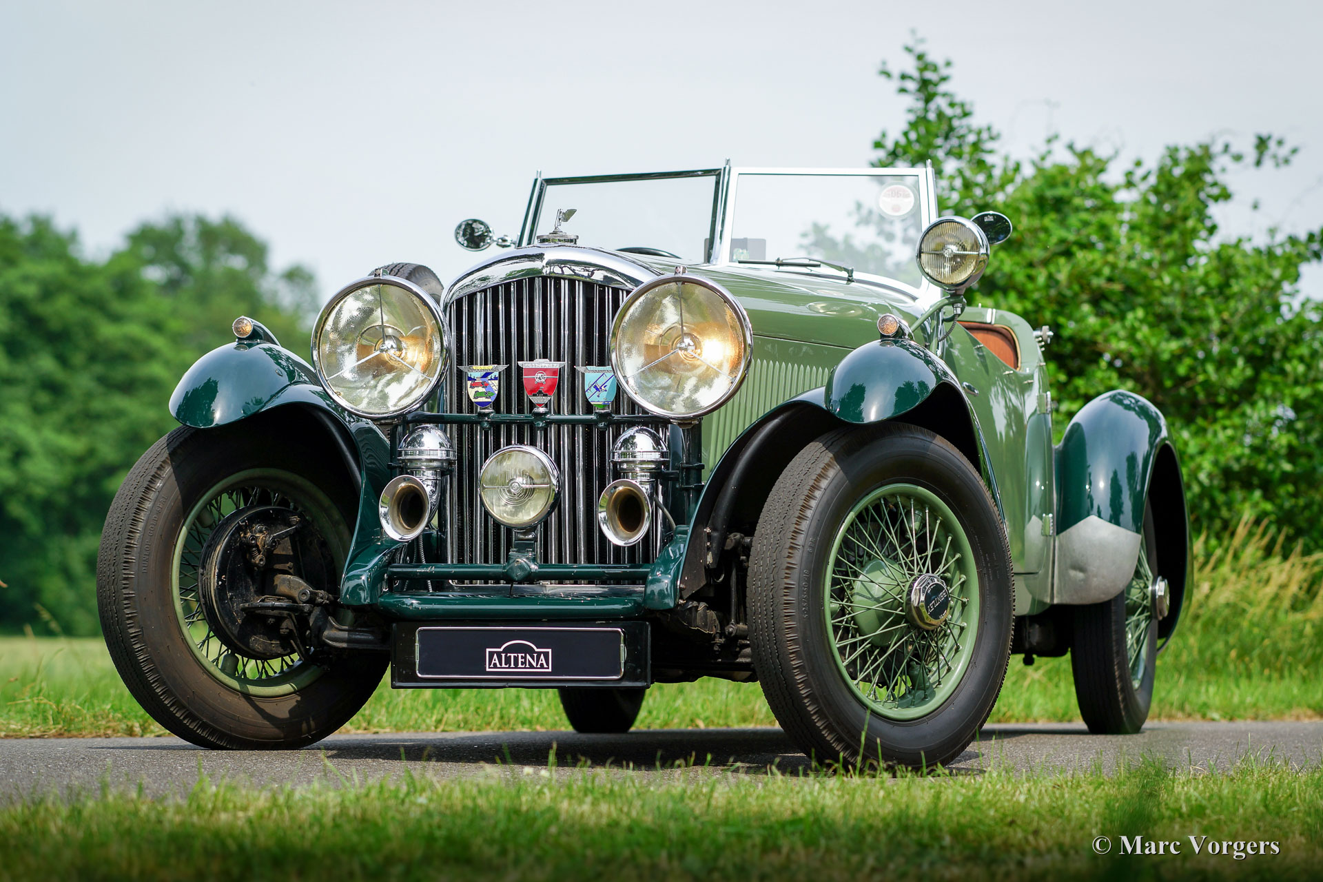 Bentley 3½ Litre Sports, bouwjaar 1934. Kleur ‘two-tone’ lichtgroen/donkergroen met een cognac-kleurig lederen interieur met bijpassend tapijt. Chassisnummer B111BL. Deze ‘Derby’ Bentley verliet de fabriek met een 'open tourer' carrosserie op 3 augustus 1934. De automobiel werd verscheept naar de eerste eigenaar in Zuid Afrika. In de jaren 1940 kwam de Bentley terug in Engeland. In de late jaren 1980, vroege jaren 1990 werd de automobiel in Engeland voorzien van de huidige en zeer fraaie tweezits ‘sport’ carrosserie. Van deze periode zijn er veel facturen van de restauratie aanwezig. Deze Bentley 3½ Litre Sports verkeert in zeer mooie staat en de auto rijdt geweldig! De jaren 1930 Bentley slogan ‘The Silent Sports Car’ is nog altijd onverminderd van toepassing. De Bentley voelt zeer solide en de auto kan met verve worden bedwongen door ervaren rijders. Deze Bentley ‘sports’ is een tijdloze schoonheid in de stoere mannelijke variant van het woord. Een zeer begeerlijke en unieke Bentley.