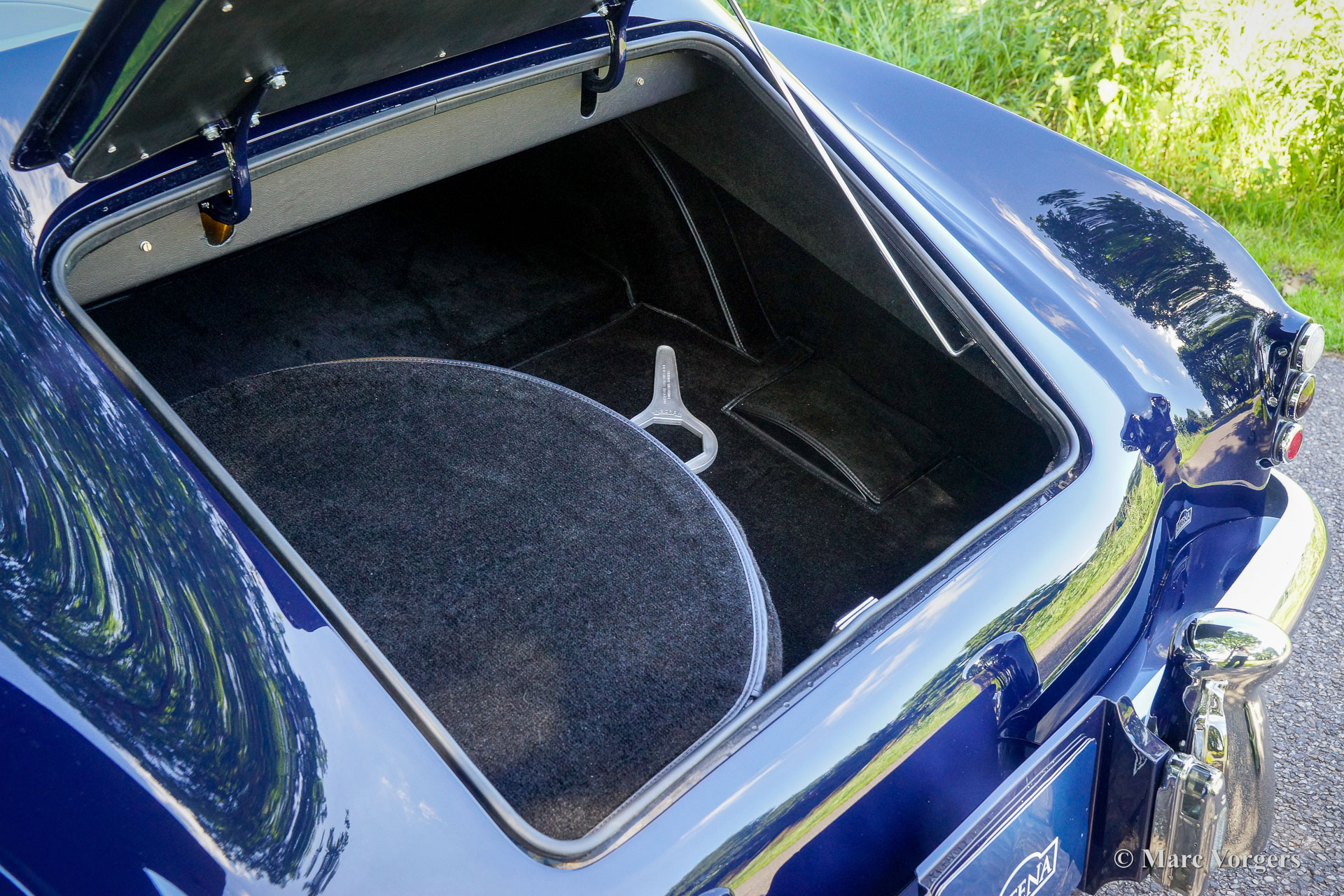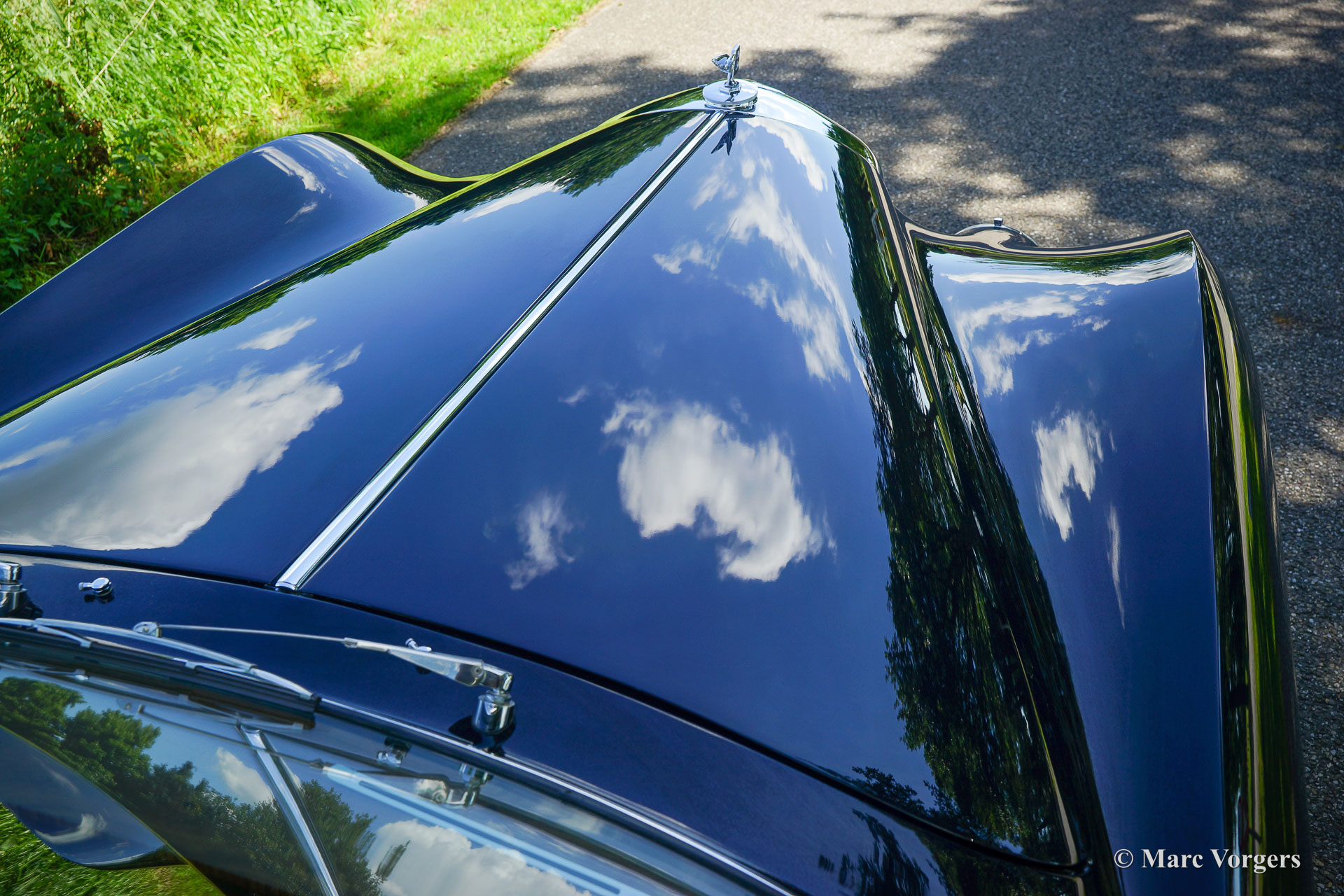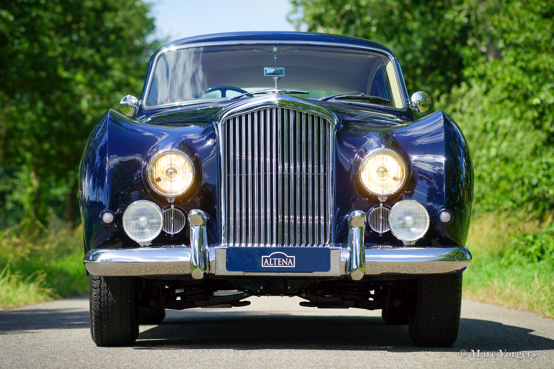 Bentley R Type Continental ‘recreation’, 1953. Kleur donkerblauw gecombineerd met een beige lederen interieur afgewerkt met beige wollen tapijt. Deze majestueuze Bentley R Type Continental werd in 2018 voltooid door Racing Green Engineering (Wales, VK). Deze Bentley R Type Continental ‘recreation’ is gebaseerd op een origineel Bentley R-type chassis met alle mechanische componenten uit 1953. Het chassis, de motor, de versnellingsbak en alle andere originele componenten werden volledig gerestaureerd en gereviseerd volgens de hoogste normen en tot in de perfectie afgewerkt. De aluminium carrosserie is met de hand gemaakt door de ambachtslieden van Racing Green Engineering, exact naar het voorbeeld van de originele vorm van het R Type Continental-ontwerp van H.J. Mulliner. De originele R Type Continental werd gepresenteerd in 1952 en werd geproduceerd tot 1955. Oorspronkelijk werden er slechts 208 exemplaren gebouwd door Bentley. De R Type Continental herdefinieerde de naoorlogse Bentley en het is een van de meest indrukwekkende auto's ooit ontworpen. De R Type Continental werd gebouwd met een strikt streefgewicht van 1750 kg: in 1950 bestond er geen band die een zwaarder gewicht bij snelheden hoger dan 115mph (185 km/u) kon dragen. De R Type Continental werd de hemel in geprezen door Autocar Magazine: “Welke gedenkwaardige auto-ervaringen men ook heeft gehad, dit was iets anders... deze Bentley is een modern vliegend tapijt dat grote afstanden vernietigt en de inzittenden bijna net zo fris aflevert als toen ze aan de rit begonnen.” Deze door Racing Green Engineering gebouwde Bentley R Type Continental ‘recreation’ heeft slechts 2700 kilometer gereden sinds zijn voltooiing en de auto verkeert in een als nieuwe concoursstaat! De 4566 cc R Type zescilinder motor loopt soepel en krachtig en de volledig gesynchroniseerde R Type vierversnellingsbak schakelt perfect. Het interieur is gestoffeerd en afgewerkt met het beste leer, wol en walnotenhout. Het walnoothouten dashboard en de andere houten interieurdelen zijn kunstig gemaakt. Deze automobiel heeft sinds de voltooiing één trotse eigenaar gekend. Dit is uw kans om een fantastische recreatie te kopen van de mooiste en meest begeerlijke naoorlogse Bentley die ooit het levenslicht zag. Deze zeer exclusieve automobiel wordt geleverd met alle originele Bentley documenten, en een restauratie (foto)rapport.