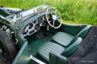 The Bentley 3 Litre was W.O. Bentley’s first design. The car was presented in 1919 but the first cars were sold in 1921. The four cylinder cars of rugged construction where in a class of their own for they combined the size and comfort of the big tourers and saloons with the road holding, and speed of the smaller sports- and racing cars. The Bentley was a true owner-driver car for the sporting motorist and connoisseur. The Bentley car could be had in three different types which were designated with three different radiator badges*. Red badge: short chassis speed model, Blue badge: the early short and then long chassis type for bespoke bodywork, Green badge: very rare and used for about eighteen 100 mph. These Green badge car won at Le Mans in 1924 and 1927 (Old Number Seven.) The 3-Litre was built from 1919 until 1929.