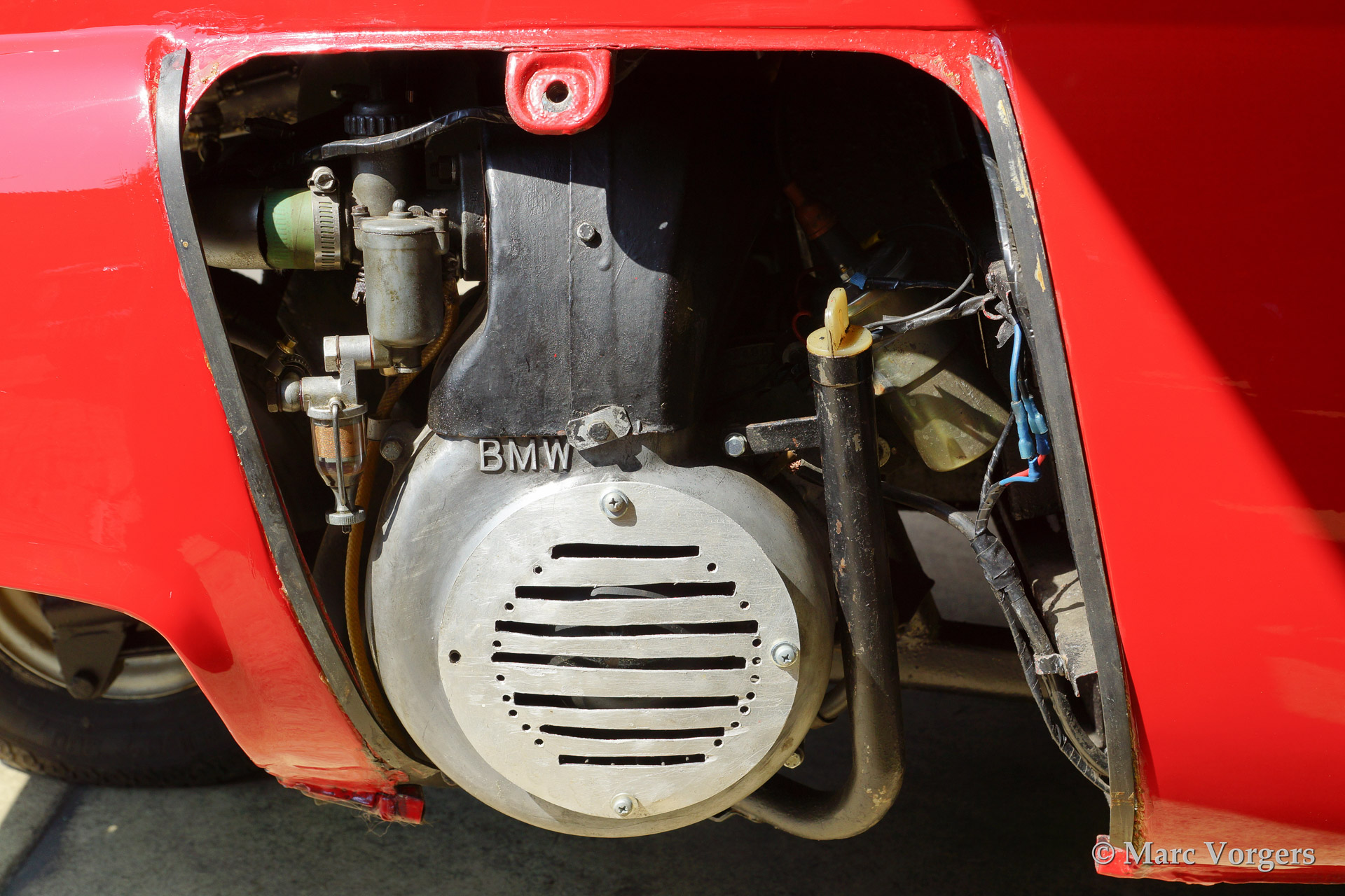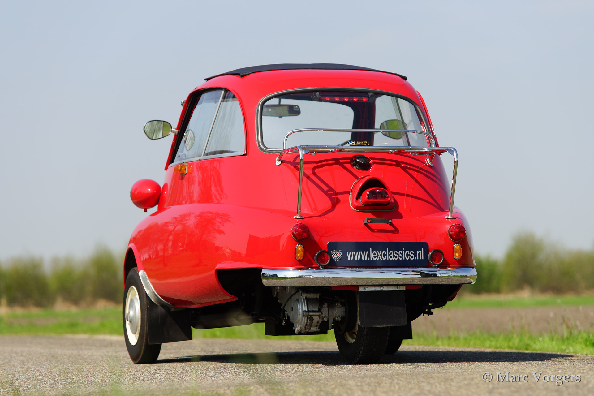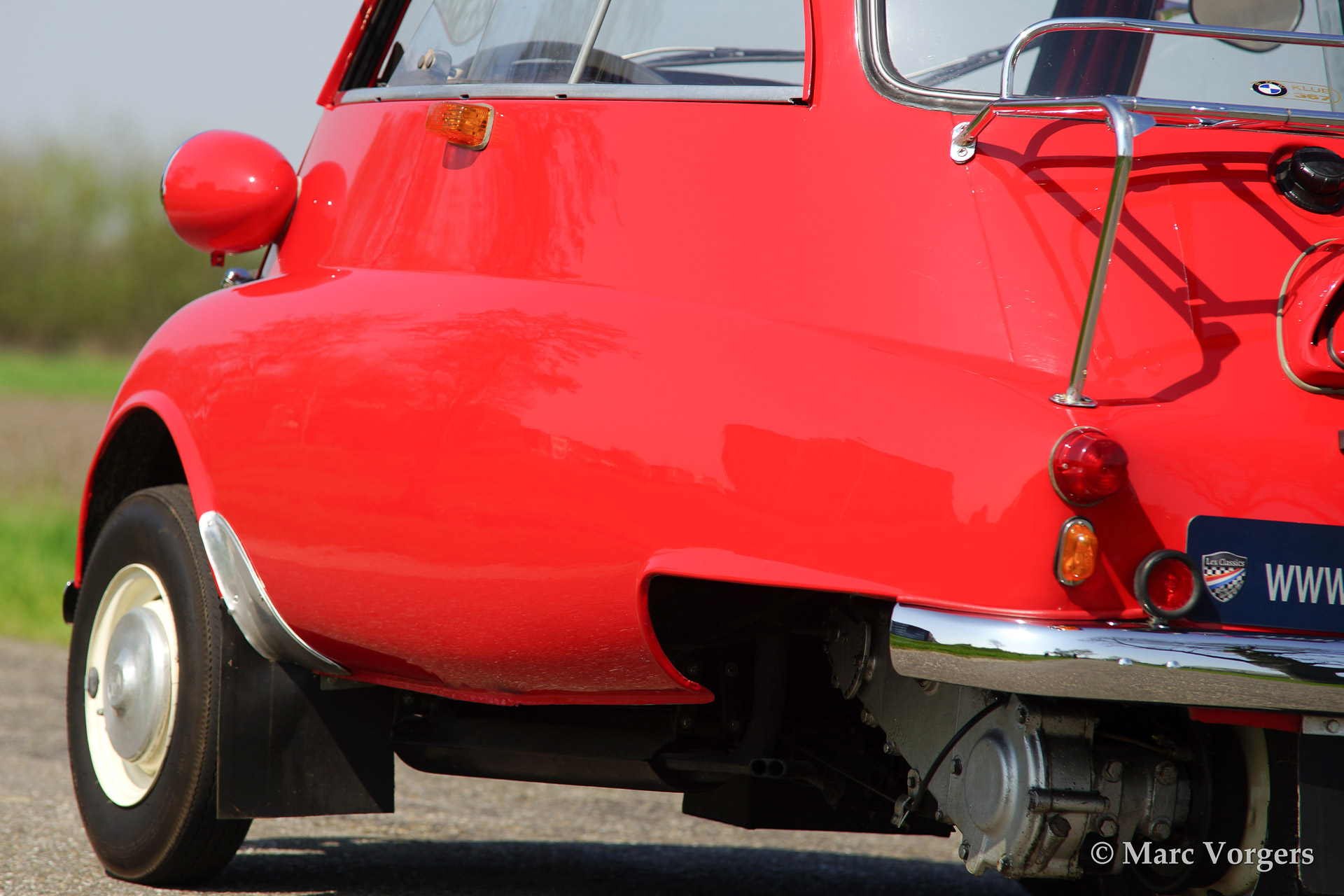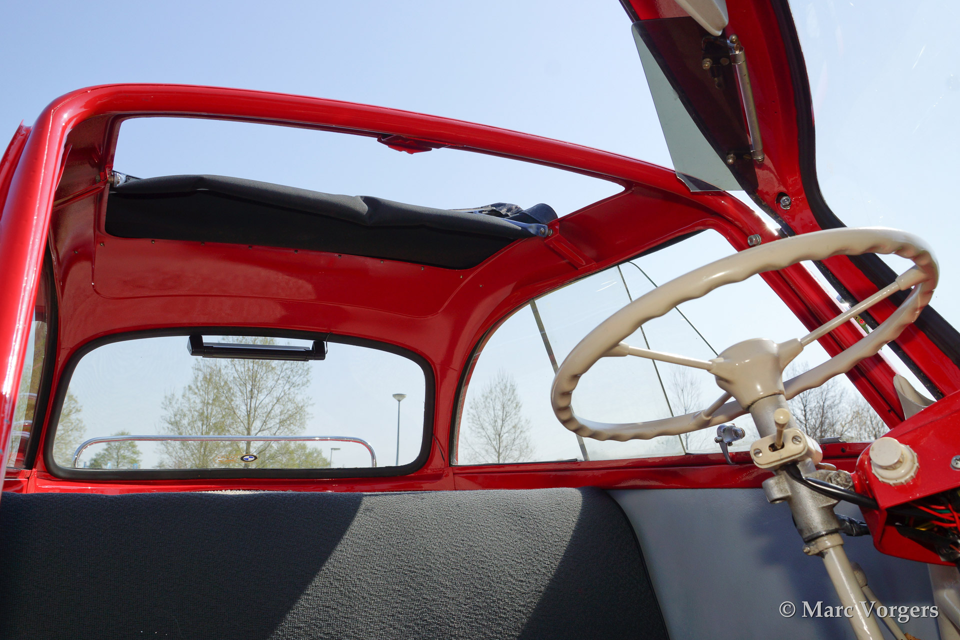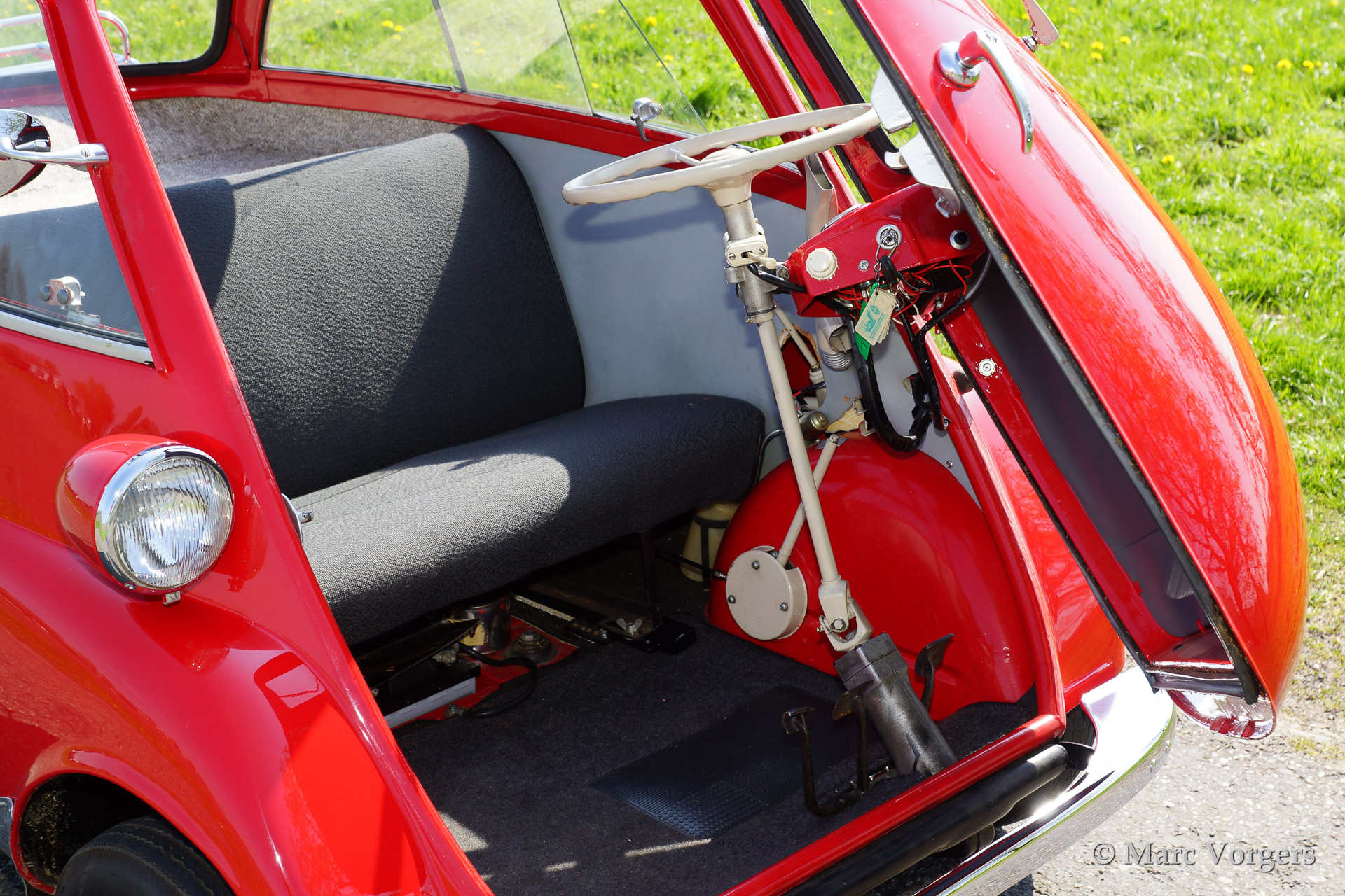 BMW Isetta 300, bouwjaar 1961. Kleur rood met een zwart/grijs interieur. deze geweldige Isetta 3-wieler werd uitvoerig gerestaureerd in Denemarken. Het is een unieke beleving om met een dergelijke 'cocon' op wielen rond te rijden!
