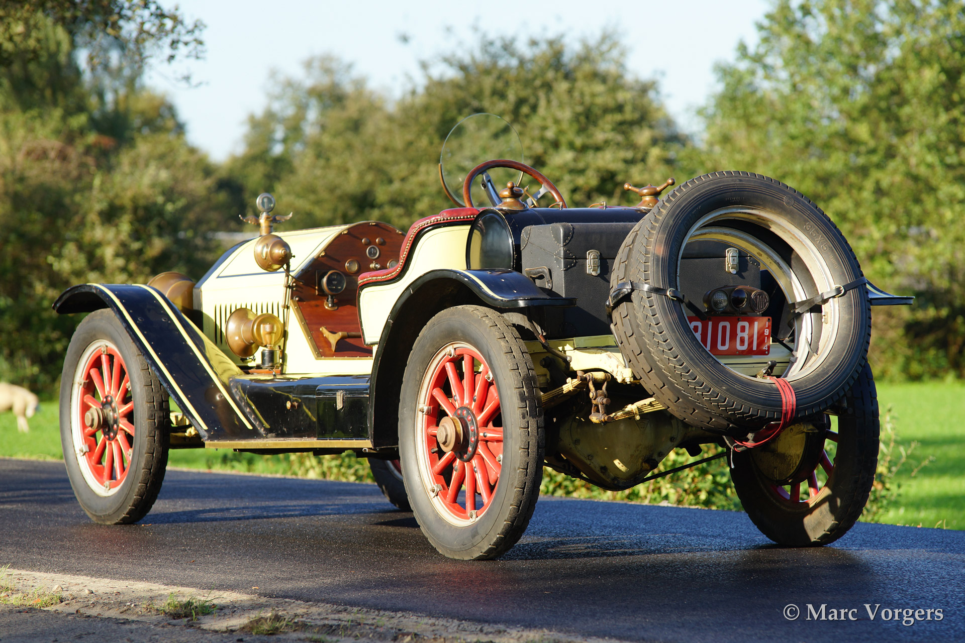 The Cadillac Model 30 was presented in the year 1908 with a phenomenal price tag of $1400. The chassis with 106 inch wheelbase was available with various bodywork styles. Motorists were offered a three seat Roadster, a two-door 'Demi-Tonneau' with four seats and a two-door Tourer with ample room for five passengers. Through the years engines with increasing capacities were fitted, the ultimate and last presented in 1914: 6 Litre water cooled four cylinder in-line type featuring a 5-bearing crankshaft. After this last four cylinder engine Cadillac introduced the V8 engine!