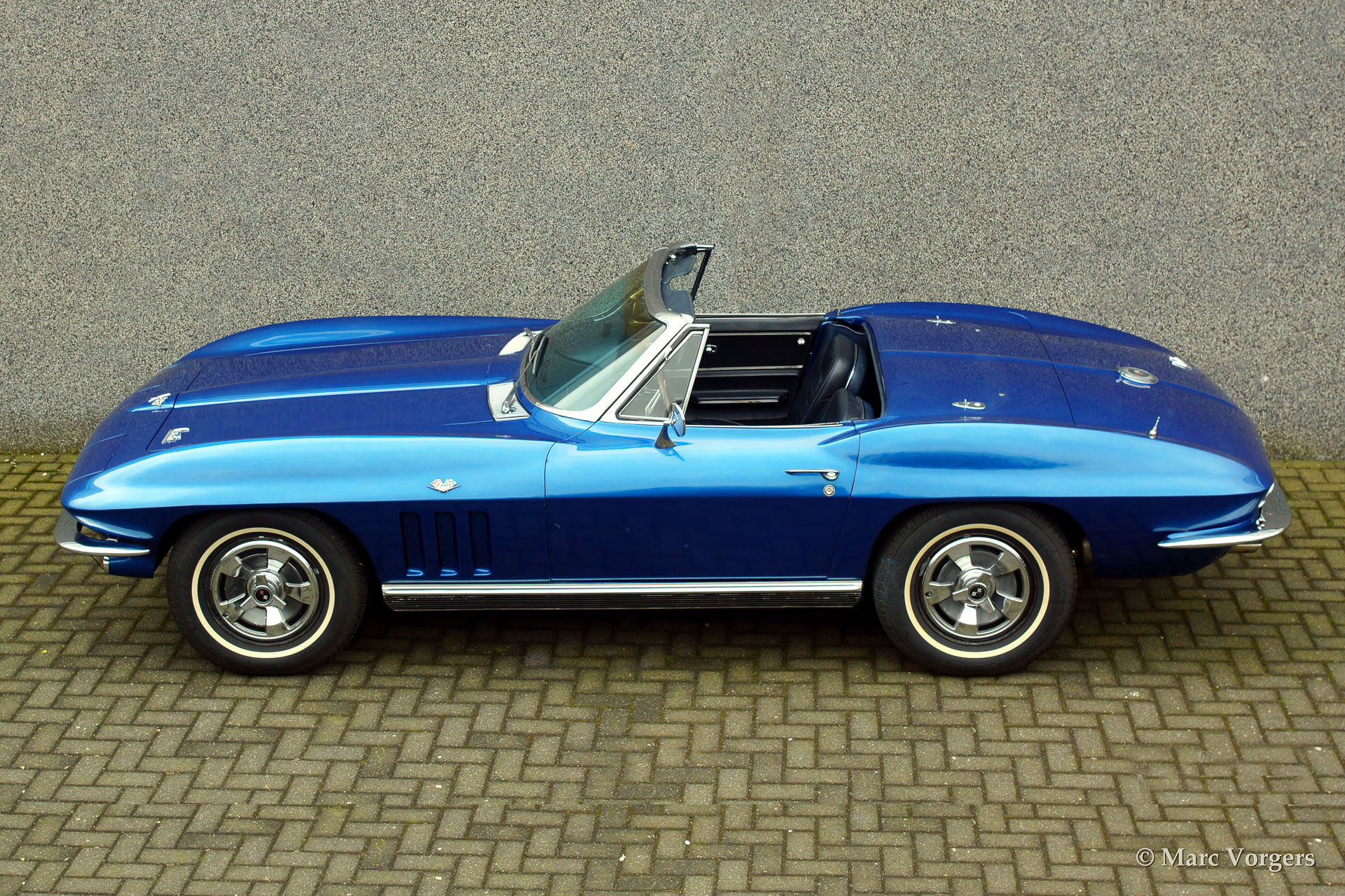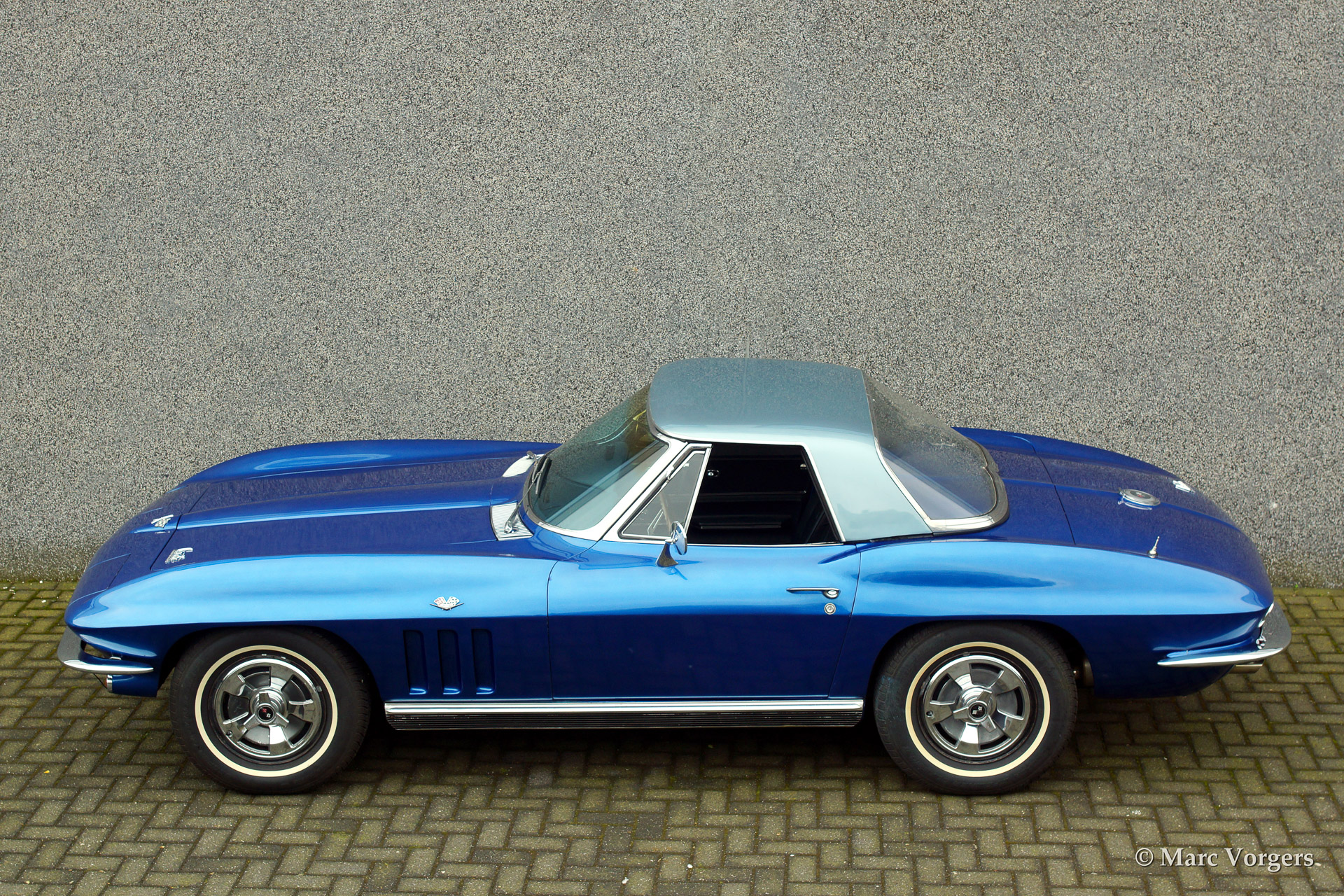 Chevrolet Corvette Sting Ray roadster, bouwjaar 1966. Kleur 'Laguna blue' metallic met een donkerblauw lederen interieur. Deze indrukwekkende Corvette Sting Ray roadster verkeert in zeer goede originele staat en de auto rijdt en klinkt geweldig! De auto is perfect onderhouden door een specialist. De automobiel is compleet met een zeer fraaie originele hardtop. De hardtop is lichtblauw metallic wat prachtig combineert met de iets donkerdere carrosseriekleur.