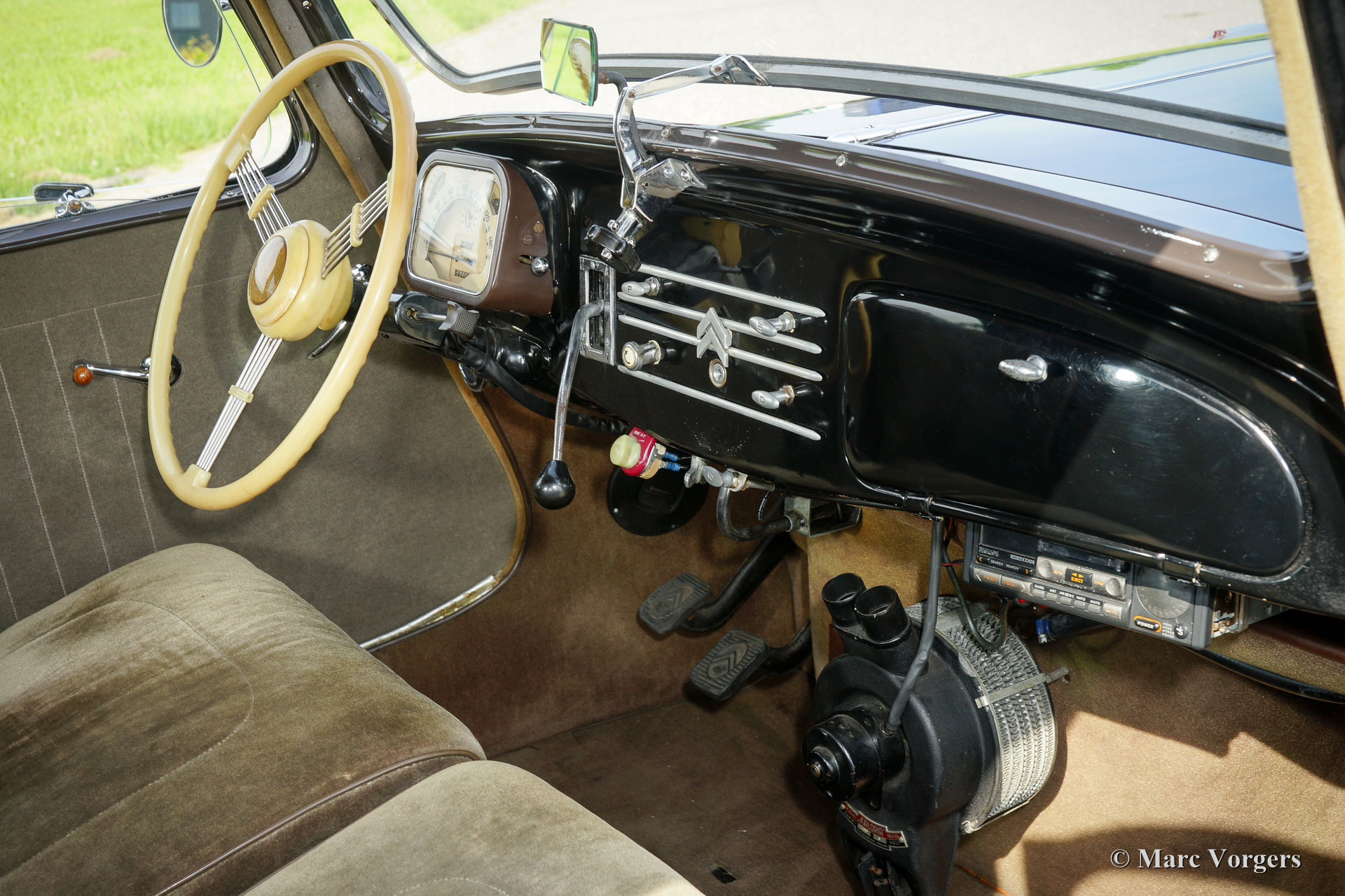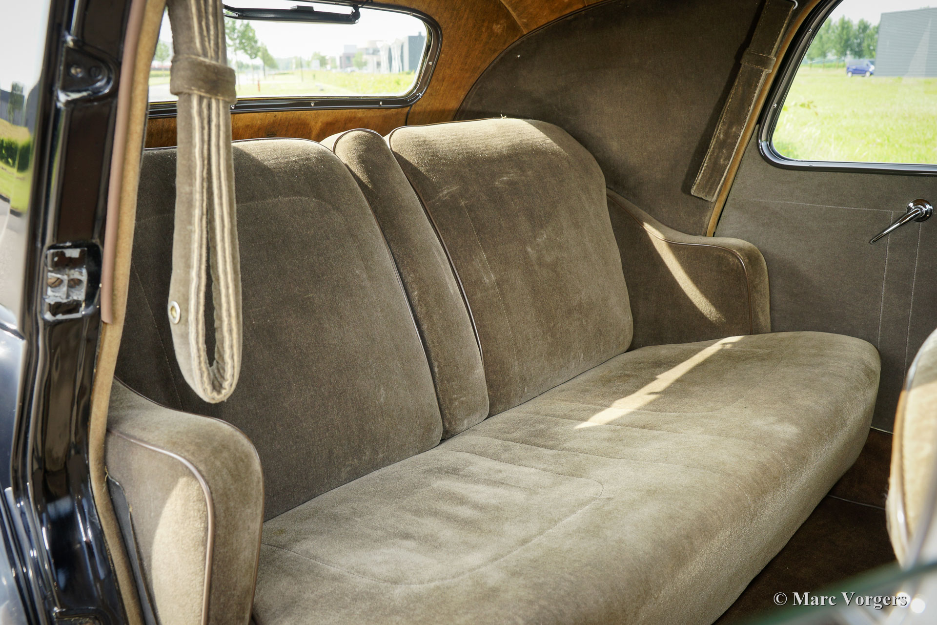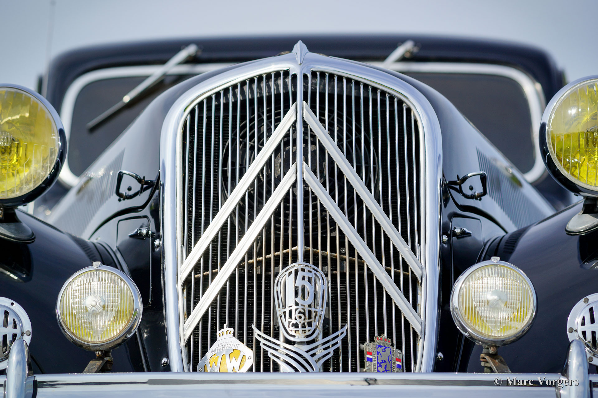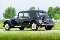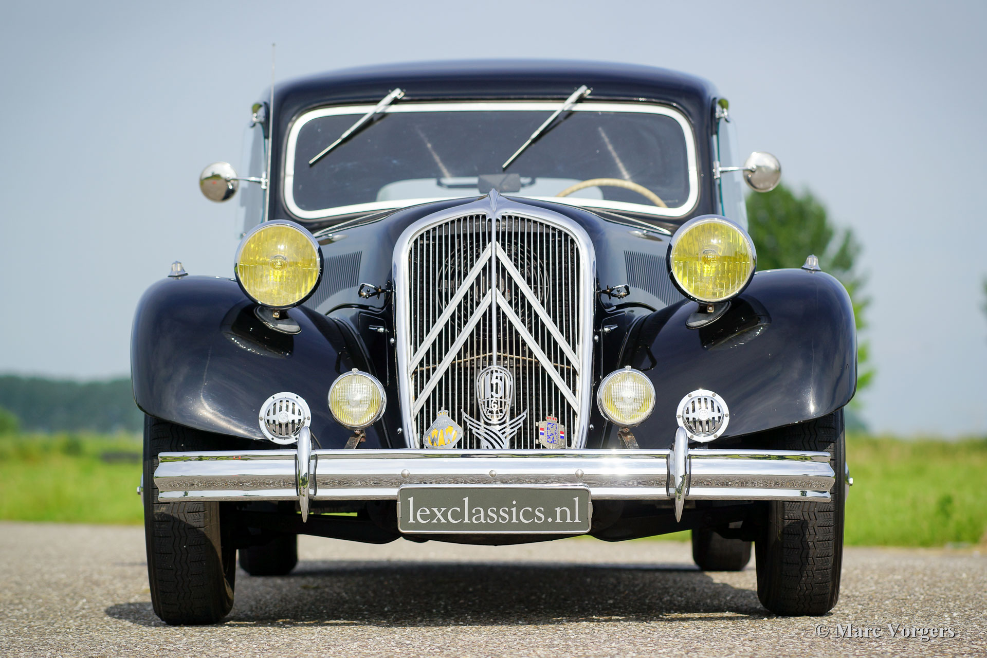 Citroën 15-SIX ‘Traction Avant’, jaar 1951. Kleur zwart met een bruin/grijzig stoffen interieur. Deze relatief schaarse en exclusieve Citroën 15-SIX ‘Traction Avant’ verkeert in zeer goede en super originele staat! Een ware tijdmachine! De Citroën innovatieve ‘Traction Avant’ werd in 1934 geïntroduceerd en het was de eerste personenauto in serieproductie met voorwielaandrijving. De zelfdragende carrosserie was ook een bijzonderheid in de vooroorlogse jaren. Het topmodel, de 15-SIX werd voorgesteld in het jaar 1938. Deze zescilinder uitvoering kreeg een krachtige 2.9 liter zescilinder-lijnmotor in het vooronder. De ‘Traction Avant’ 15-SIX was een snelle en robuuste automobiel met een uitstekende wegligging waardoor deze al snel populair werd bij de Franse politie en het boevengilde. Deze Citroën ‘Traction Avant’ 15-SIX werd al in 1971 in Nederland geïmporteerd en is voorzien van een mooi oud kenteken. De automobiel rijdt uitstekend en de zescilinder motor klinkt geweldig. Dit is een schaars en zeer origineel exemplaar!