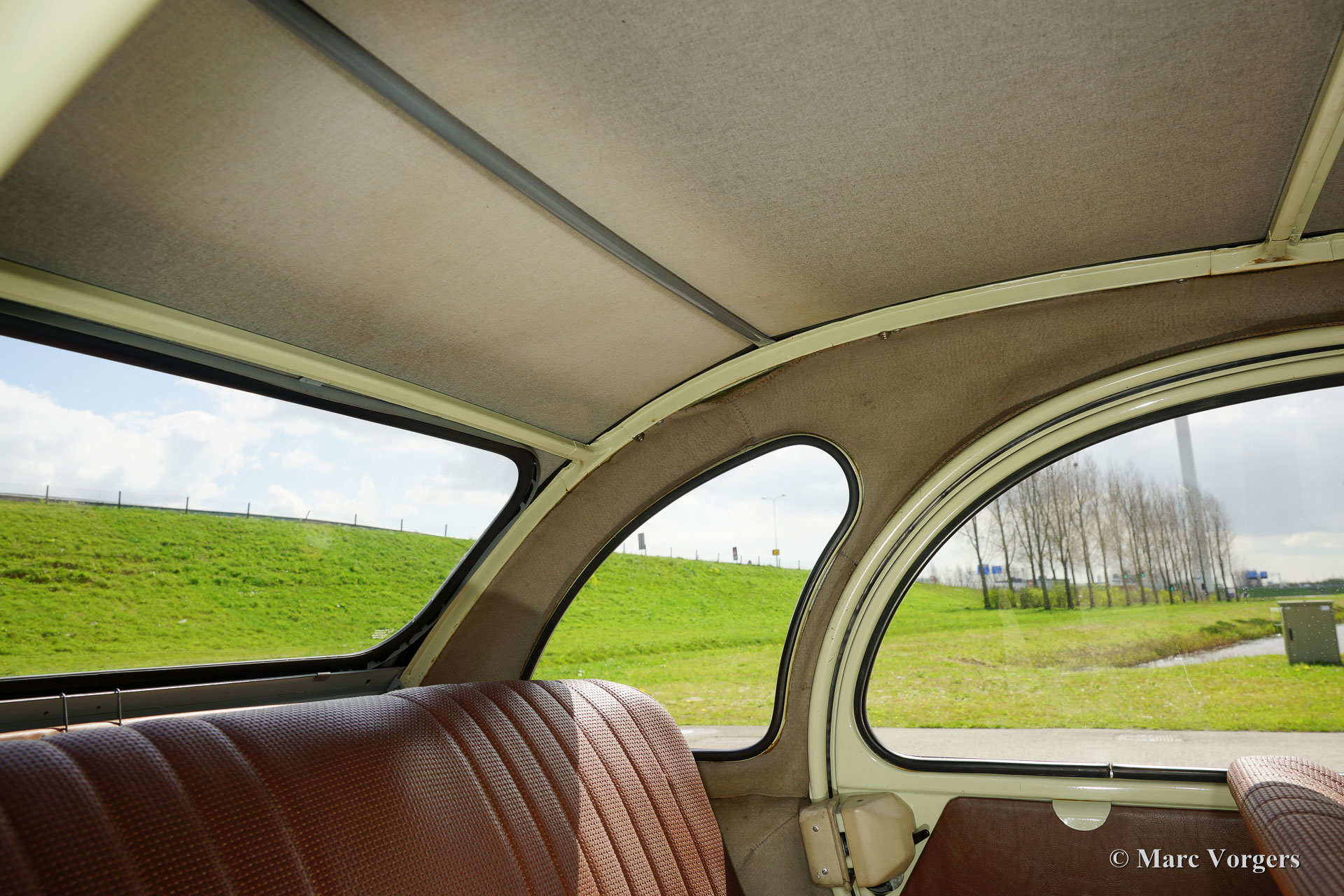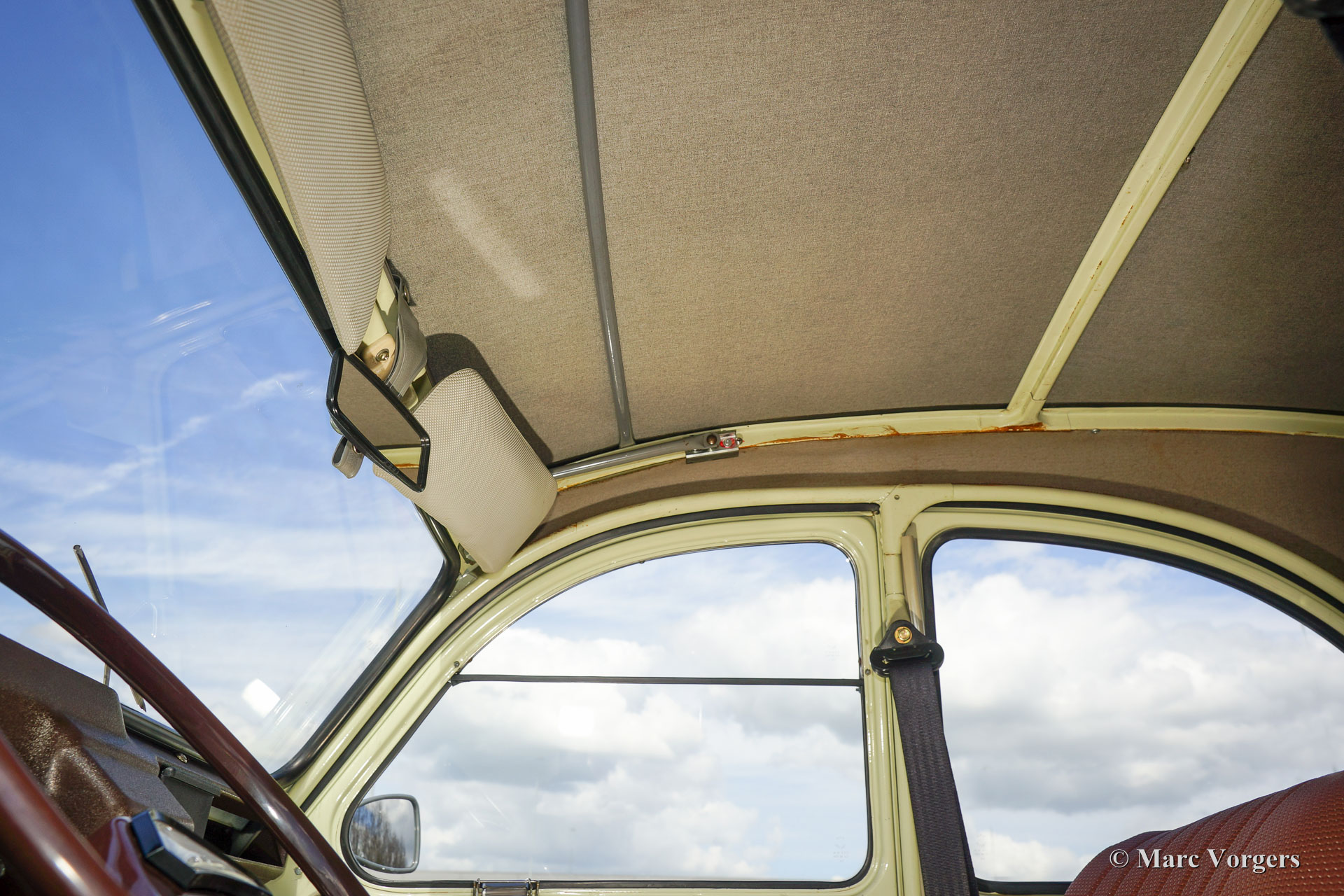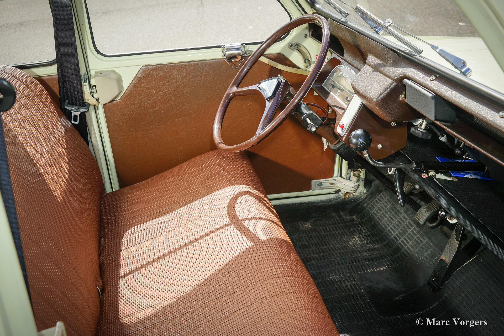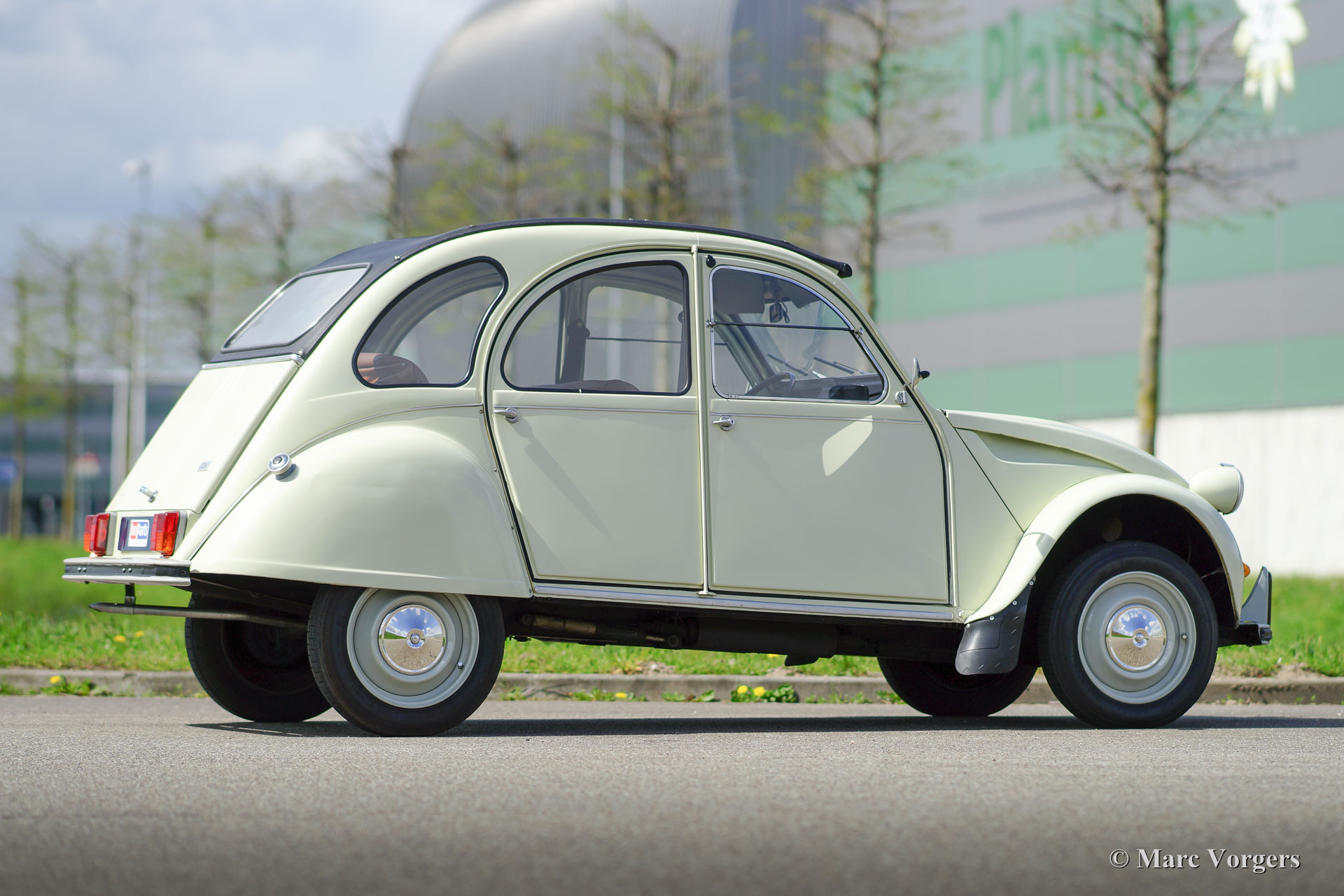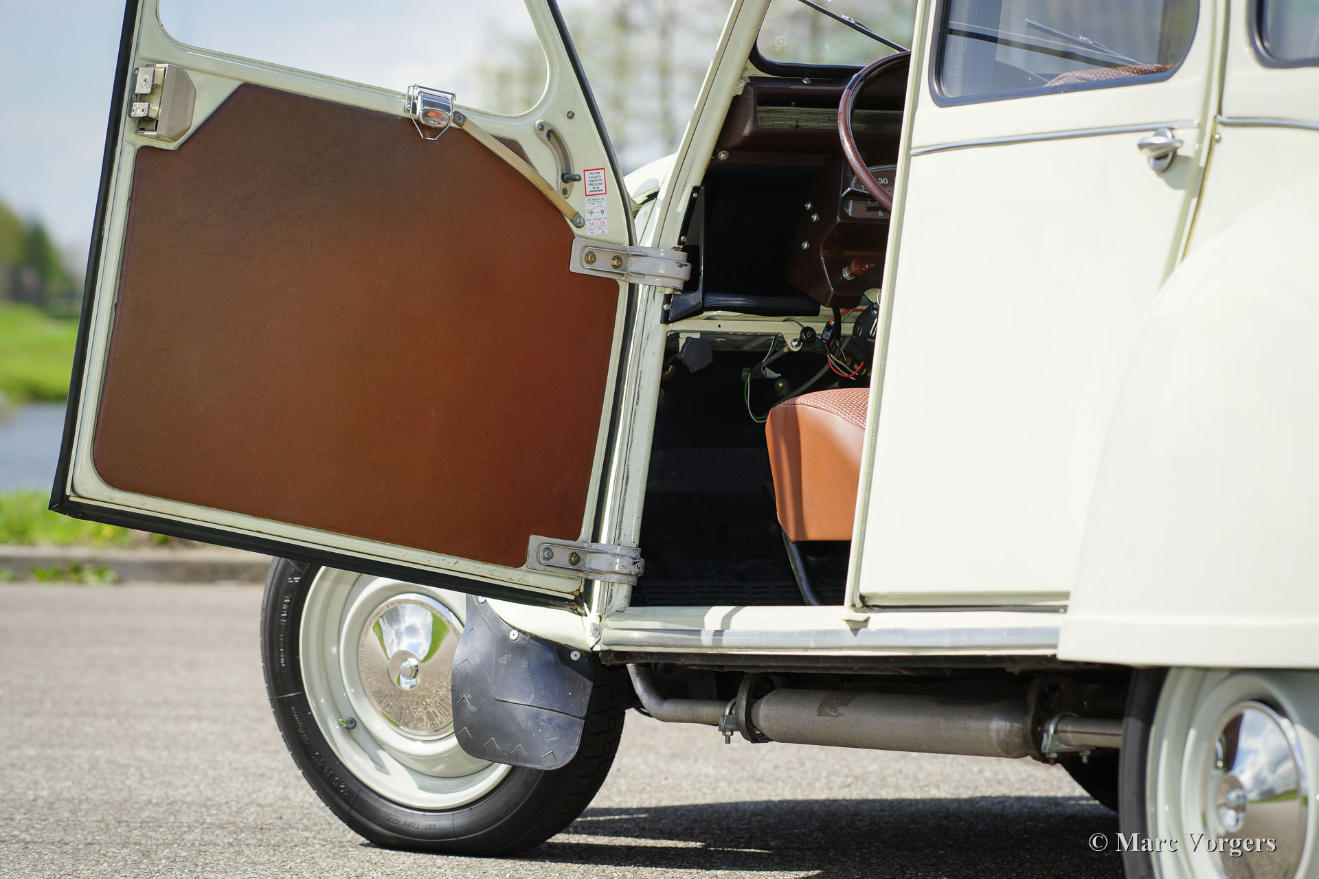 Citroën 2CV4, jaar 1974. Kleur ‘off-white’ met een lichtgroene gloed met een bruin vinyl interieur en zwart rubberen vloerbedekking. Deze geweldige 2CV4 ‘eend’ werd uitvoerig en zeer fraai gerestaureerd; de auto verkeert in excellente tot sublieme staat. De Citroën toont alle originele details en de auto is voorzien van de correcte Michelin banden. Het blijft een zeer bijzondere ervaring om ‘eend’ te rijden!