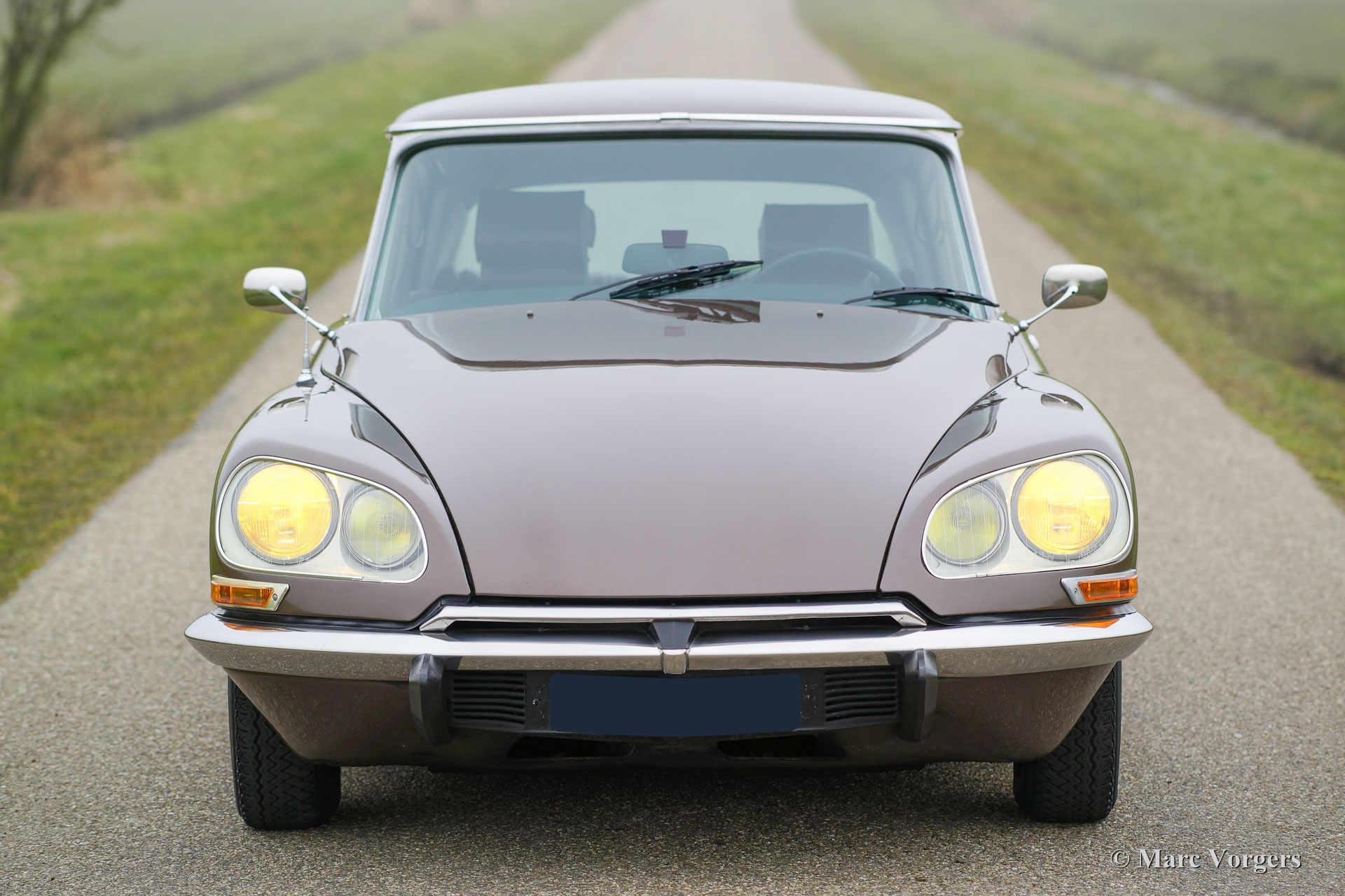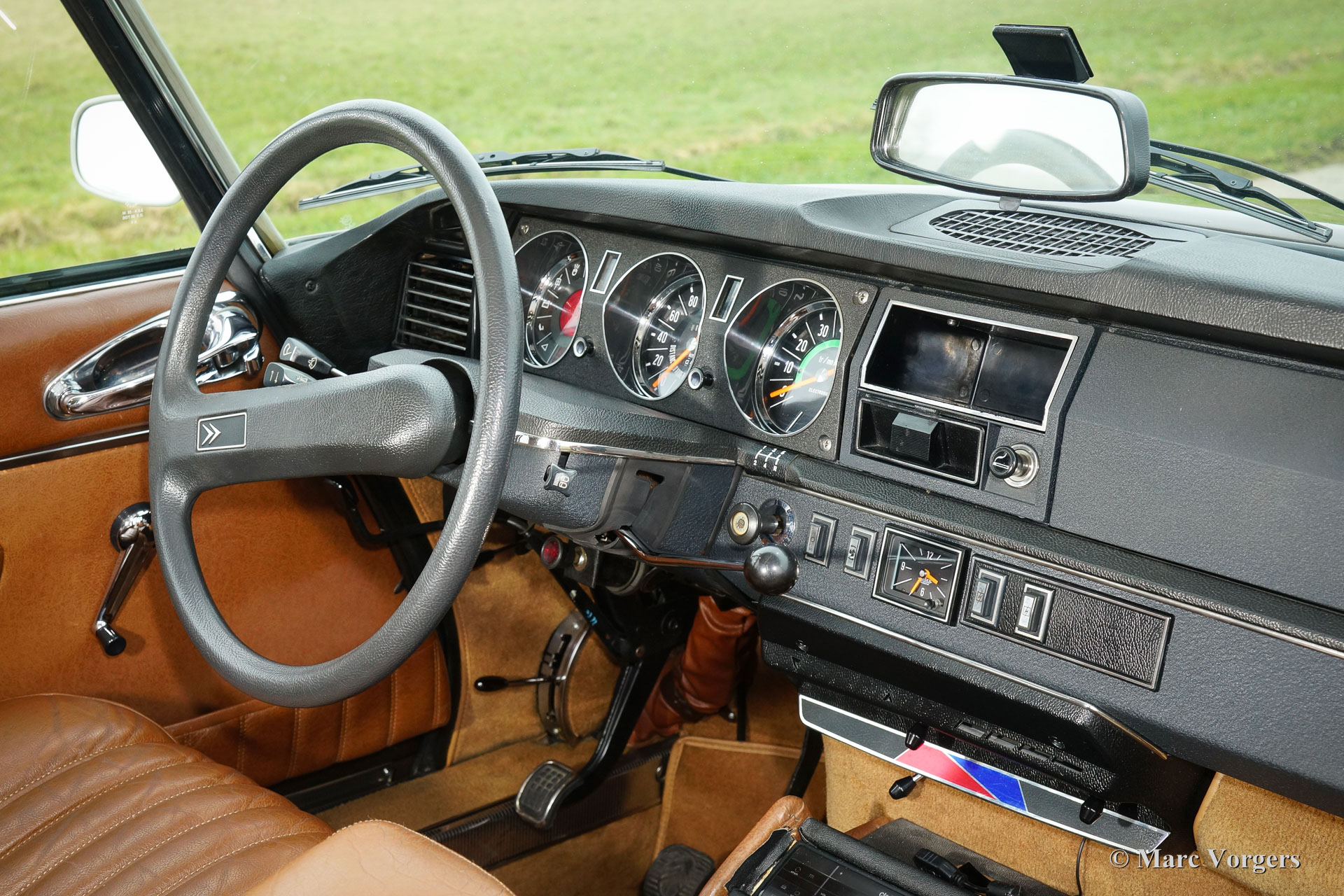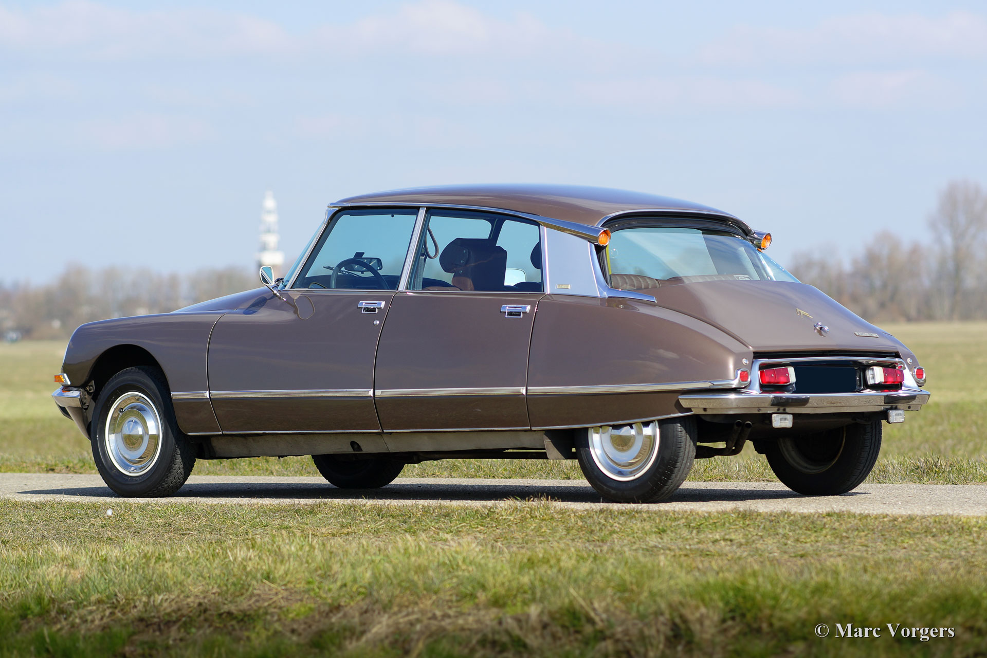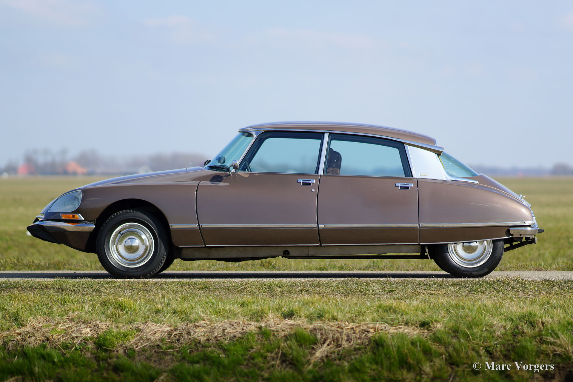 Citroën DS 23 M Pallas, jaar 1973. Kleur Brun Scarabé met een bruin vol-lederen interieur. Deze geweldige Citroën DS 23 verkeert in excellente originele staat! Er werd nooit aan de auto gelast, de auto werd in het verleden slechts voorzien van nieuwe lak. Vanaf nieuw heeft deze DS Pallas 116.000 kilometer gereden; deze automobiel rijdt werkelijk perfect! De auto is voorzien van een heerlijk schakelende vijfversnellingsbak en Michelin banden. De auto is compleet met het originele instructieboekje, origineel garantiebewijs en het originele boordgereedschap! Een prachtige en zeer luxueuze DS Pallas in een fraaie kleurcombinatie.