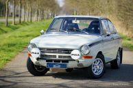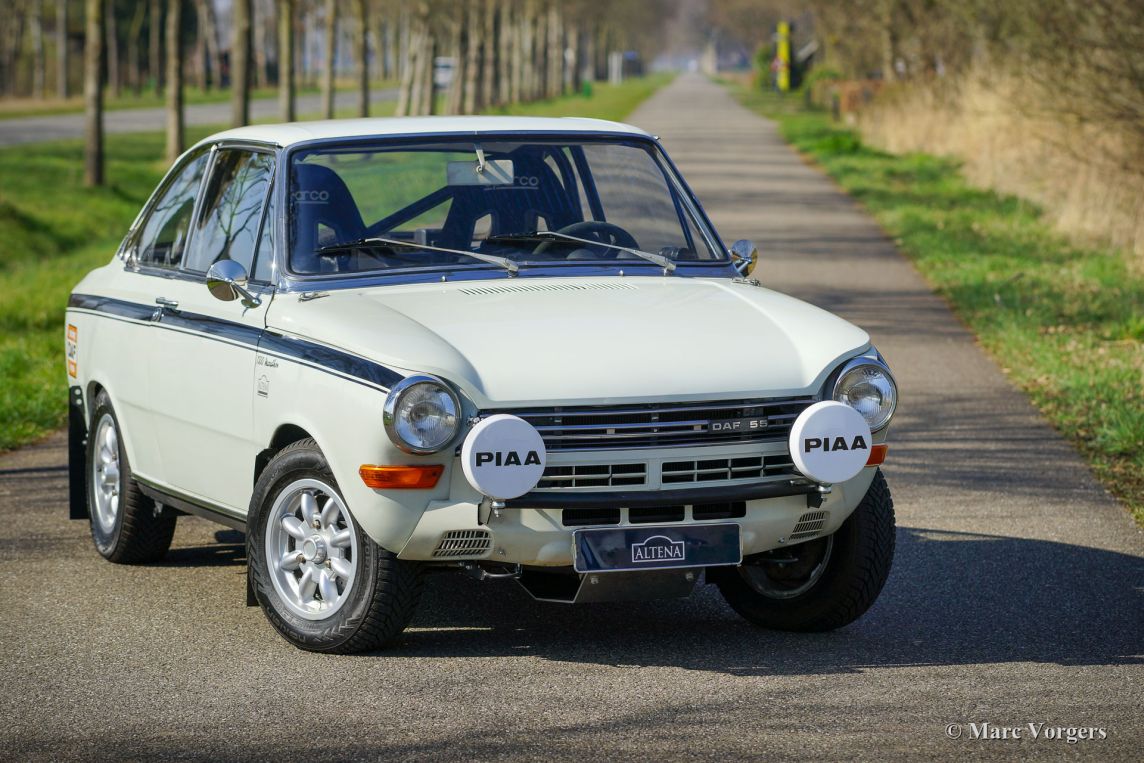 Daf 55T Coupé, bouwjaar 1970. Exterieurkleur wit met Daf Marathon ‘striping’, zwart/donkergrijs interieur met zwarte stoffen rally veiligheids/comfortstoelen. Deze prachtige Daf 55T Coupé is gedetailleerd in de geest van de legendarische Daf London-Sydney Marathon-auto's uit 1968 (de 1968 London-Sydney Marathon was de zwaarste en meest veeleisende autorally ooit georganiseerd en de stoere Daf-auto's voltooiden deze uitdaging van 16.694 kilometer over drie continenten). Deze Daf 55T Coupé is professioneel rally geprepareerd en getuned voor historische rally evenementen, kosten noch moeite zijn daarbij gespaard. Zie hieronder de uitgebreide preparatie/ modificatielijst. De meest recente werkzaamheden en service zijn uitgevoerd door Altena Classic Service, alle facturen zijn aanwezig. Deze fantastische DAF 55T Coupé rallyauto zou de krachtigste en snelste Daf rallyauto van Nederland moeten zijn! Deze unieke automobiel verkeert in een zeer goede (en top geprepareerde) staat en is klaar voor elk rally avontuur!