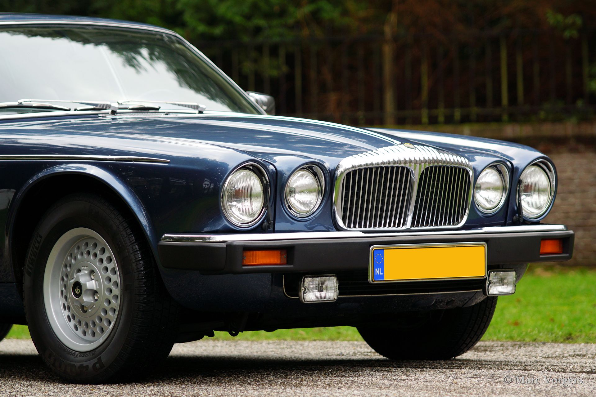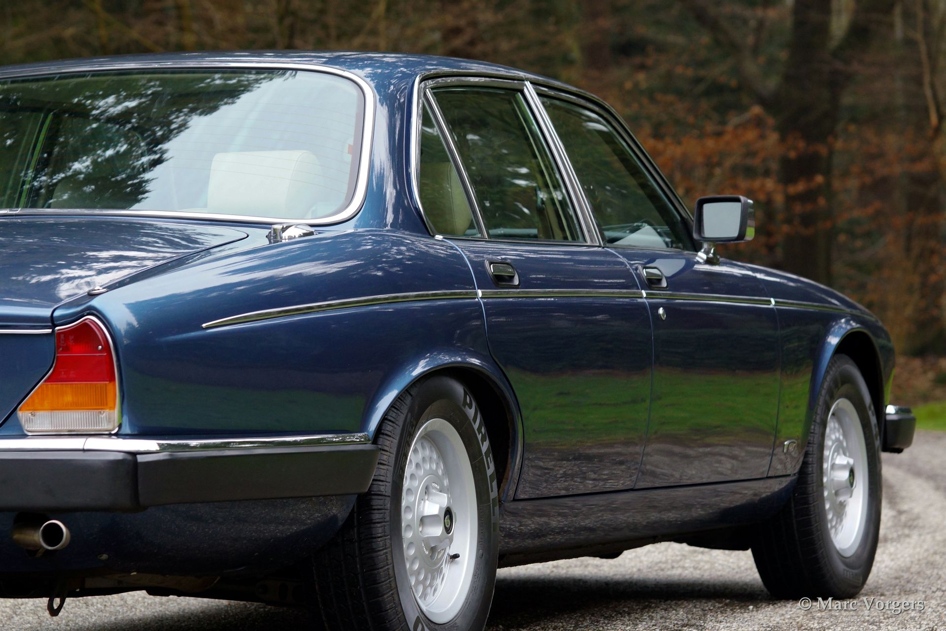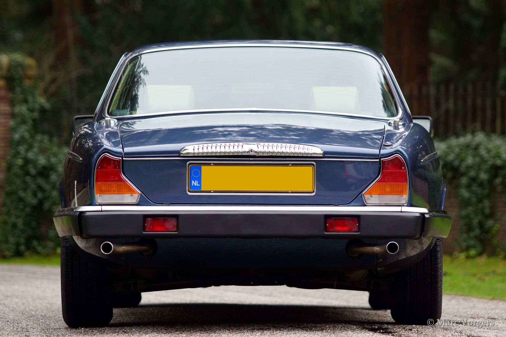 Daimler Double six (serie 3), bouwjaar 1981. Kleur blauw metallic met een beige lederen interieur. Deze Daimler is voorzien van alle luxe die men mag verwachten in dit segment zoals airconditioning, elektrisch bediende ramen, een elektrisch schuifdak, een voortreffelijke automatische versnellingsbak en de boterzachte V12 die de auto mer ferme hand voortstuwt.
