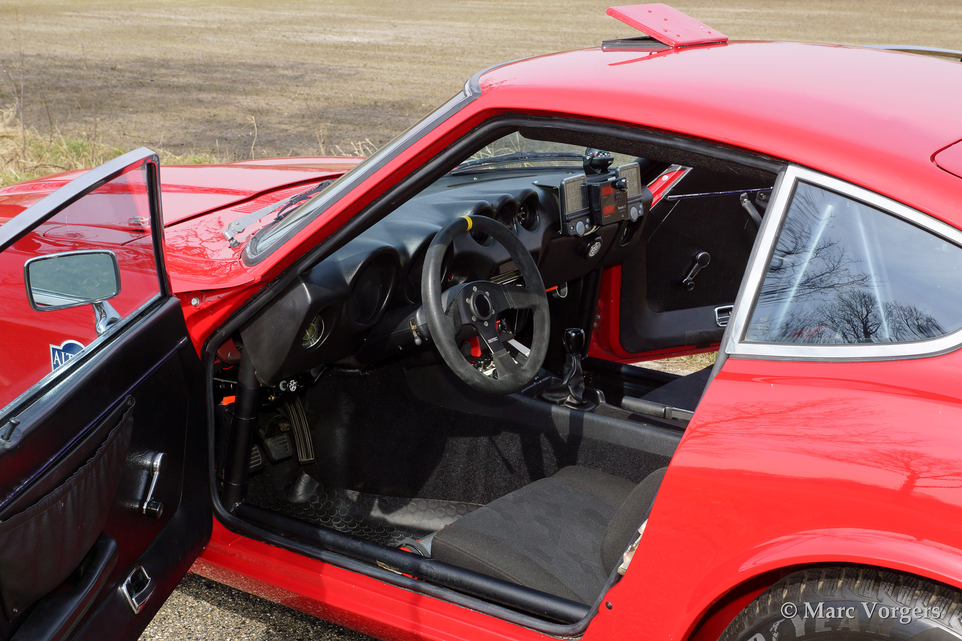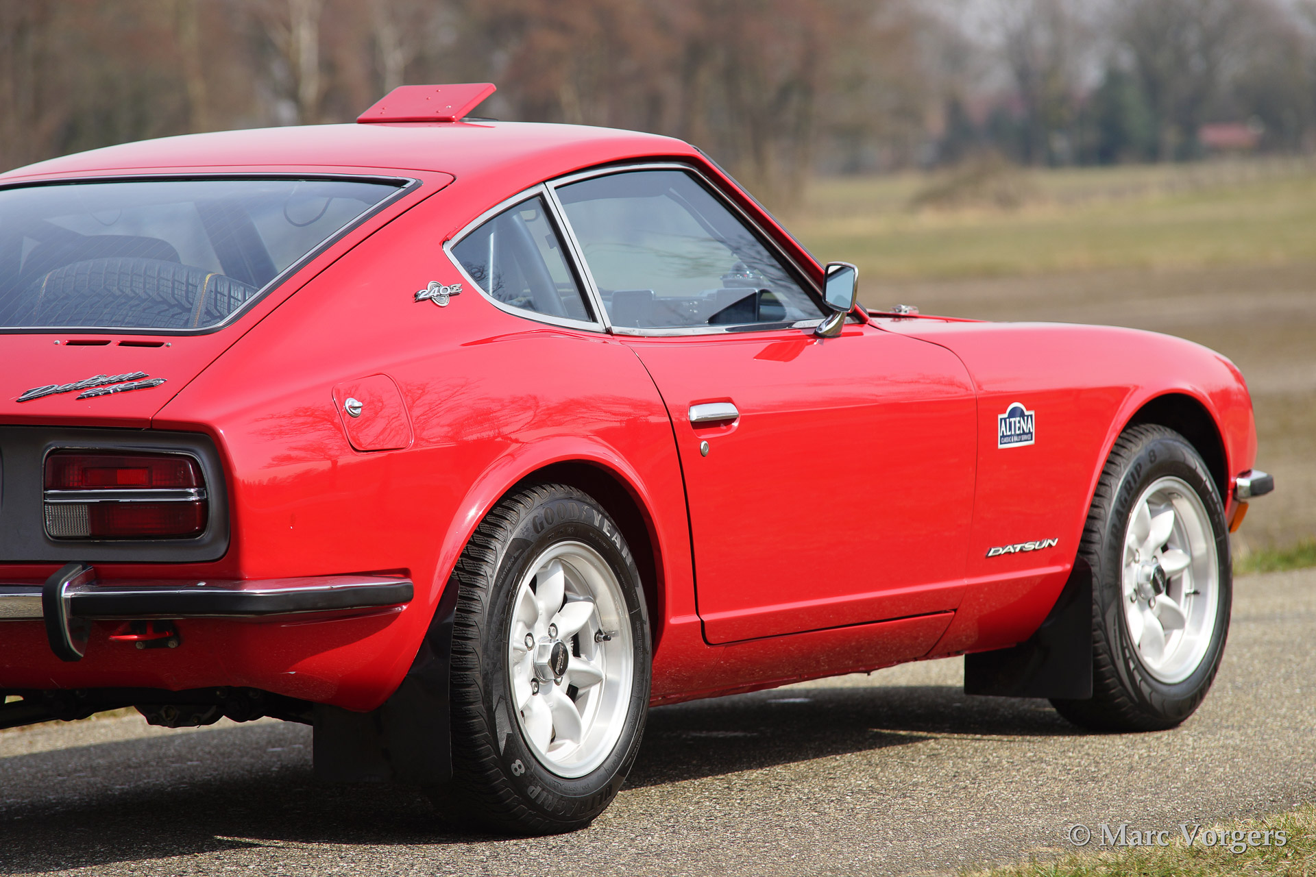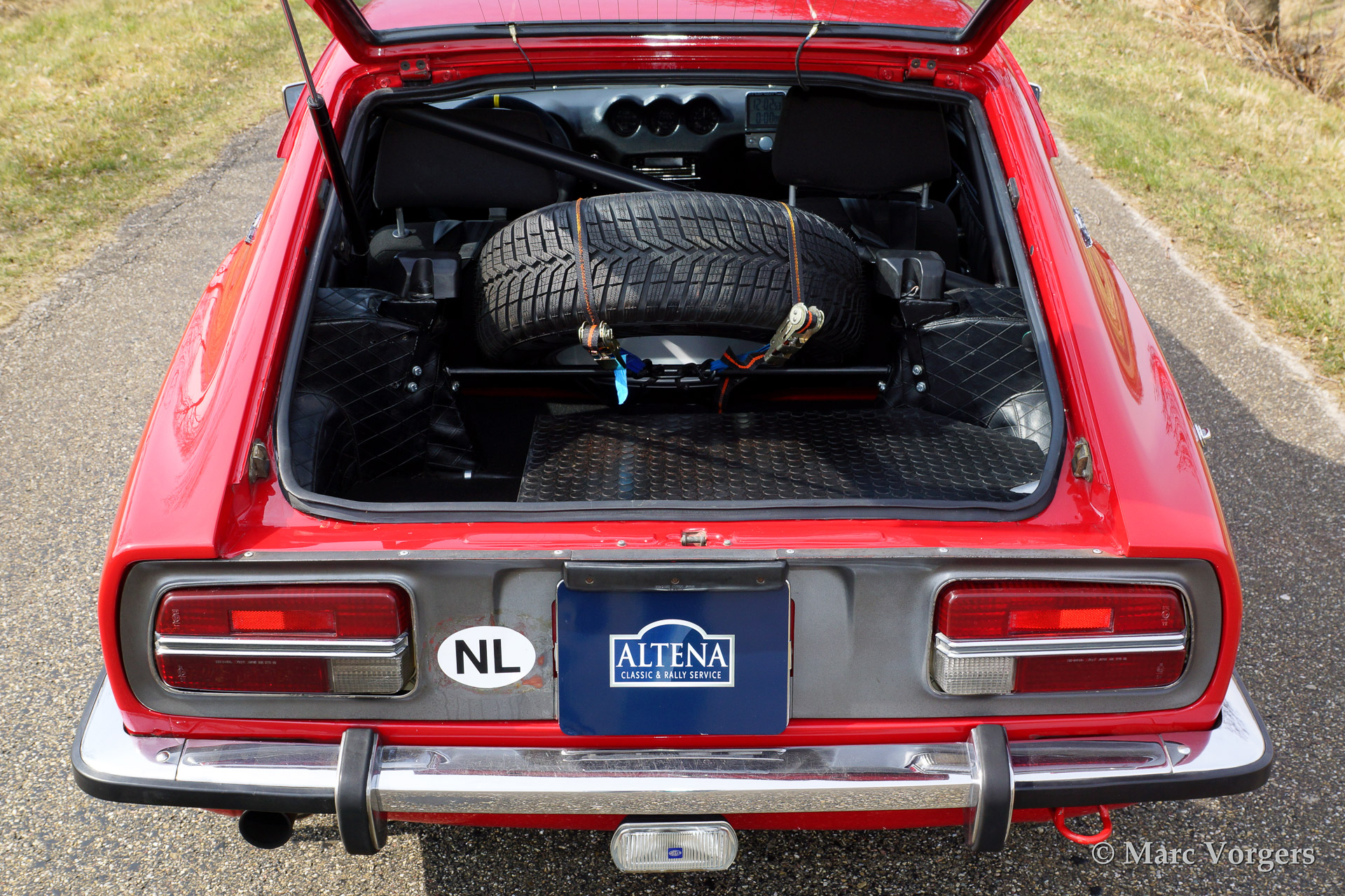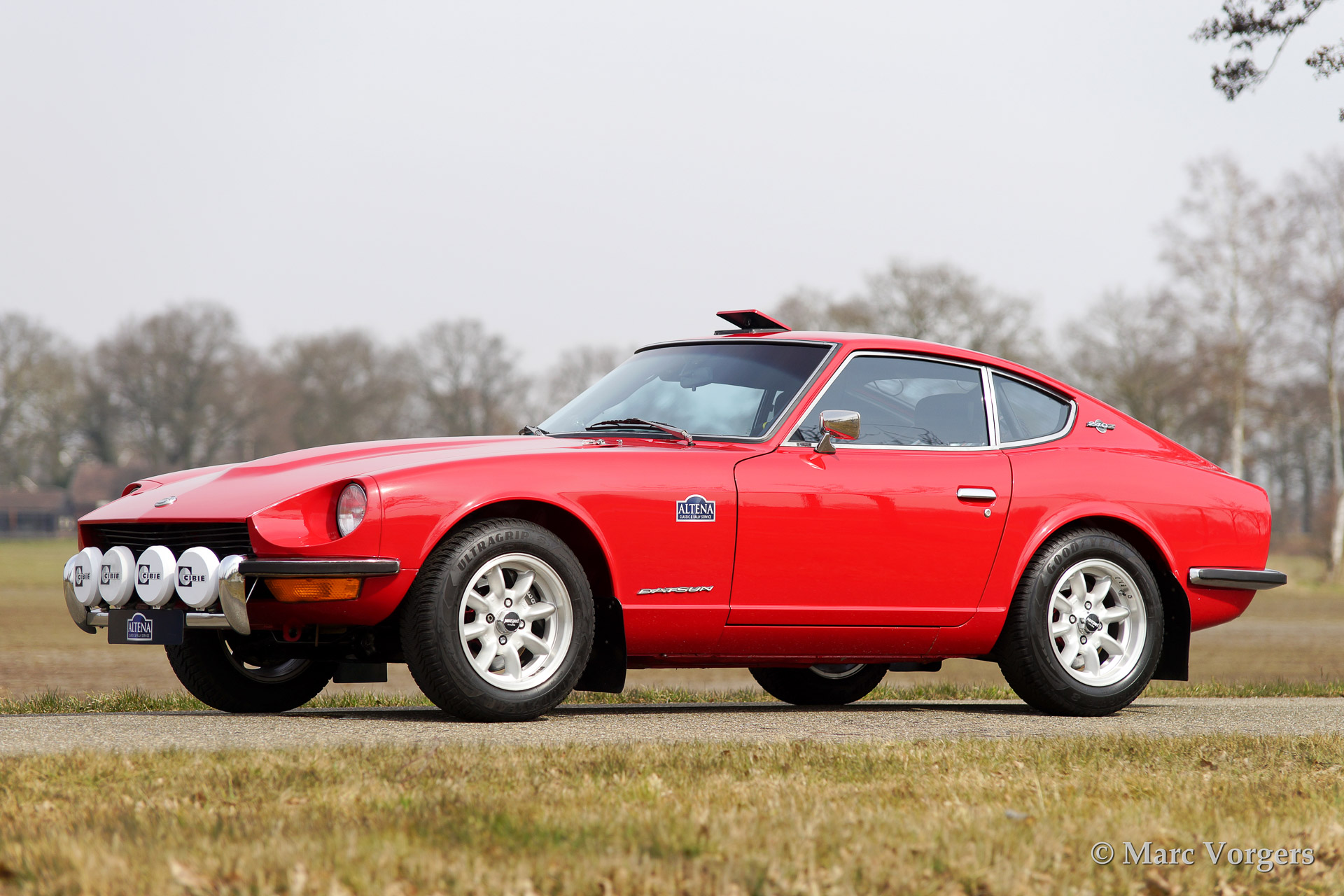 Datsun 240 Z rally auto, bouwjaar 1971. kleur rood met een zwart rally interieur. Deze geweldige Datsun 240 Z werd uitvoerig gerestaureerd en rally geprepareerd door Altena Classic en Rally Service in het jaar 2010. De auto werd volledig gestript en gerestaureerd vanaf het kale metaal. Korte beschrijving van het uitgevoerde werk: er werd een speciale rolkooi gemaakt en in de carrosserie gelast, de carrosserie werd gespoten en opgebouwd met de beste onderdelen di eer te vinden zijn op Datsun en rally gebied. Speciale handgemaakte Konis schokdempers, een speciaal gemaakte 100 liter aluminium benzinetank, speciaal gemaakte elektra en kabelboom, motor gereviseerd en opgevoerd naar 231 pk., 'limited slip' differentieel gemonteerd, 'close ratio' 5 versnellingsbak, speciaal uitlaatsysteem, elektrische stuurbekrachtiging, speciale comfortabele sportstoelen en veel meer. Altena Classic en Rally Service heeft meer dan 30 jaar rally ervaring en kennis in deze geweldige bolide verwerkt. Een indrukwekkend staaltje werk.