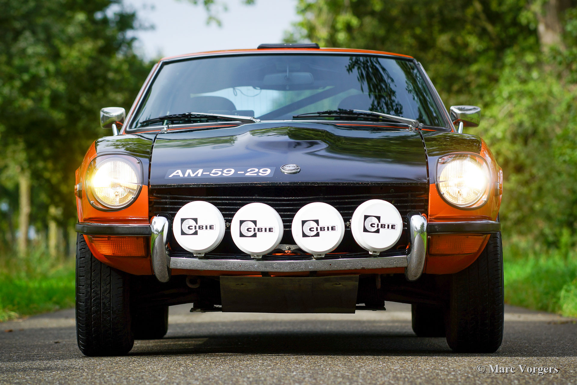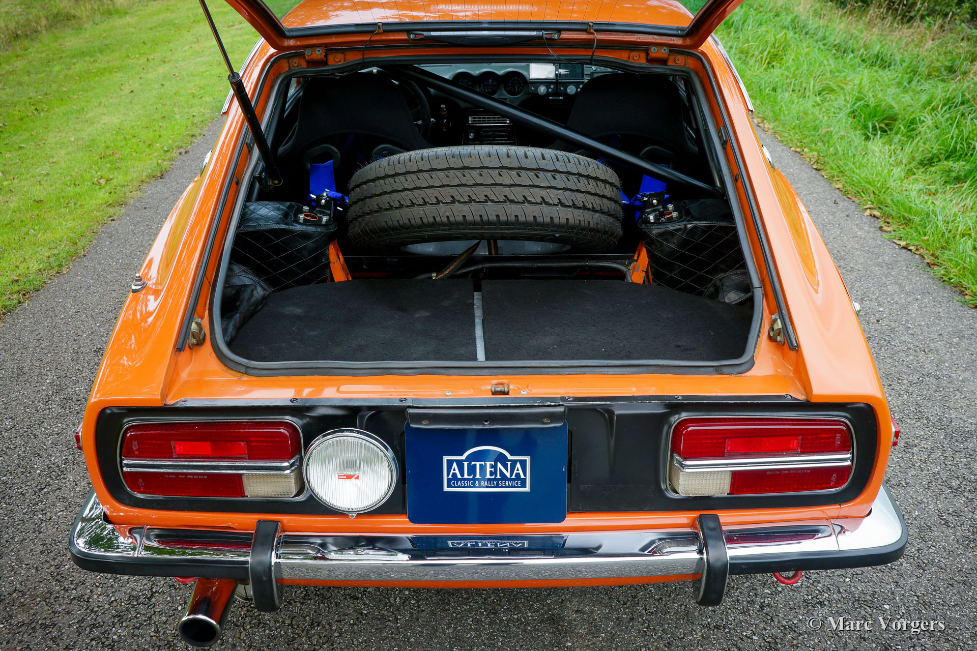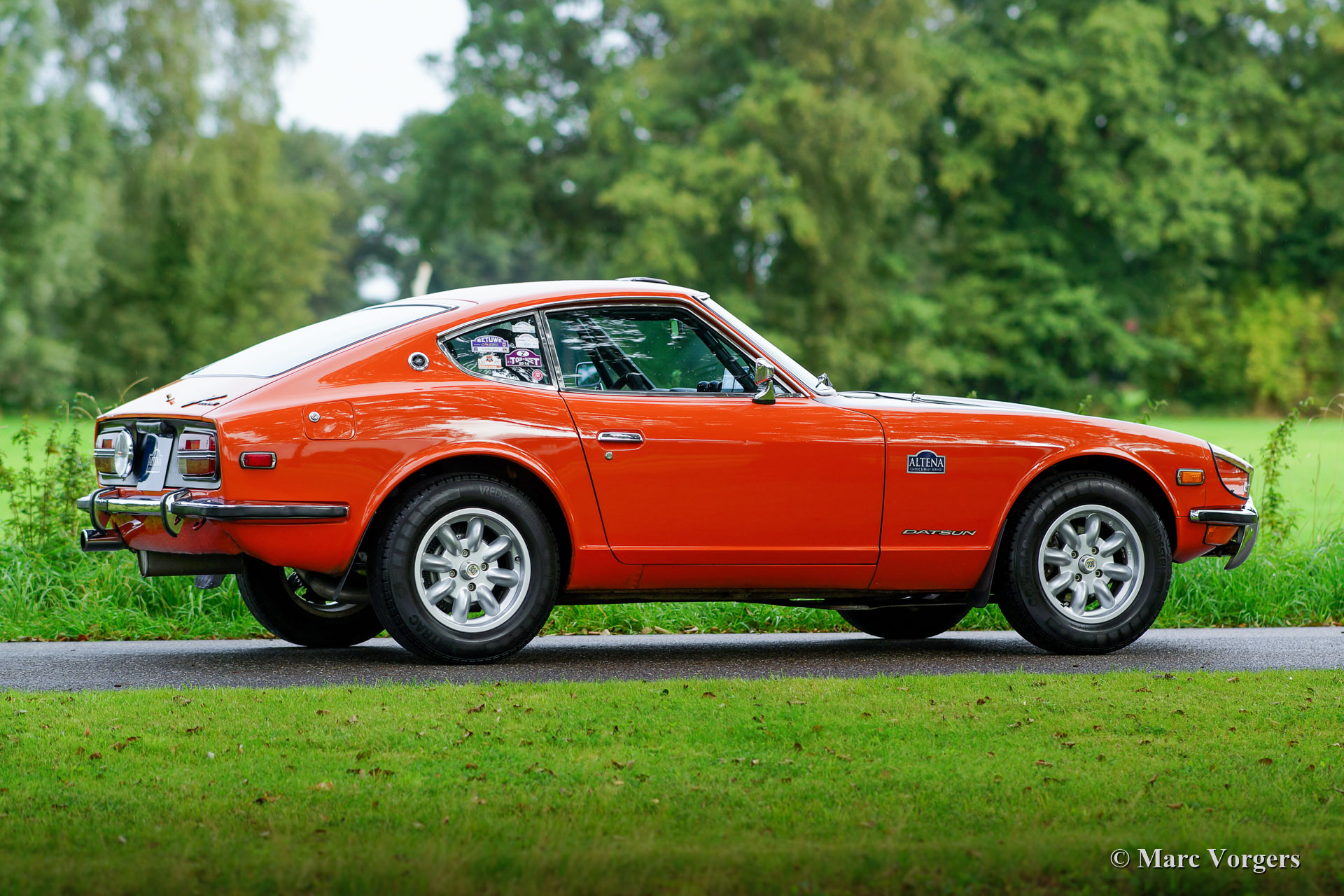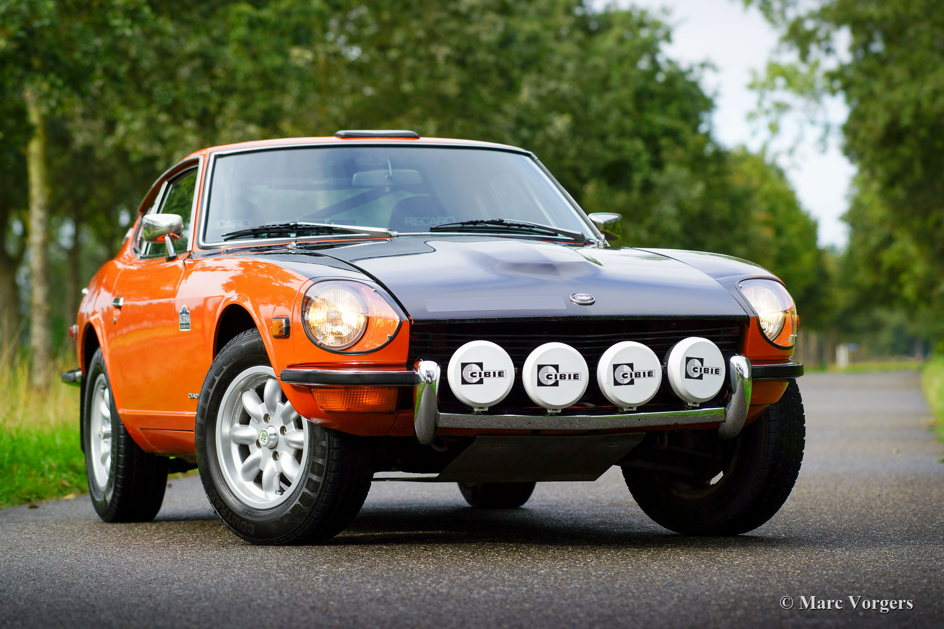 Datsun 240Z, jaar 1971. Chassisnummer HLS30-2108X, motornummer L28 01335X. Kleur oranje met een zwarte motorkap gecombineerd met een zwart kunstleren interieur. Deze fantastische Datsun 240Z werd nieuw verkocht in de VS. De auto werd in 2008 in Nederland geïmporteerd. In het jaar 2009 gaf de eigenaar Altena Classic Service opdracht voor de uitgebreide restauratie, revisie en rallyvoorbereiding van de 240Z. Alles werd gereviseerd en of vernieuwd. De auto werd tot in detail geperfectioneerd voor rallyrijden met een verhoogde ophanging, een speciale kabelboom, Koni-schokbrekers en -veren rondom, een versnellingsbak met 5 versnellingen, een grote aluminium benzinetank, een professionele rolbeugel, Recaro-stoelen, 4-punts Sparco veiligheidsharnassen, extra spot- en bochtverlichting aan de voorkant en andere speciale rallyaccessoires. Een fotoreportage en facturen van de restauratie en de rallyvoorbereiding zijn aanwezig. Nu, tien jaar na de restauratie, bevindt de Datsun 240Z zich nog in een zeer goede staat. De auto is stipt onderhouden en de auto rijdt en klinkt perfect! De rijervaring is opwindend en het moet een waar genoegen zijn om deel te nemen aan historische rallyevenementen met deze Datsun 240Z! De auto wordt compleet geleverd met een FIVA-identiteitskaart en kan worden geëxporteerd naar elk land over de hele wereld. Deze prachtige Datsun 240Z is klaar voor elk avontuur in handen van een nieuwe eigenaar!