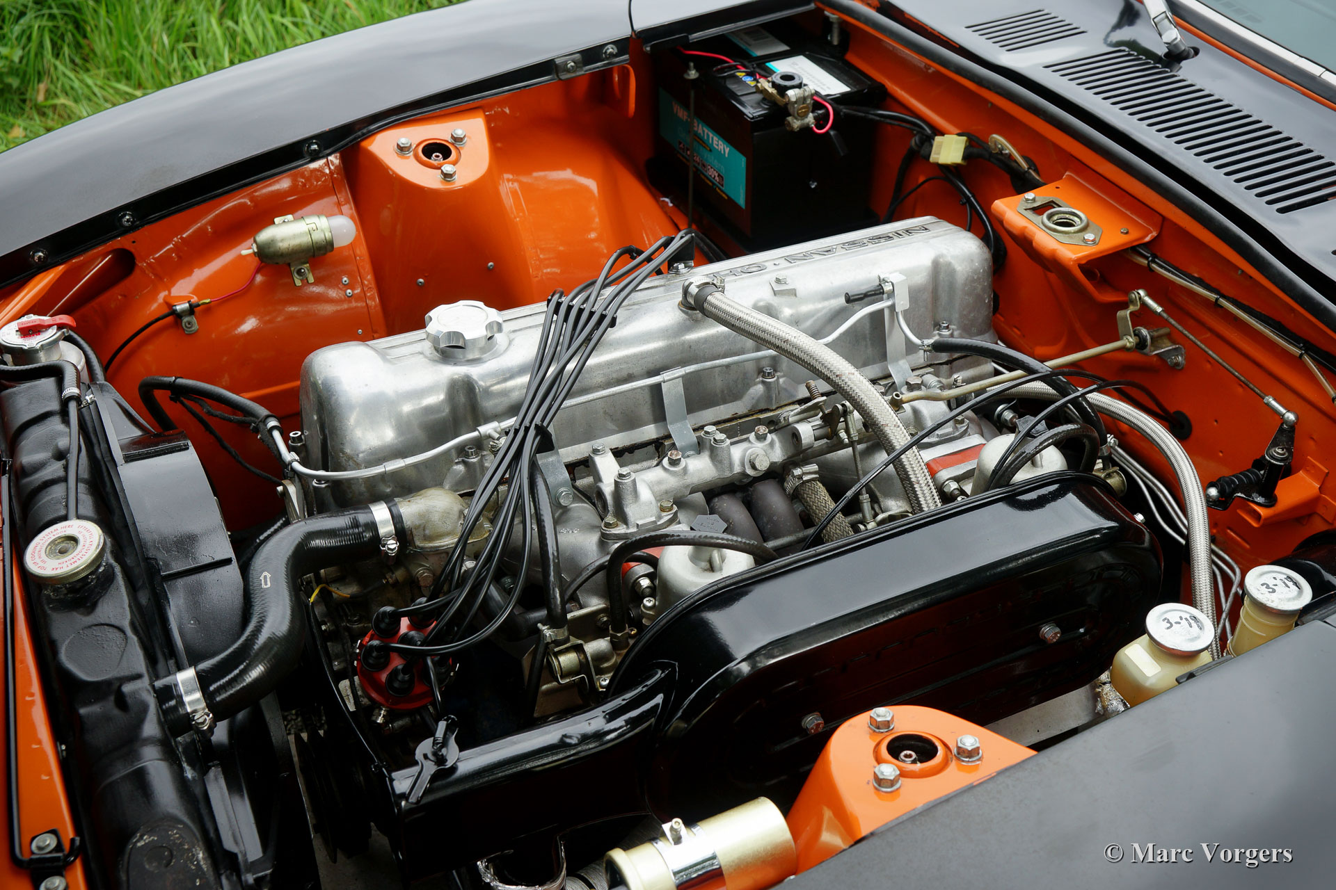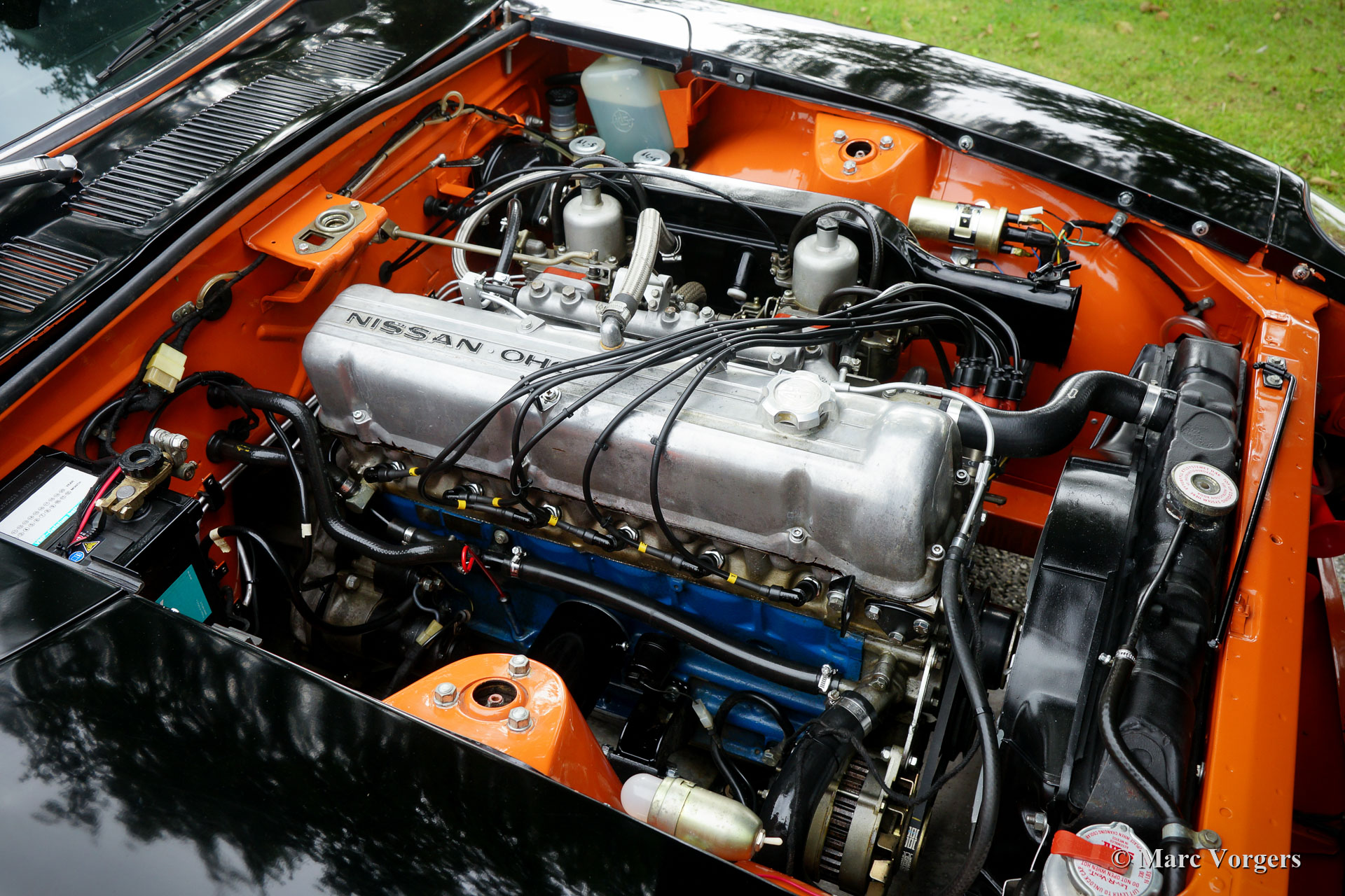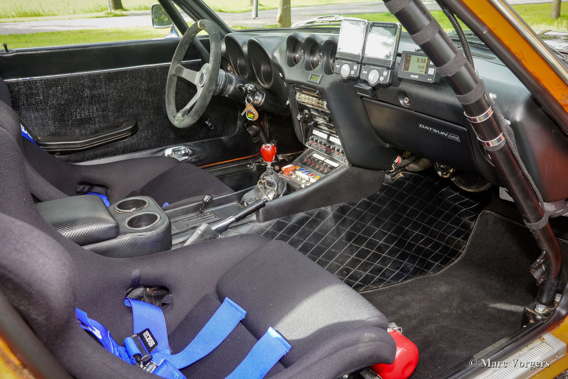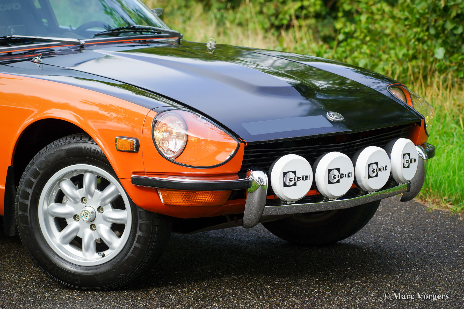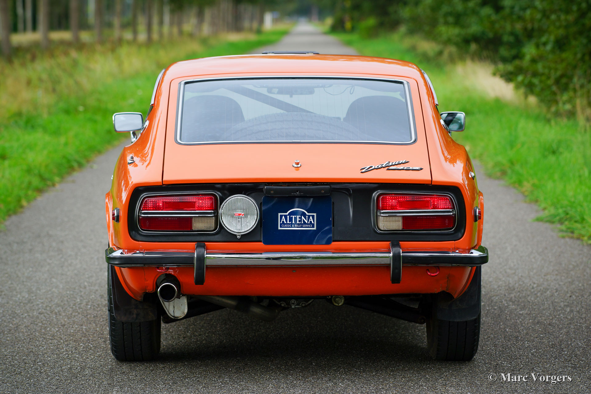 Datsun 240Z, jaar 1971. Chassisnummer HLS30-2108X, motornummer L28 01335X. Kleur oranje met een zwarte motorkap gecombineerd met een zwart kunstleren interieur. Deze fantastische Datsun 240Z werd nieuw verkocht in de VS. De auto werd in 2008 in Nederland geïmporteerd. In het jaar 2009 gaf de eigenaar Altena Classic Service opdracht voor de uitgebreide restauratie, revisie en rallyvoorbereiding van de 240Z. Alles werd gereviseerd en of vernieuwd. De auto werd tot in detail geperfectioneerd voor rallyrijden met een verhoogde ophanging, een speciale kabelboom, Koni-schokbrekers en -veren rondom, een versnellingsbak met 5 versnellingen, een grote aluminium benzinetank, een professionele rolbeugel, Recaro-stoelen, 4-punts Sparco veiligheidsharnassen, extra spot- en bochtverlichting aan de voorkant en andere speciale rallyaccessoires. Een fotoreportage en facturen van de restauratie en de rallyvoorbereiding zijn aanwezig. Nu, tien jaar na de restauratie, bevindt de Datsun 240Z zich nog in een zeer goede staat. De auto is stipt onderhouden en de auto rijdt en klinkt perfect! De rijervaring is opwindend en het moet een waar genoegen zijn om deel te nemen aan historische rallyevenementen met deze Datsun 240Z! De auto wordt compleet geleverd met een FIVA-identiteitskaart en kan worden geëxporteerd naar elk land over de hele wereld. Deze prachtige Datsun 240Z is klaar voor elk avontuur in handen van een nieuwe eigenaar!