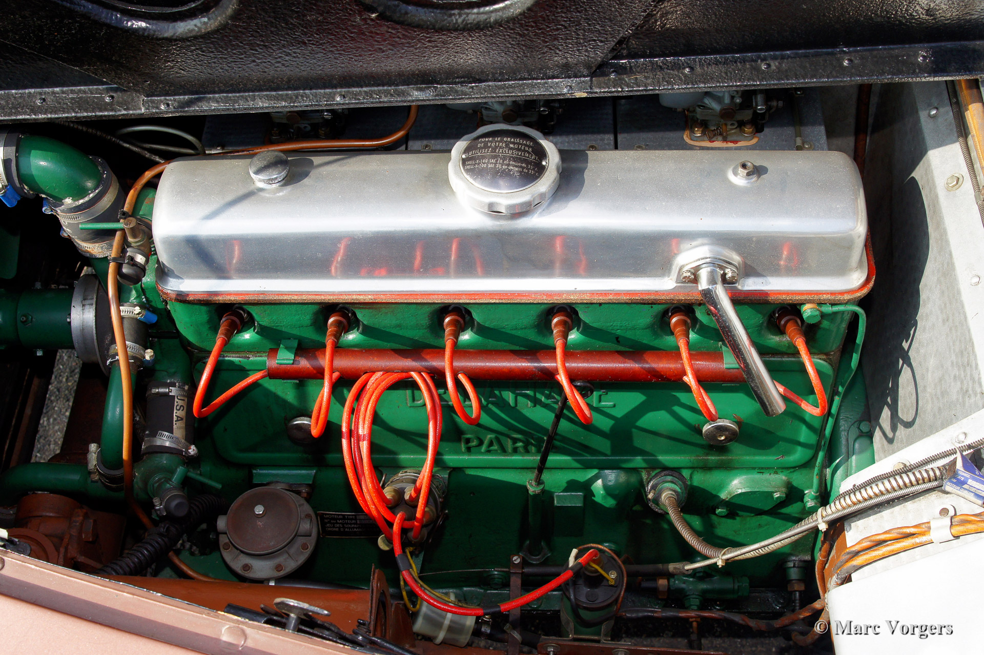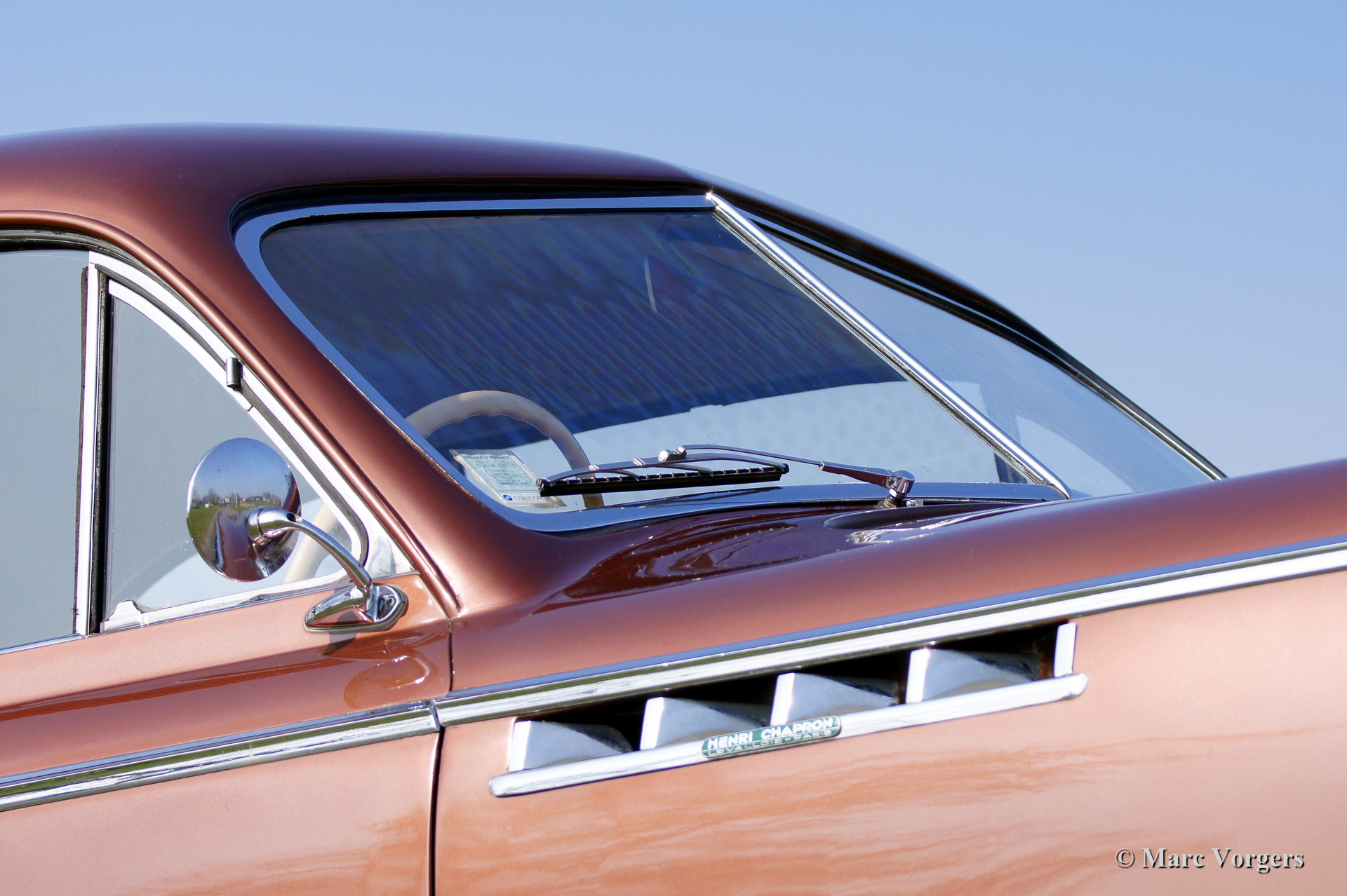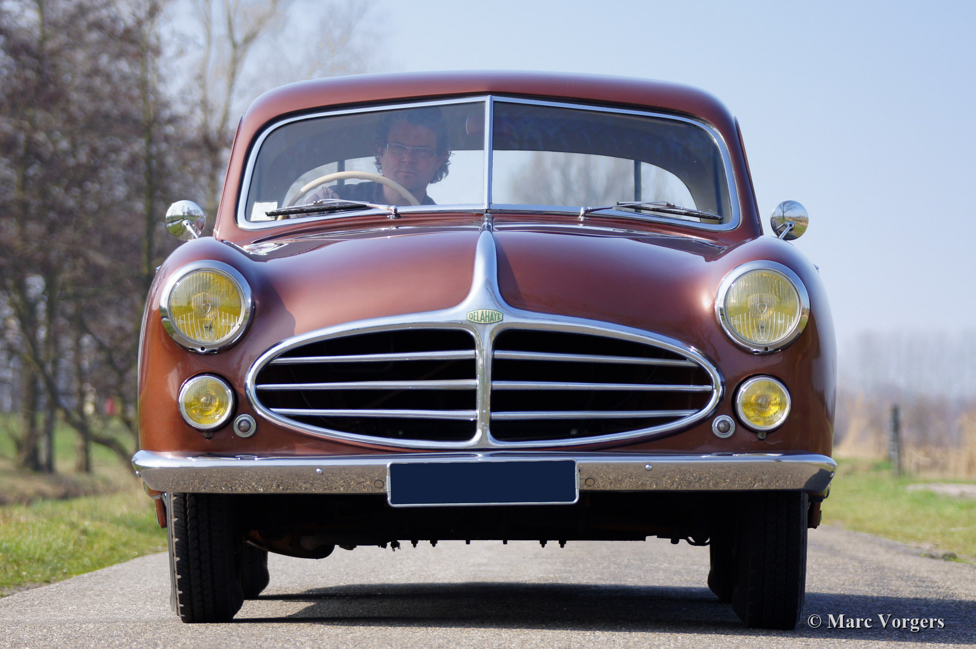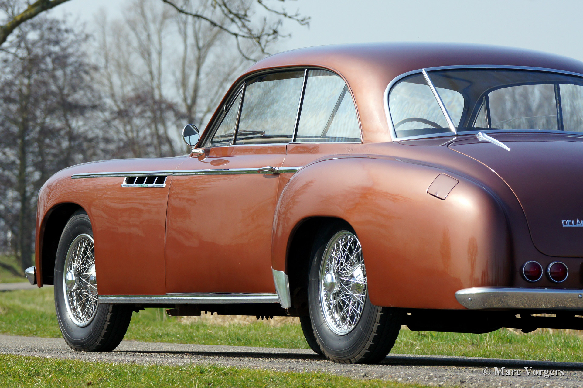 Delahaye 235 met coupe carrosserie door Chapron, bouwjaar 1951. Kleur brons metallic met een groen lederen interieur en bruin tapijt passend bij de carrosseriekleur. Deze zeer bijzondere en zeldzame 235 coupe werd nieuw verkocht in Frankrijk. Enkele decennia geleden werd de automobiel gerestaureerd. Zeldzaam, er werden slechts 84 exemplaren gebouwd.