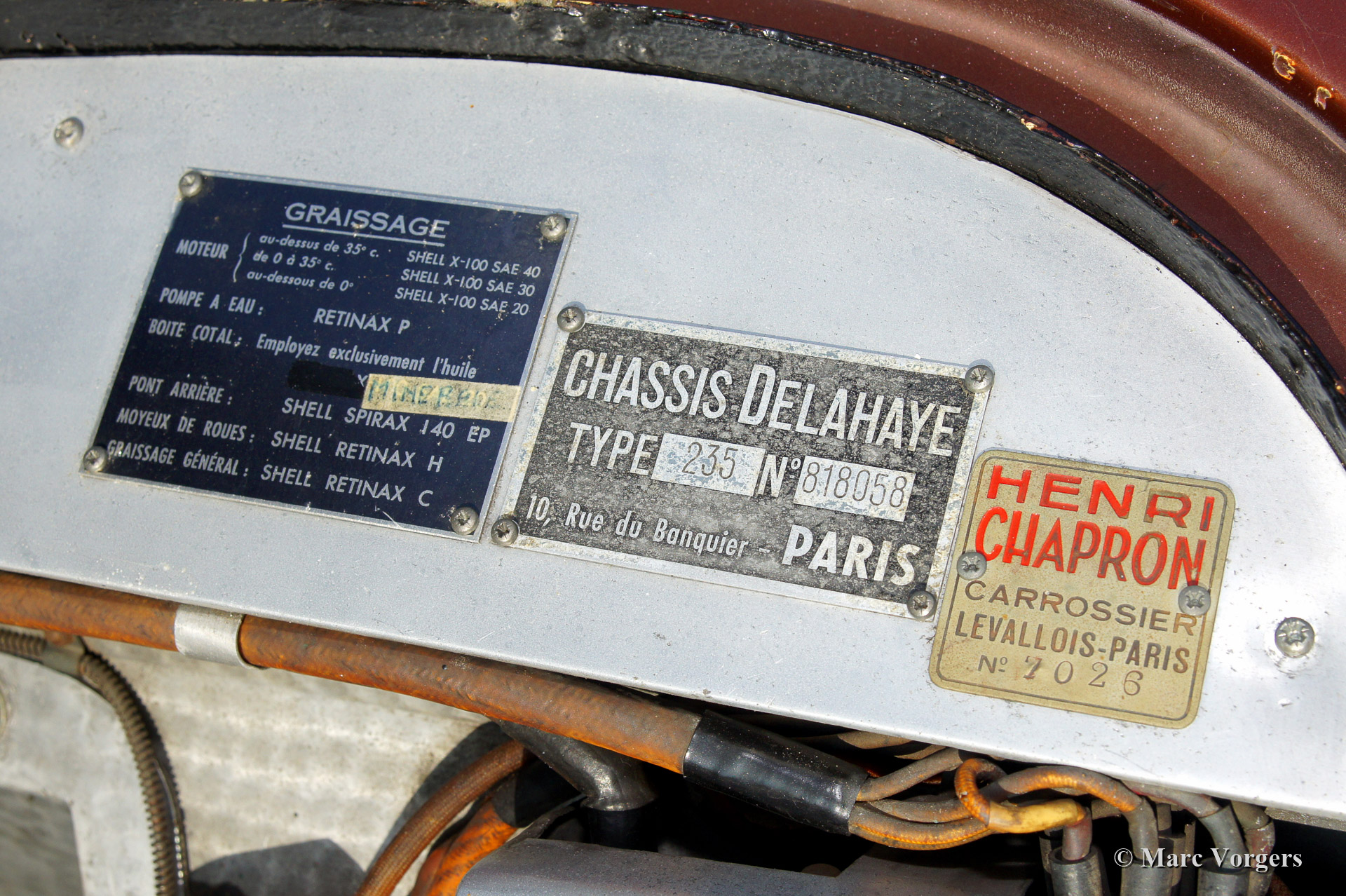 De Delahaye 235 werd voorgesteld op de Salon van Parijs in het jaar 1951. Dit als opvolger van de vooroorlogse type 135. Net als de vooroorlogse Delahaye automobielen werd de 235 verkocht als rollend chassis. De koper kon het chassis door een carrosseriebouwer naar eigen keuze van een carrosserie laten voorzien. Verschillende bekende, voornamelijk Franse, carrosseriebouwers zoals Chapron, Figoni et Falashi en Saoutchik voorzagen 235 chassis van een prachtige carrosserie. De meest voorkomende 235 carrosserie was de coupe van Henri Chapron. Deze carrosserie toonde een moderne vormgeving met volledig in de vorm geïntegreerde voorspatborden. De uitstulpende achterspatborden gaven een hint naar het rijke verleden. Het interieur is luxueus maar toch ingetogen met een heel fraai dashboard. De Delahaye 235 werd aangedreven door de 3.6 liter zes-in-lijn die voor de oorlog in de Delahaye 135MS werd toegepast. Deze motor was voorzien van drie Solex valstroom carburateurs. De motor was gekoppeld aan een Cotal 'preselector' vierversnellingsbak. De Delahaye 235 was een poging van de fabriek om de grandeur van de vooroorlogse 'Grand Routiers' weer te laten herleven. Dit lukte niet in de moeilijke naoorlogse jaren. In 1954 werd het merk overgenomen door Hotchkiss. Niet veel later dat zelfde jaar werd de productie van de Delahaye 235 gestaakt. Tussen 1951 en 1954 werden slechts 84 chassis van dit type gebouwd.