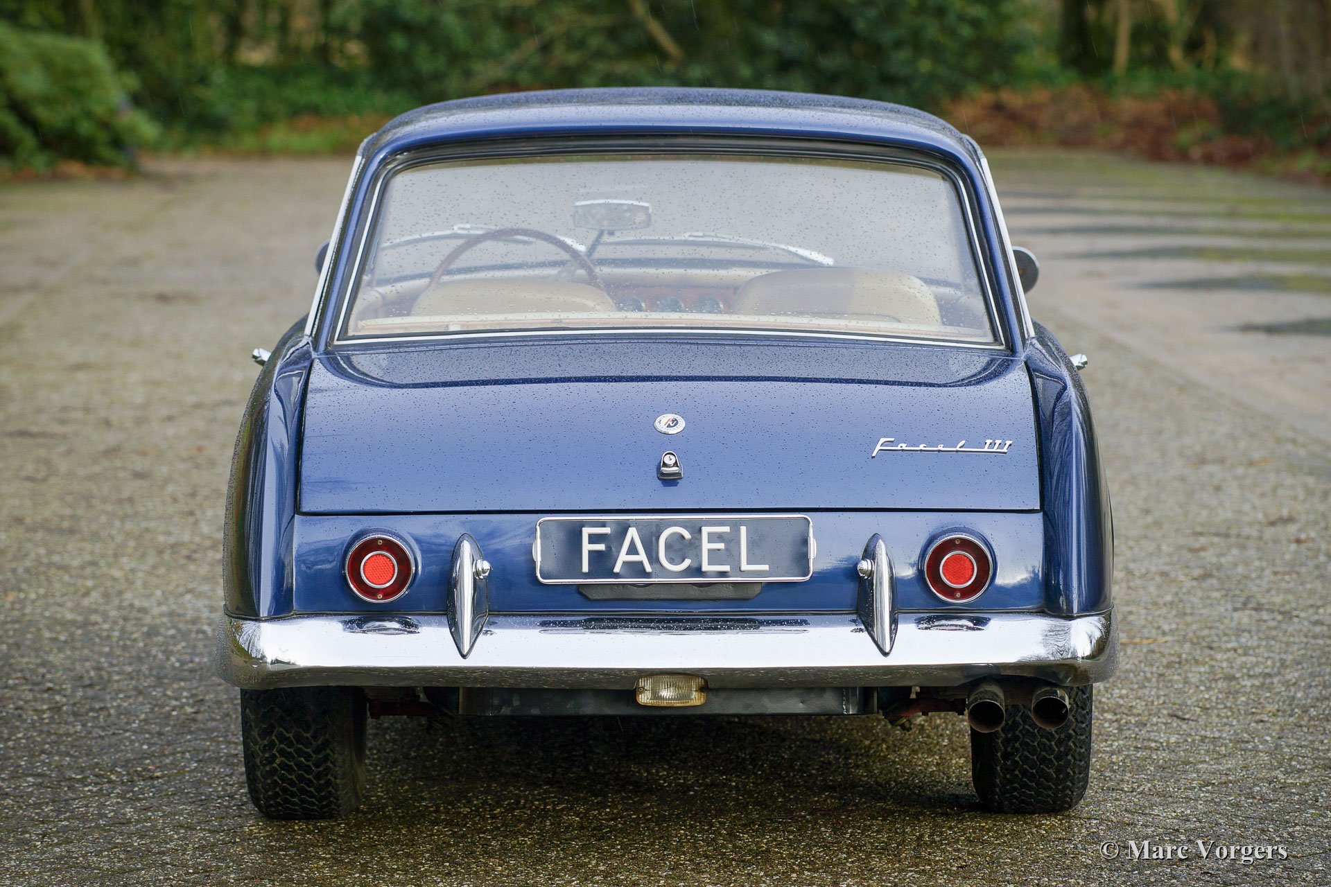 Facel Vega Facel III, bouwjaar 1964. Kleur blauw metallic gecombineerd met een beige vinyl interieur, lichtbeige tapijt en beige hemelbekleding. Deze prachtige Facel III werd nieuw verkocht in Zwitserland waar de auto voor het eerst werd geregistreerd in 1965. Begin jaren 80 werd de auto verkocht naar Nederland waar de Facel gedurende 40 jaar één eigenaar heeft gekend! Na aanschaf is er nog geen 2000 kilometer met de Facel III gereden voordat de auto voor tientallen jaren in een garage werd gestald. Momenteel staat de teller op 28921 kilometer, op het Avia olieverversingslabel uit juni 1981 staat dat de laatste olieverversing voor de verkoop naar Nederland bij 27021 kilometer heeft plaatsgevonden... Vandaag 1900 kilometer geleden... De eigenaar nam in de zomer van 2021 contact met ons op en onlangs hebben we deze ‘garagevondst’ aangekocht. De carrosserie van deze Facel III is tussen 1977 en 1979 gerestaureerd volgens de data op de achterkant van oude restauratiefoto's. Na ruim 40 jaar vertoont de lak sporen van ouderdom en gebruik. We hebben het interieur schoongemaakt en de hemelbekleding vernieuwd; het interieur is nog in een fantastische staat! We hebben de auto weer tot leven gewekt met een revisie van de carburateurs, vernieuwing van de benzinetank, nieuwe rubberen slangen, luchtfilters, bougies, oliën en vloeistoffen. Deze Facel Vega Facel III verkeert in een goede en zeer originele conditie met alle originele details. De auto is uitgerust met twee op de voorspatborden gemonteerde achteruitkijkspiegels in ‘bullet’ stijl en een klassieke autoradio met cassette. Een zeldzame ‘garagevondst’ om ‘als is’ te rijden of om volledig opnieuw te worden gespoten.