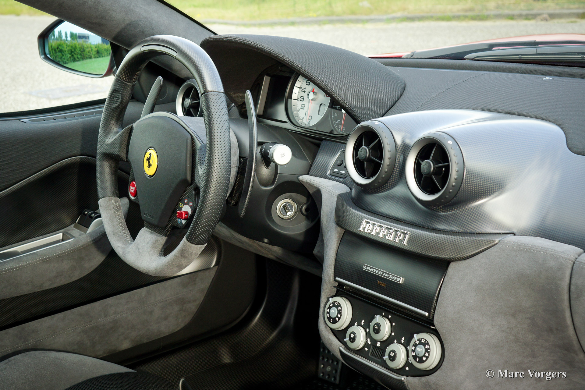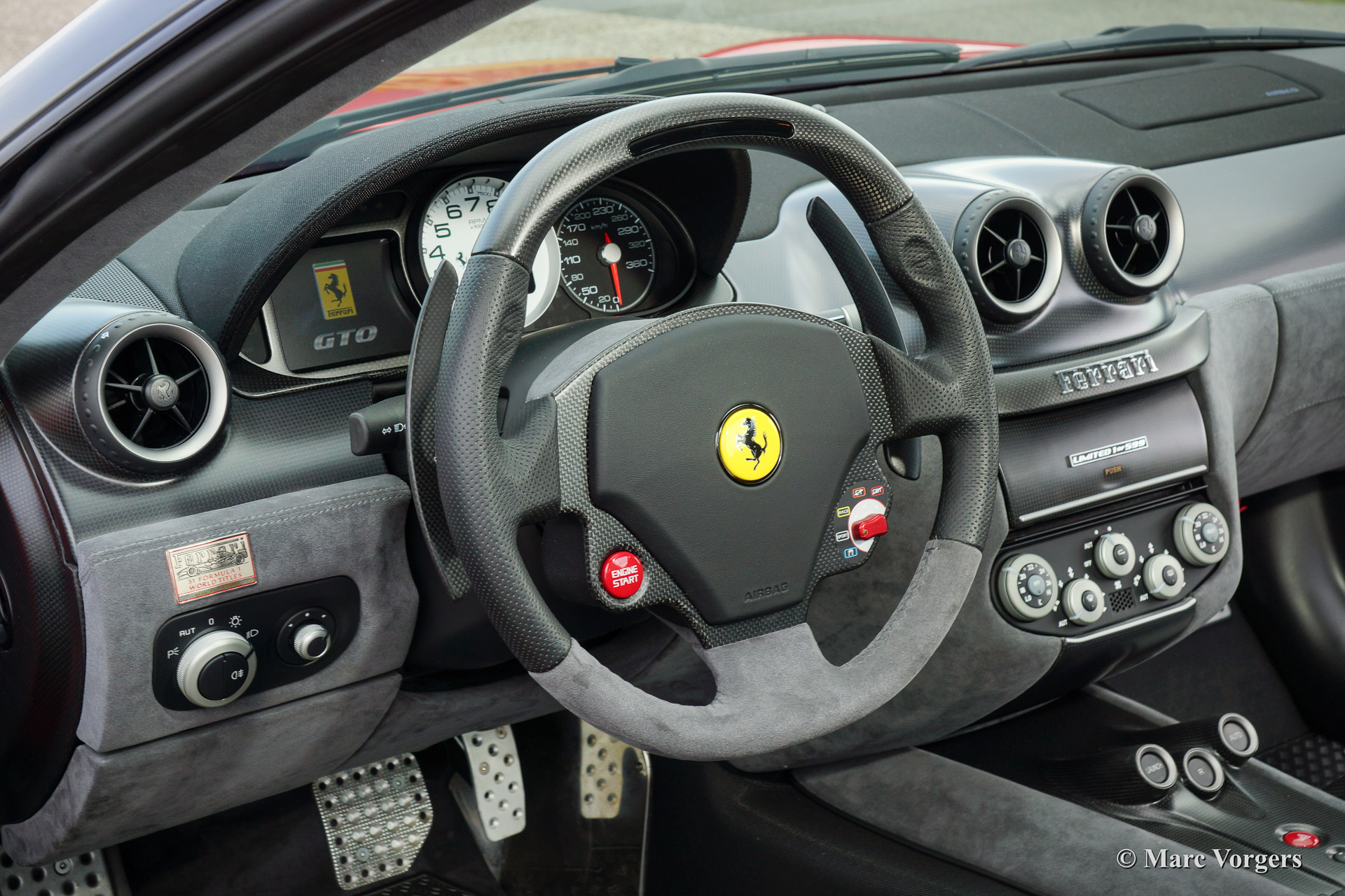 Ferrari 599 GTO, bouwjaar 2011. Chassisnummer: EFF7ORDB000180XXX. Kleur Rosso Corsa met een antracietkleurig alcantara interieur. Deze magnifieke Ferrari 599 GTO werd nieuw geleverd door Ferrari dealer Eberlein te Kassel, Duitsland. Het onderhoud werd uitgevoerd door Ferrari dealer Riller & Schnauck in Duitsland. Deze zeer exclusieve Ferrari is afkomstig van de eerste eigenaar, vanaf nieuw heeft de auto slechts 1490 kilometer gereden. Deze 599 GTO verkeert dan ook in absolute nieuwstaat! De Ferrari 599 GTO werd gebouwd in een gelimiteerde oplage van 599 stuks. De auto was nieuw enkel te koop voor vast Ferrari klanten. Deze Ferrari 599 GTO beschikt over de meest essentiële fabrieksopties. Deze zeldzame 599 GTO met extreem lage kilometerstand, gedocumenteerde onderhoudshistorie, en afkomstig van de eerste eigenaar is een verzamelaars-item en een uitstekende investering.