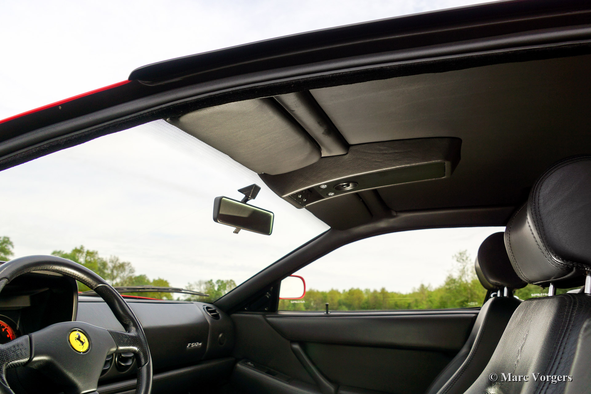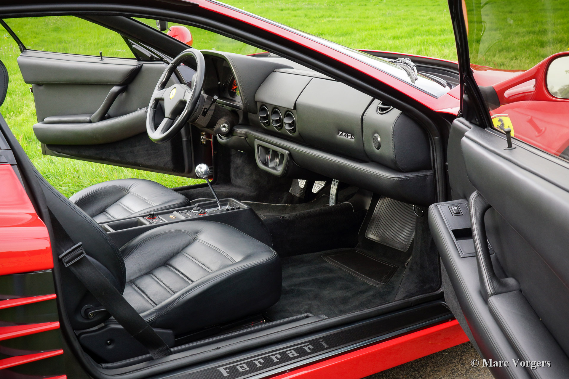 Ferrari F 512 M, bouwjaar 1996. Kleur rood (Rosso Corsa) met een zwart lederen interieur en zwart tapijt. De Ferrari F 512 M is de derde en laatste uitvoering van de legendarische ‘Testarossa’. De F 512 M is herkenbaar aan de koplampen onder glas en de subtiel gewijzigde achterzijde.