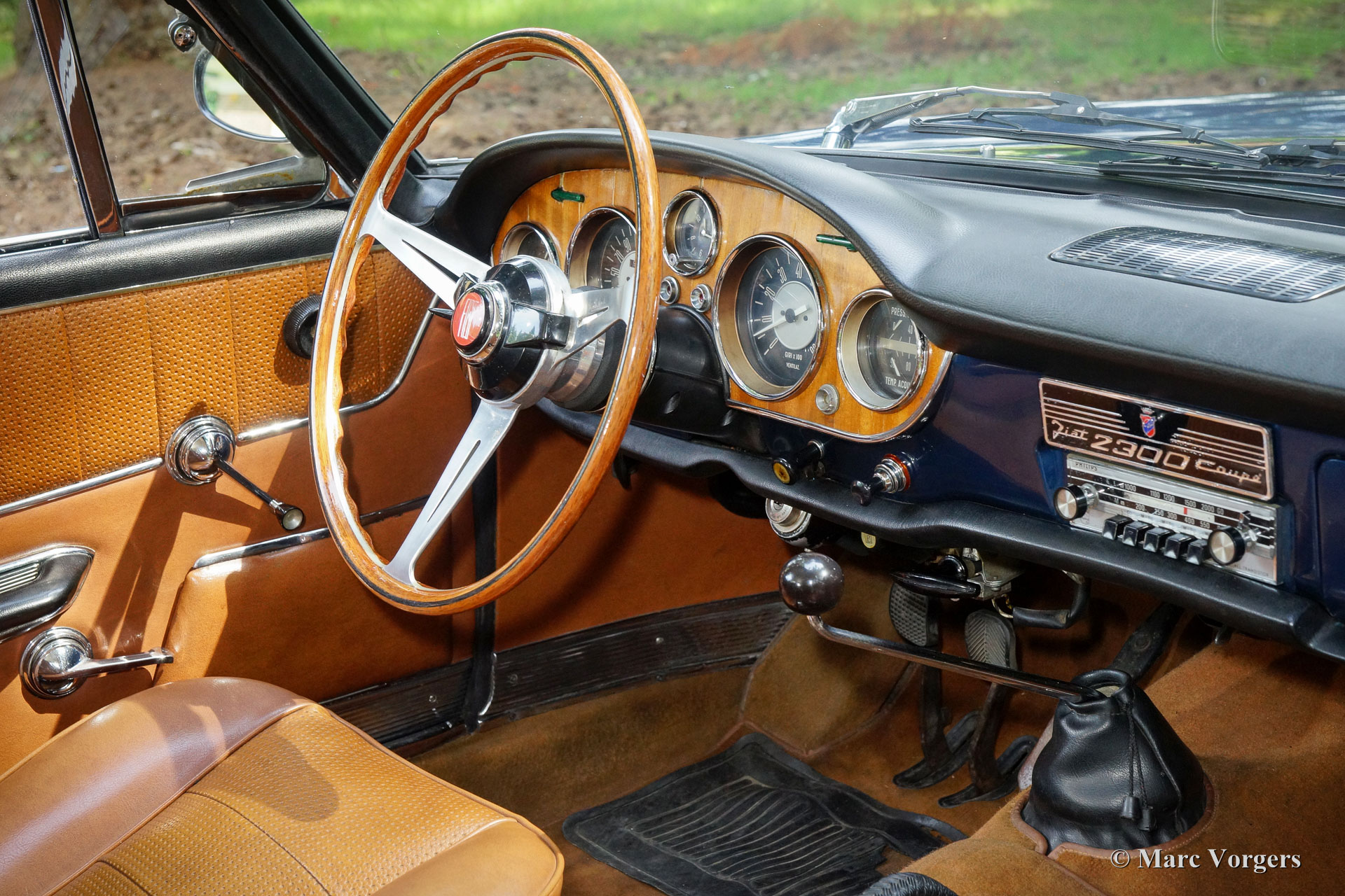 Fiat 2300 S coupe, jaar 1966. Kleur blauw metallic met een cognac-bruin leren interieur en bijpassend tapijt. Deze fantastische Fiat 2300 S coupe (uit de 2e serie) werd nieuw verkocht in Italie, in het jaar 2013 is de auto naar Nederland geïmporteerd vanuit Manzano, Italië. Deze Fiat 2300 S verkeert in zeer goede originele en roestvrije staat! De auto rijdt uitstekend en het zescilinder motorgeluid is fantastisch! Tien jaar geleden is de auto voorzien van prachtige nieuwe lak in de originele kleur. Deze Fiat is zeer goed onderhouden. In de afgelopen jaren uitgevoerd: nieuwe rubbers in de voorwielophanging, kleppen gesteld, nieuwe remcilinders en schijfremmen achter gemonteerd, nieuwe Vredestein banden, spanningsregelaar vervangen etc. Deze Fiat 2300 S heeft zich een zeer betrouwbare reisgezel getoond; de auto is in de de afgelopen vier jaar probleemloos naar het Fiat 2300 ‘treffen’ gereden in Zuid-Duitsland. Deze prachtige Fiat 2300 S coupe is compleet met veel documentatie.