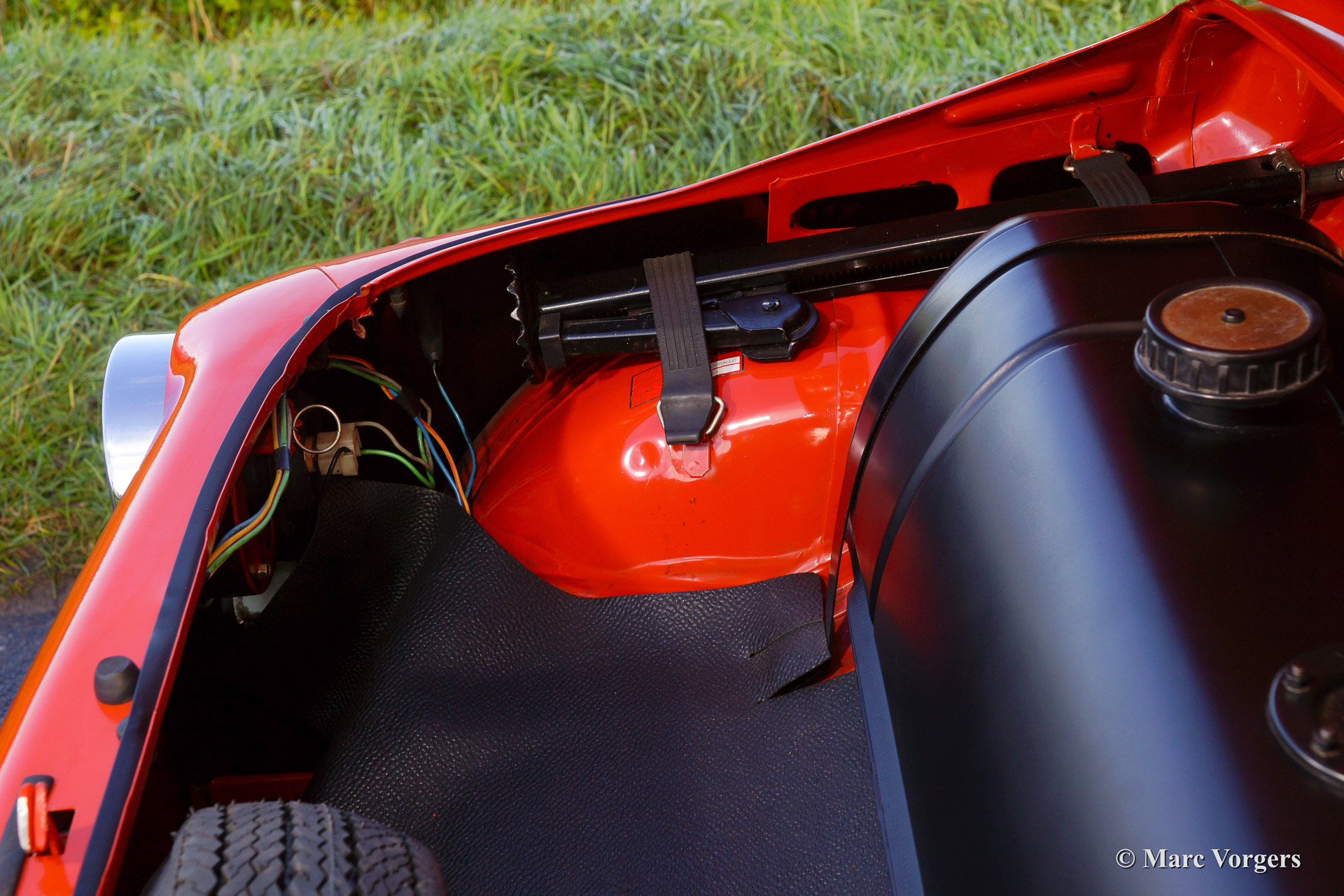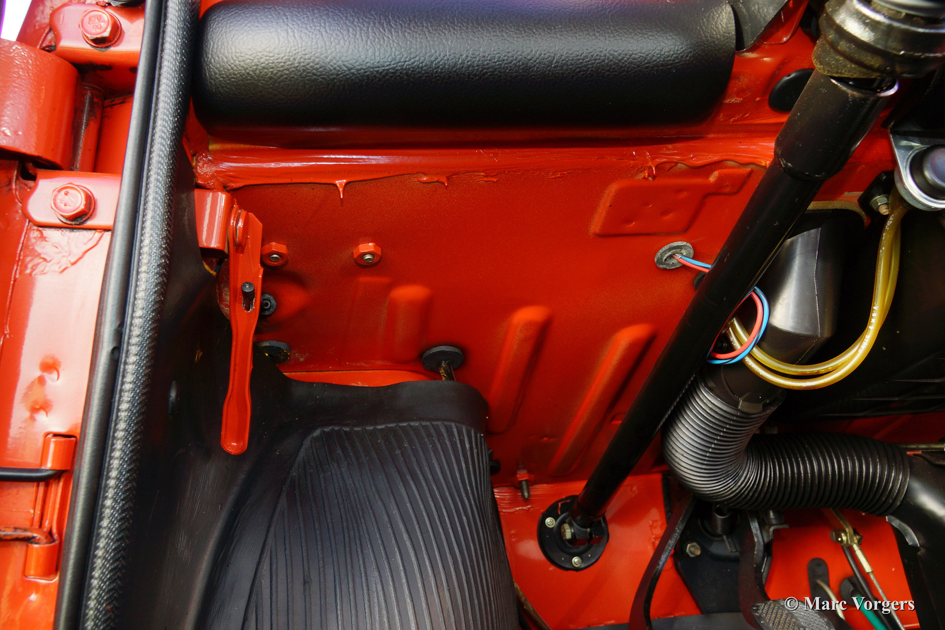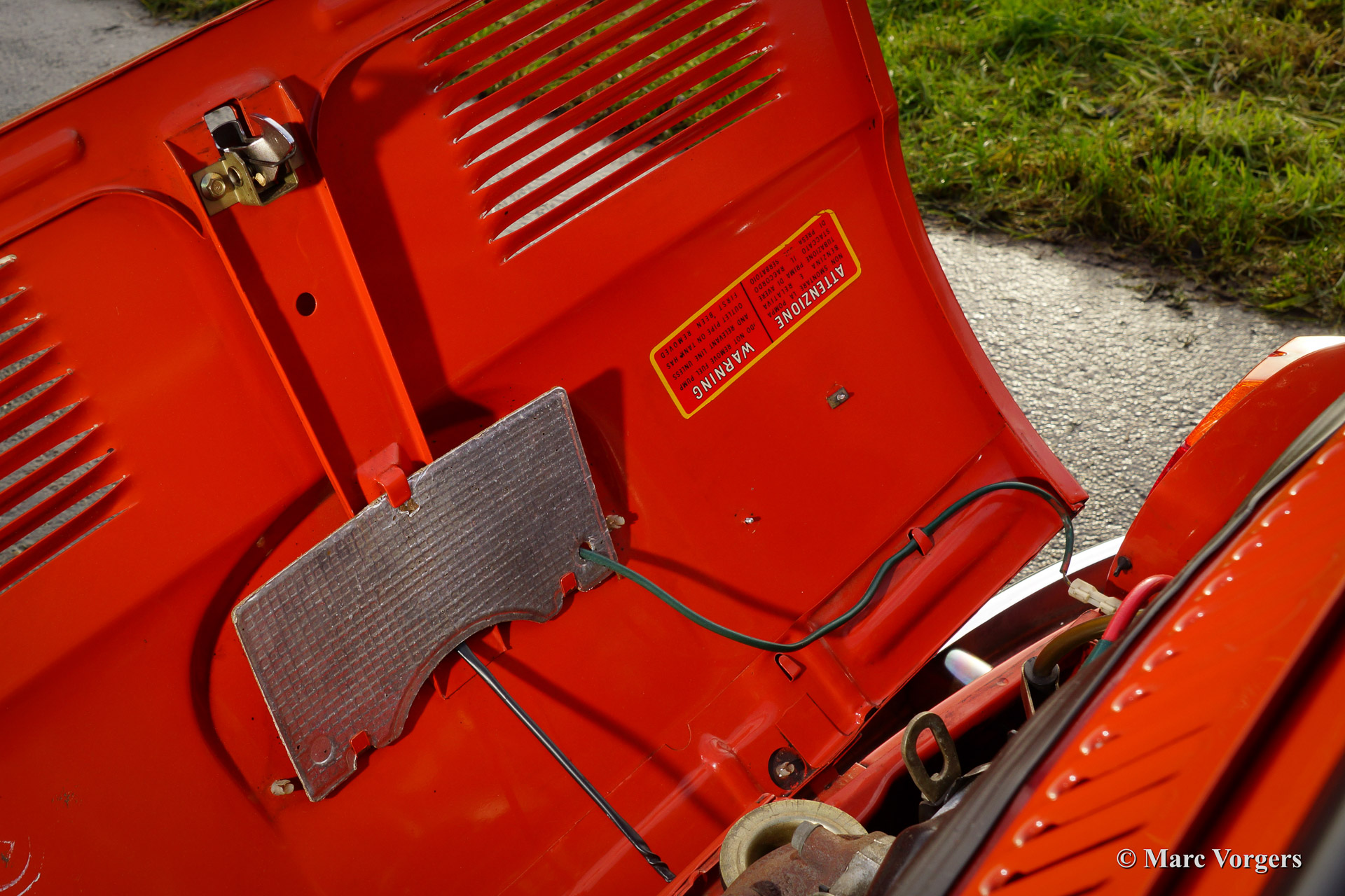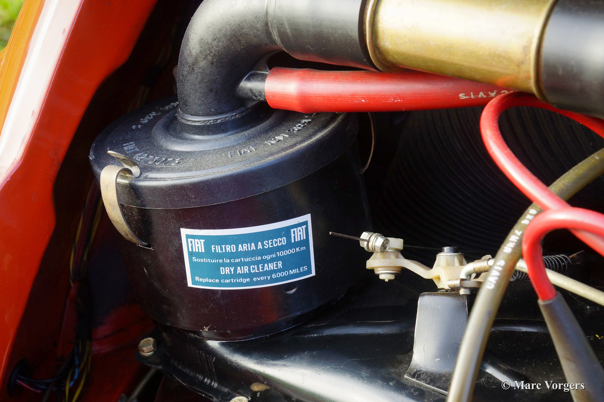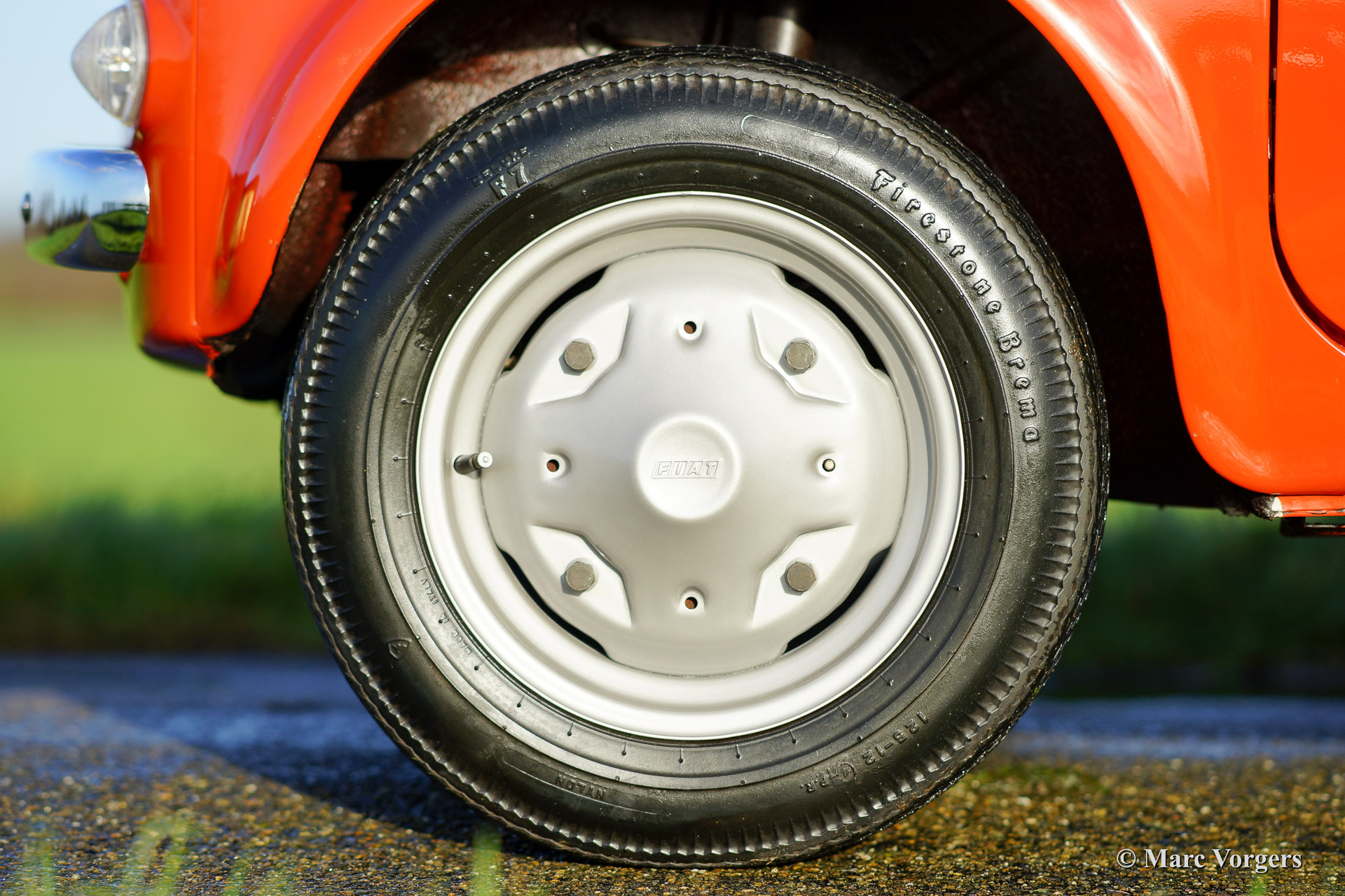 Fiat 500 R, bouwjaar 1975. Kleur rood (Rosso Corallo Scuro). Zwart interieur met zwarte kunstlederen bekleding en zwart rubber vloerbedekking. Deze Fiat ‘Cinquecento’ is een bijzonder juweel. De conditie van de auto is de droom van menig verzamelaar: volledig originele concoursstaat met 100% originele lak en zelfs nog uitgerust met de originele banden! Deze Fiat werd gebouwd in het laatste jaar van productie (1975).