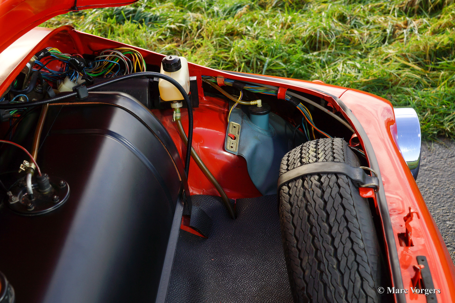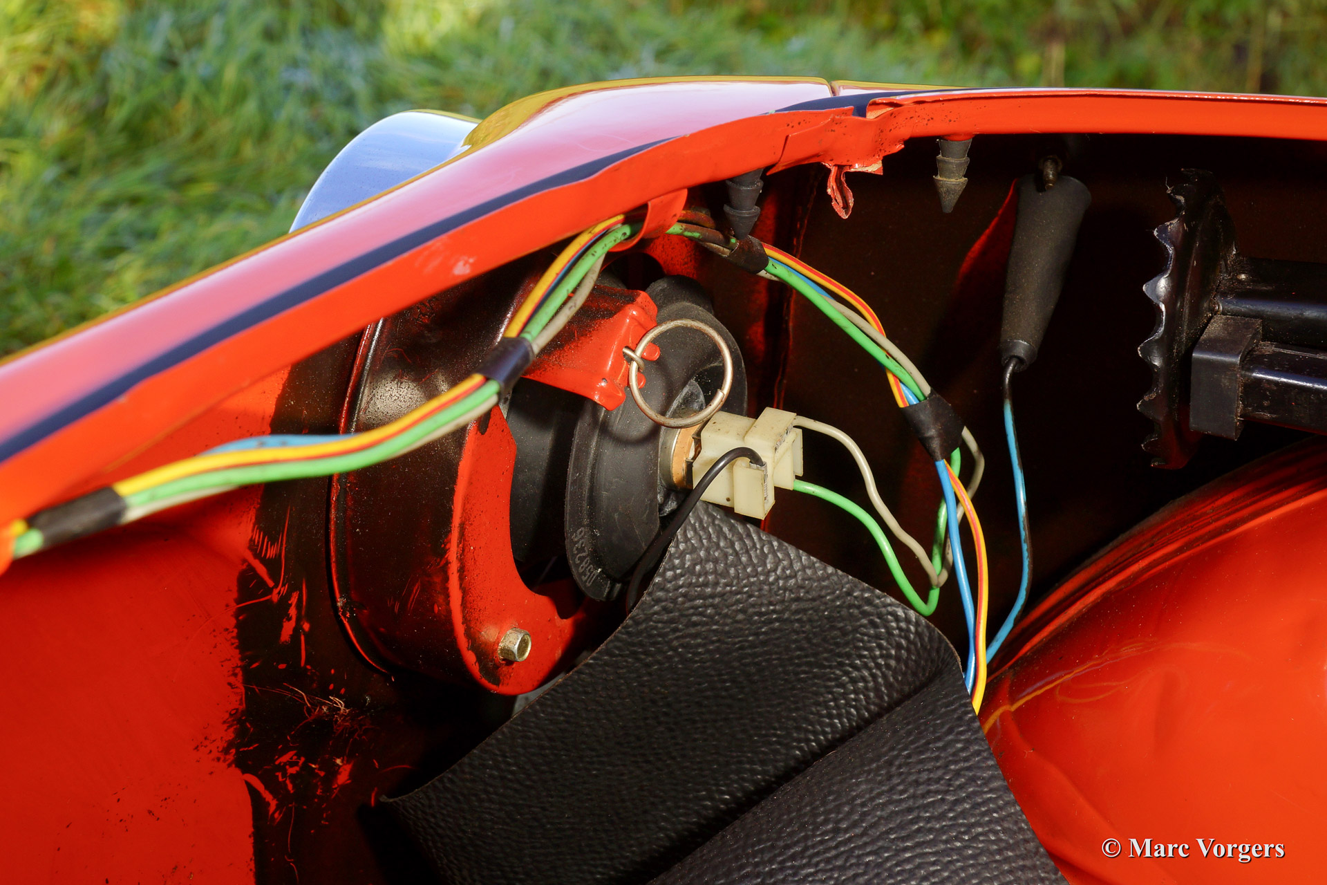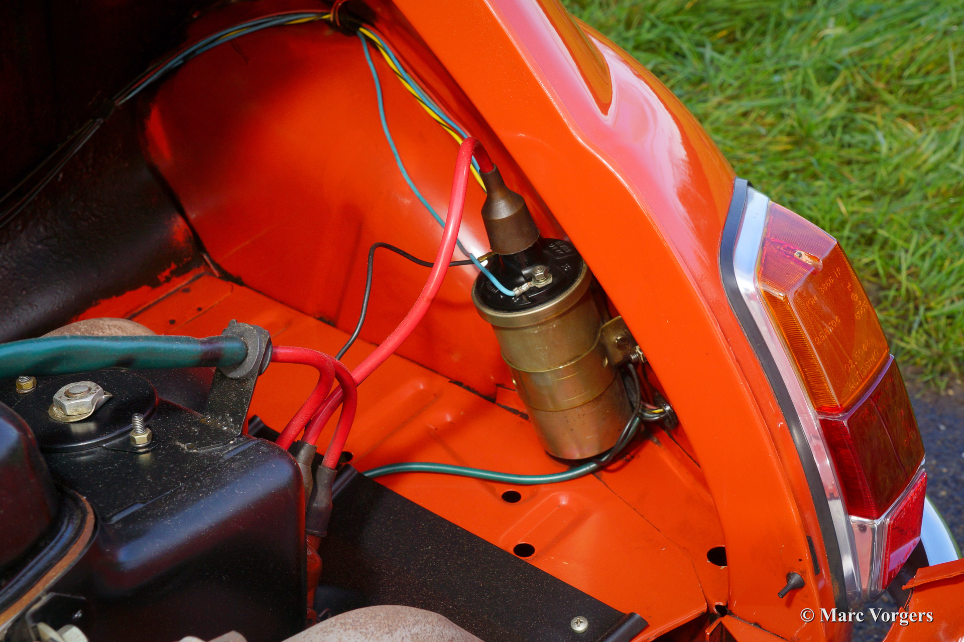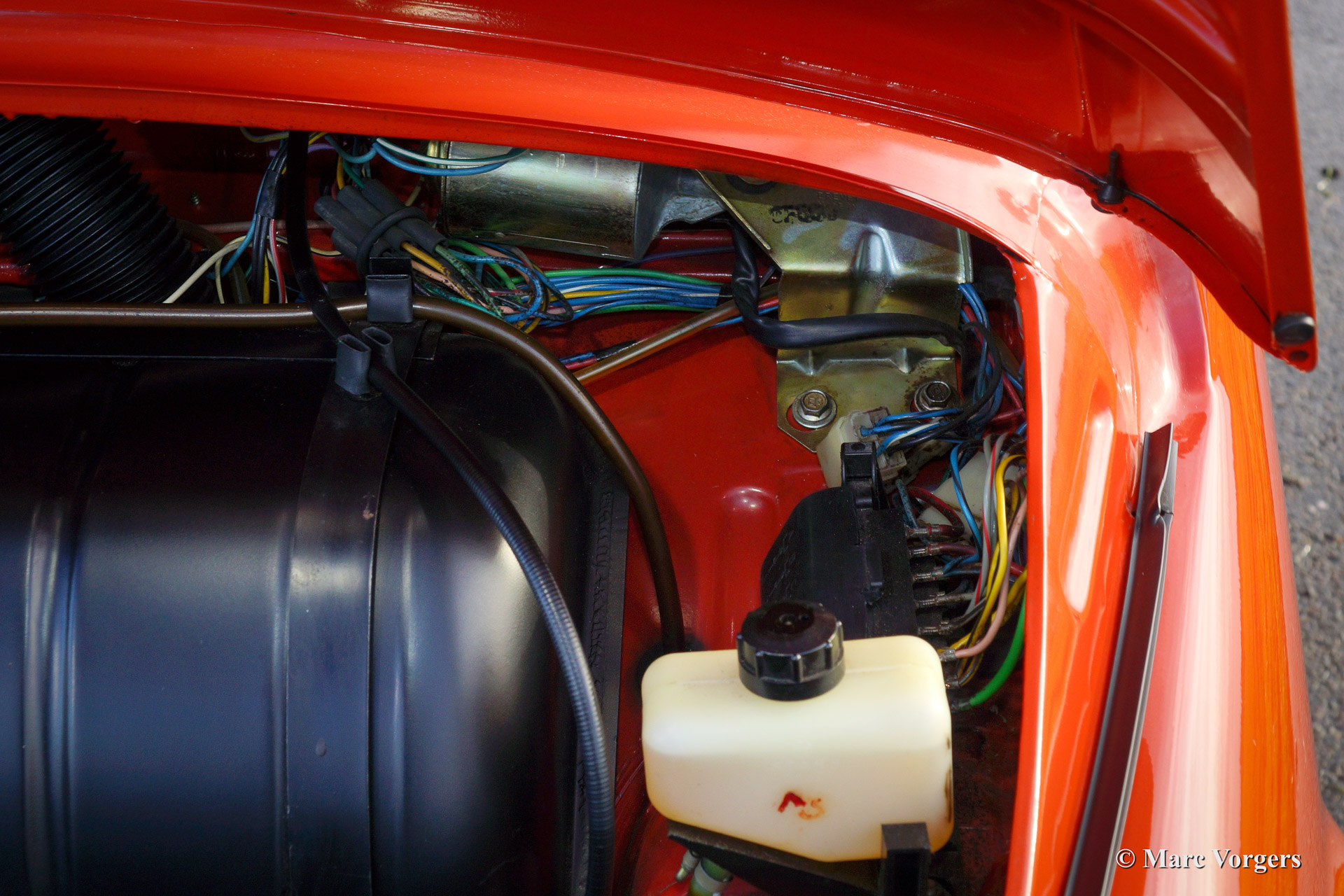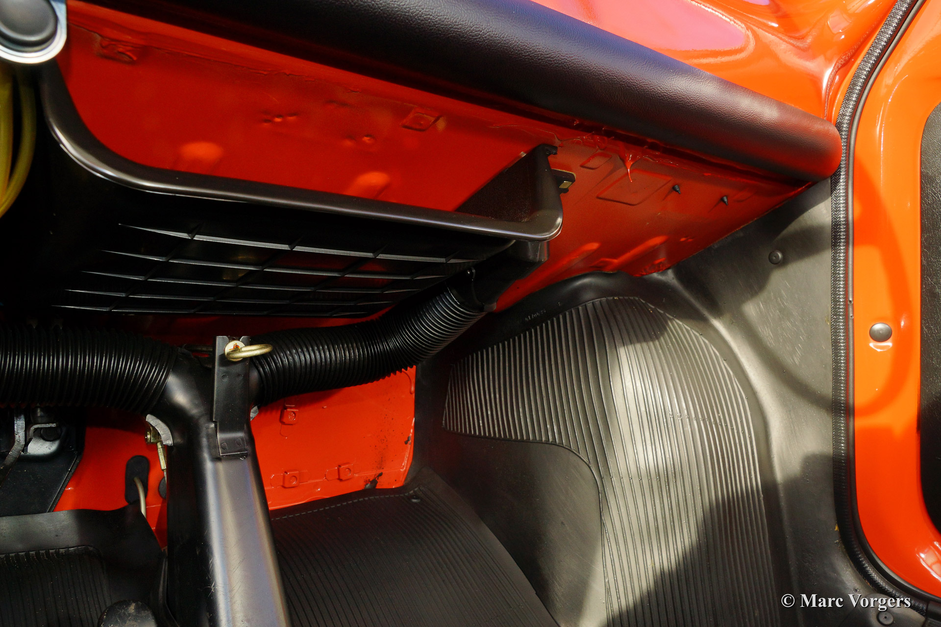 Fiat 500 R, bouwjaar 1975. Kleur rood (Rosso Corallo Scuro). Zwart interieur met zwarte kunstlederen bekleding en zwart rubber vloerbedekking. Deze Fiat ‘Cinquecento’ is een bijzonder juweel. De conditie van de auto is de droom van menig verzamelaar: volledig originele concoursstaat met 100% originele lak en zelfs nog uitgerust met de originele banden! Deze Fiat werd gebouwd in het laatste jaar van productie (1975).