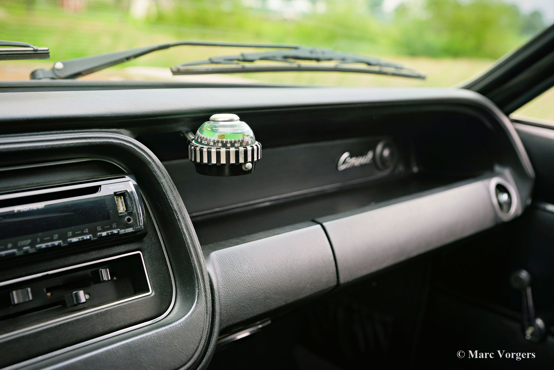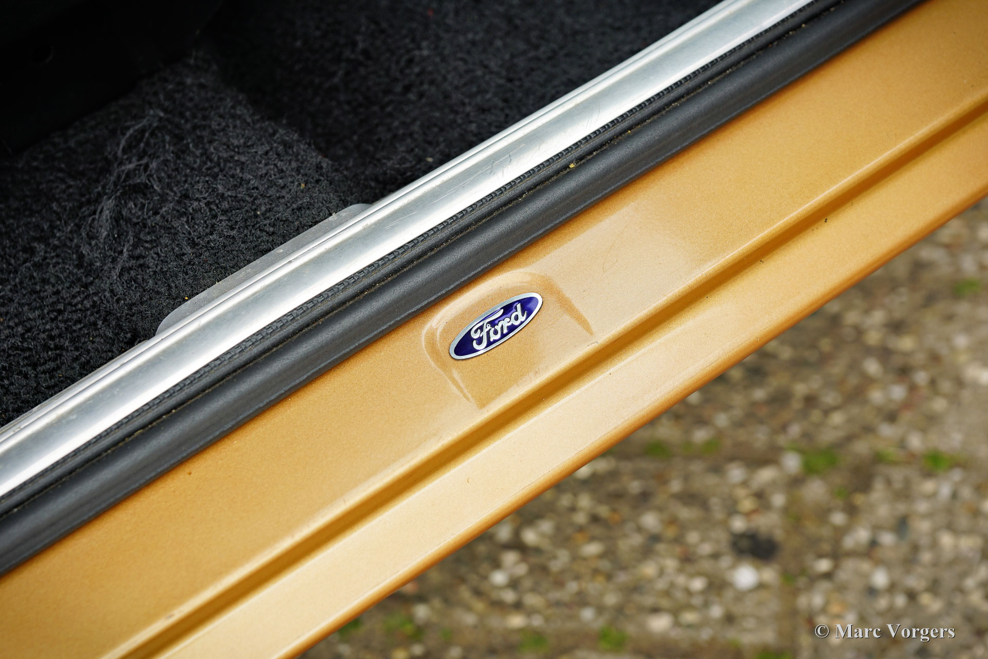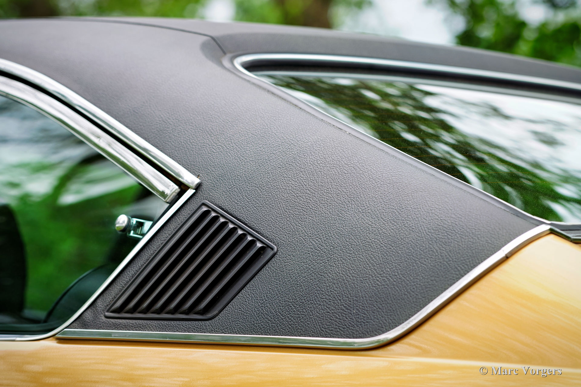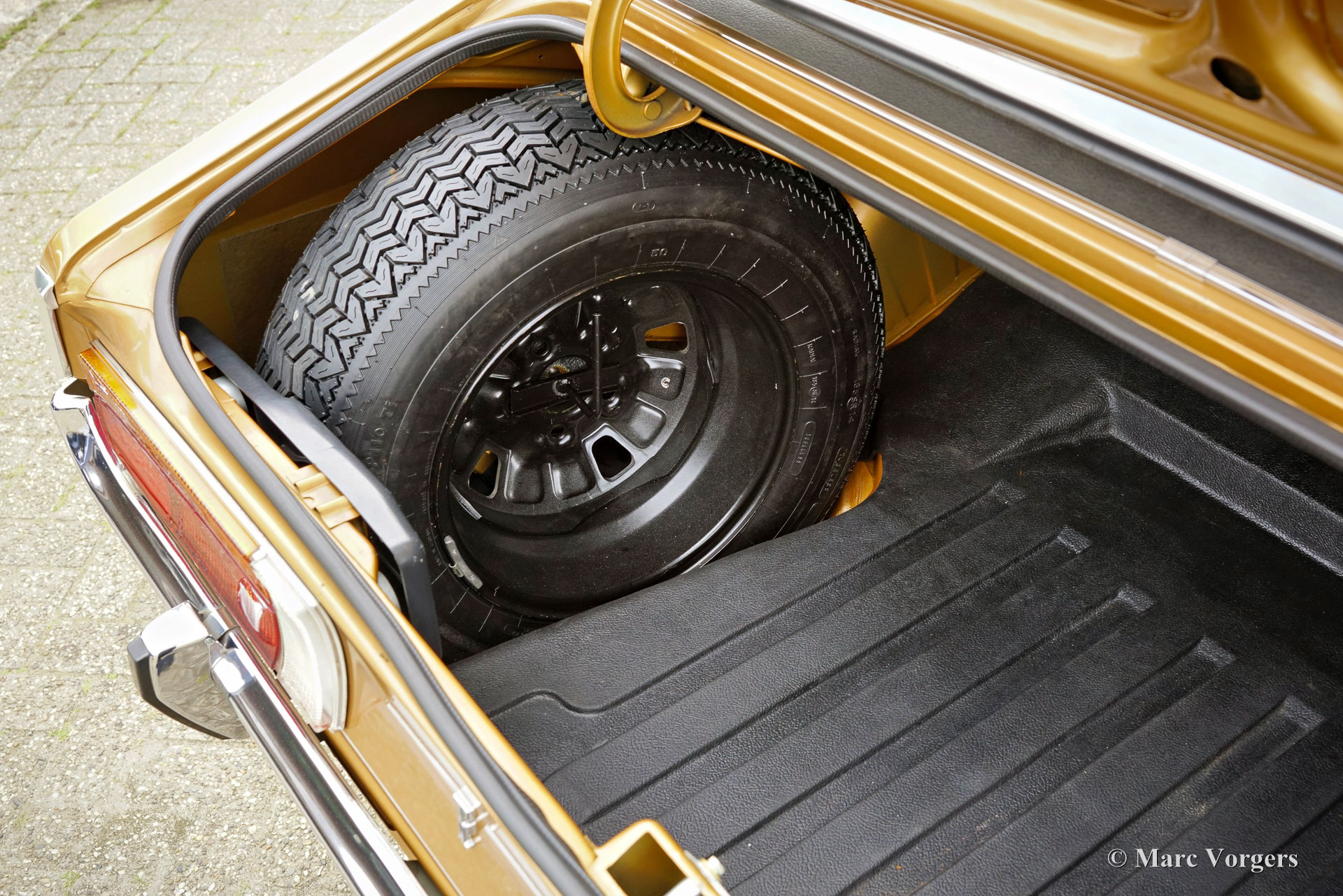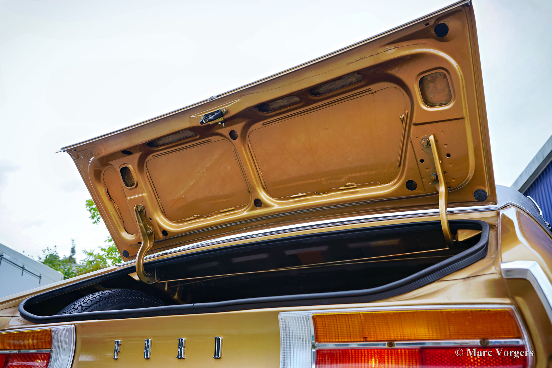 Ford Consul 2.3 GT Coupé, jaar 1974. Kleur brons/goud metallic met een zwart vinyl dak, gecombineerd met een antraciet/zwart stoffen/kunstlederen interieur afgewerkt met zwart tapijt en zwarte hemelbekleding. Deze prachtige Ford Consul 2.3 GT is nieuw verkocht in Frankrijk en de auto heeft vanaf nieuw slechts 57.000 kilometer gereden! Deze fraaie Ford verkeert in een uitmuntende en prachtige originele staat! De carrosserie toont perfecte lak, een perfect zwart vinyl dak, prachtig chroomwerk en een smetteloos origineel interieur! De buitenpanelen van de carrosserie zijn in het verleden perfect opnieuw gespoten, de lak aan de binnenkant van de deuren, motorkap en achterklepopeningen zijn allemaal origineel en de nieuwe lak “matcht” perfect! Alle originele fabrieksstickers zijn nog aanwezig. Deze Ford Consul GT is een unieke tijdcapsule, het zal moeilijk zo niet onmogelijk zijn om een tweede exemplaar te vinden in deze nooit gerestaureerde originele staat! De Ford Consul was verkrijgbaar als vierdeurs sedan, stationwagen en als tweedeurs “fastback” coupé. De hier gepresenteerde “fastback” coupé is het zeldzaamste model. De Ford Consul werd in andere landen en afhankelijk van de motorisering ook verkocht onder de naam Ford “Granada”. Na 1975 heetten al deze Ford-modellen Granada. De Ford Consul 2.3 GT wordt aangedreven door een 108 DIN pk sterke Ford “Keulen” 2,3 liter V6-motor, gekoppeld aan een handgeschakelde versnellingsbak met 4 versnellingen. De auto heeft achterwielaandrijving en de onafhankelijke wielophanging zorgt voor een uitstekende wegligging en veel comfort. De huidige eigenaar heeft een Momo sportstuur en een moderne radio gemonteerd, het originele stuur en een eerder geïnstalleerde jaren 1970 radio zijn bij de auto aanwezig. Deze Ford Consul is voorzien van een periode correct kompas op het dashboard en de auto wordt geleverd met de originele sleutelset. De volledige historie is gedocumenteerd en compleet met de originele boekjes. De Ford heeft een volledige onderhoudsbeurt gehad en alles is up-to-date. Facturen van de meest recente werkzaamheden zijn aanwezig. Deze Ford Consul 2.3 GT Coupé is een zeldzame en fantastische vondst voor de (Ford) oldtimerliefhebber!