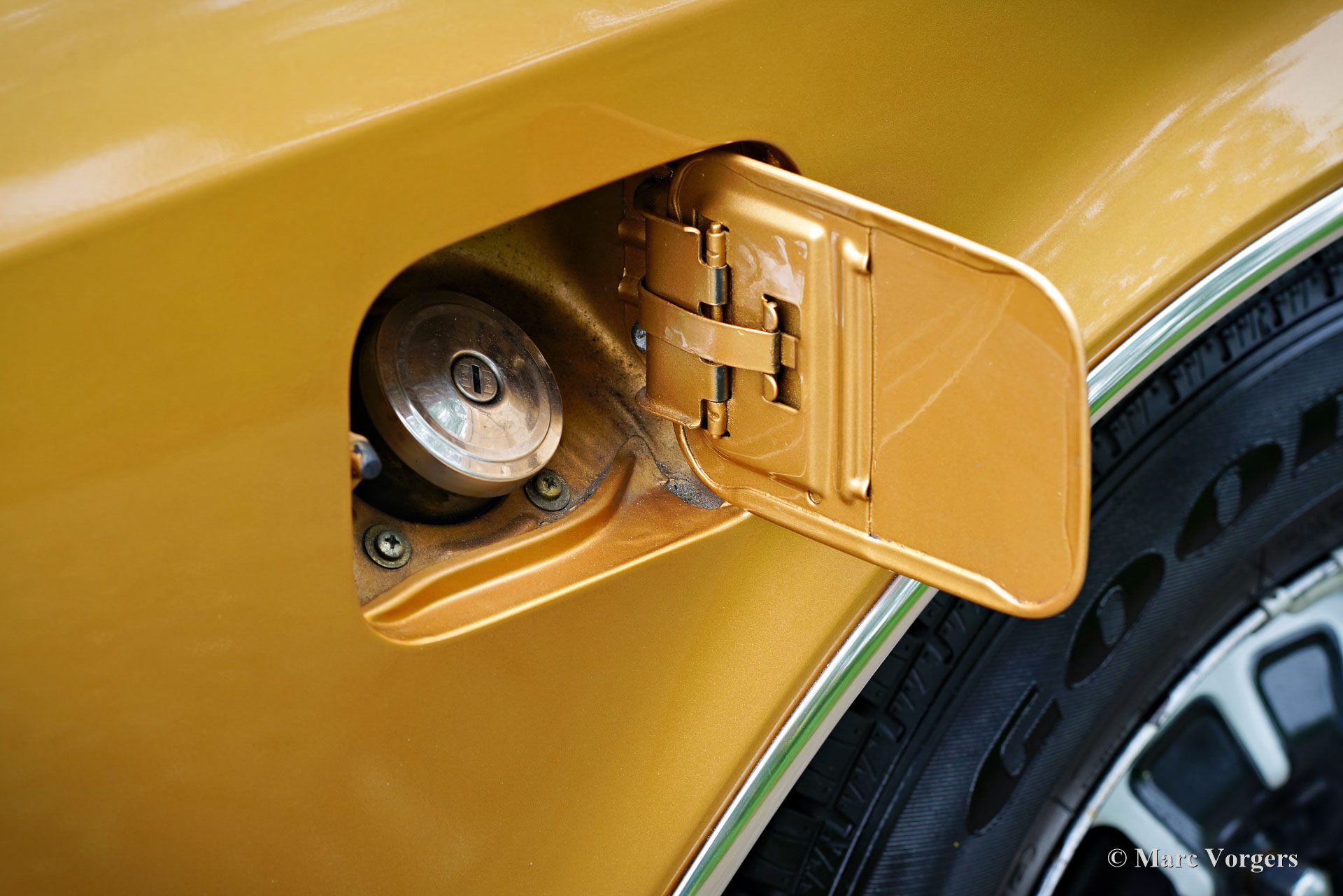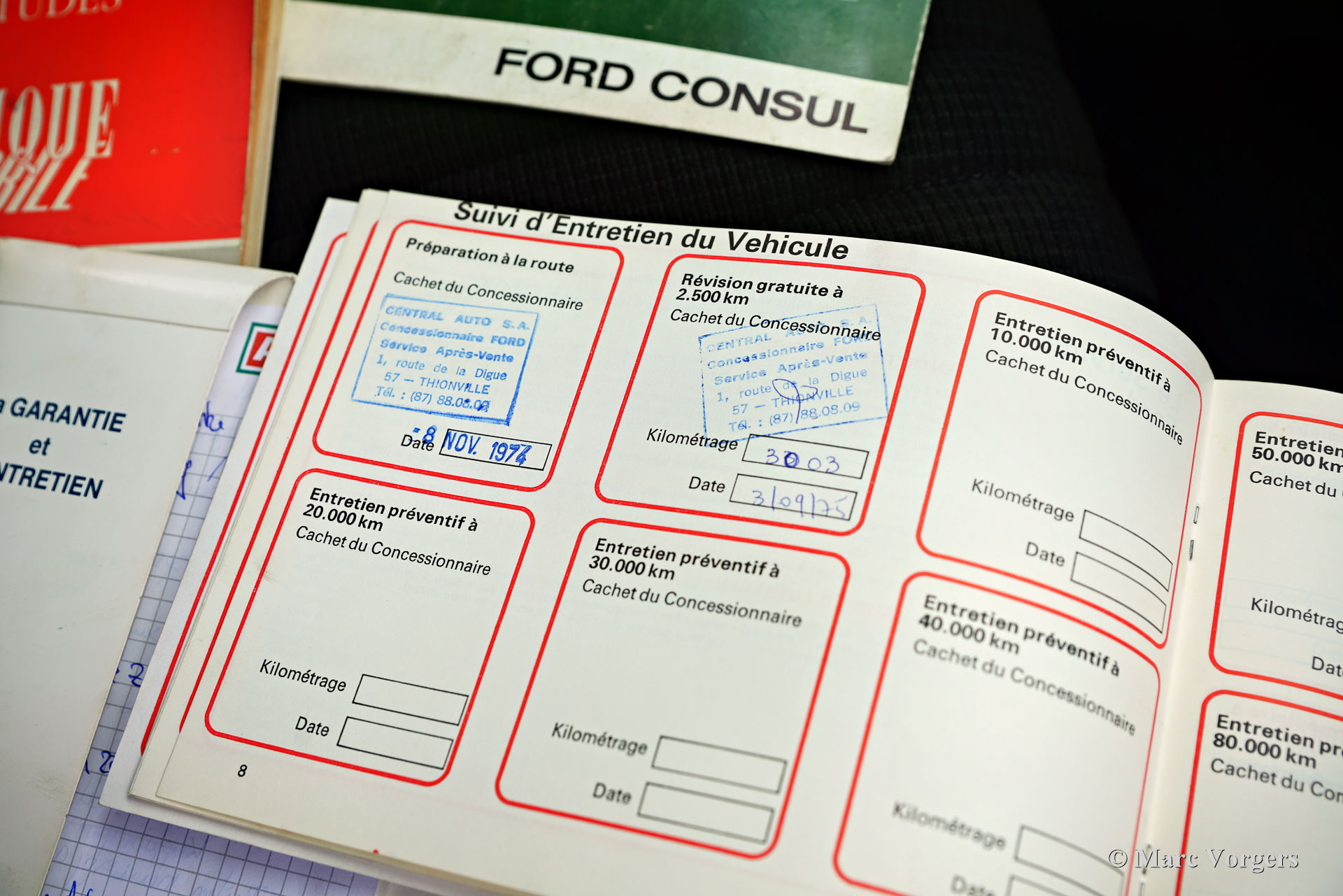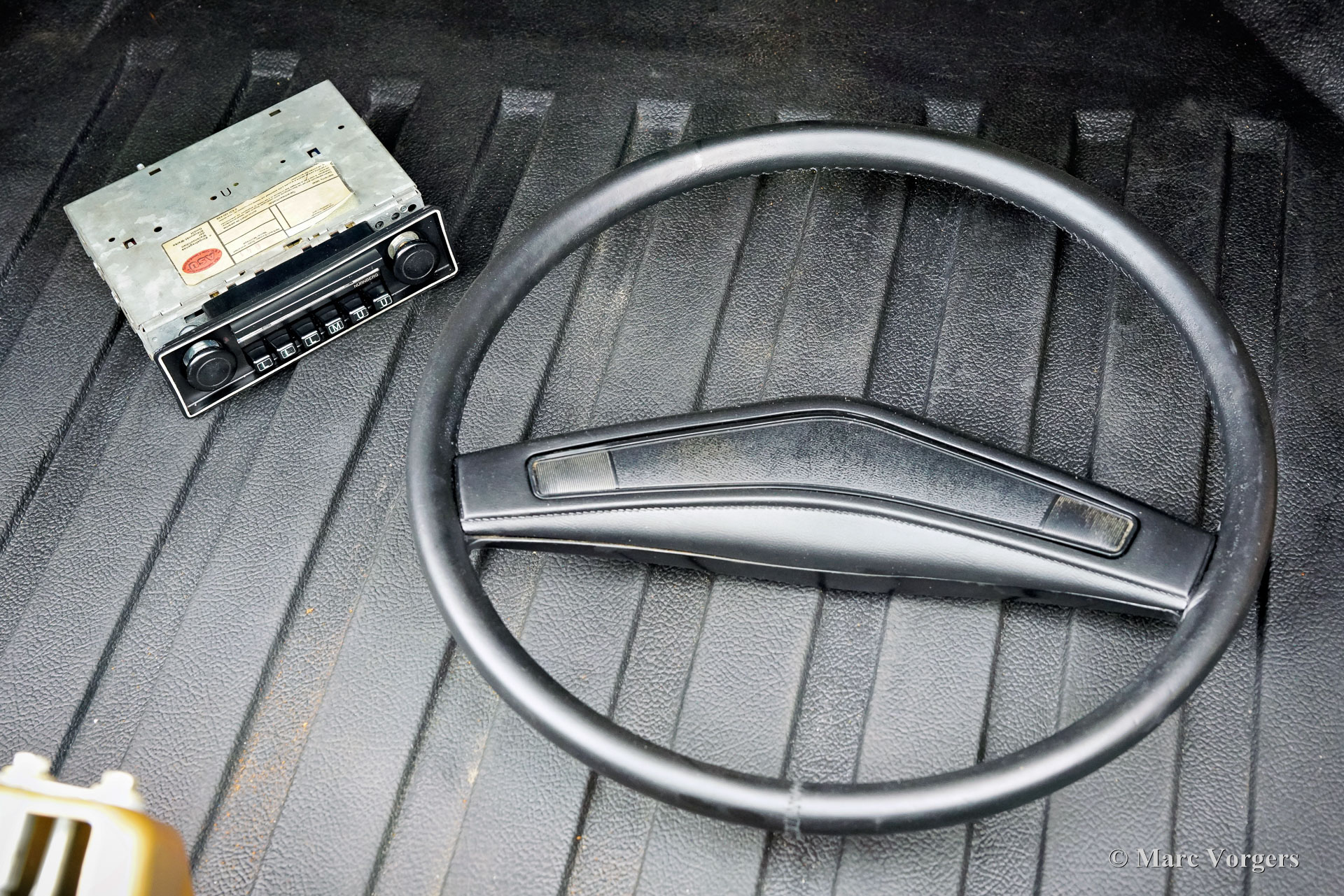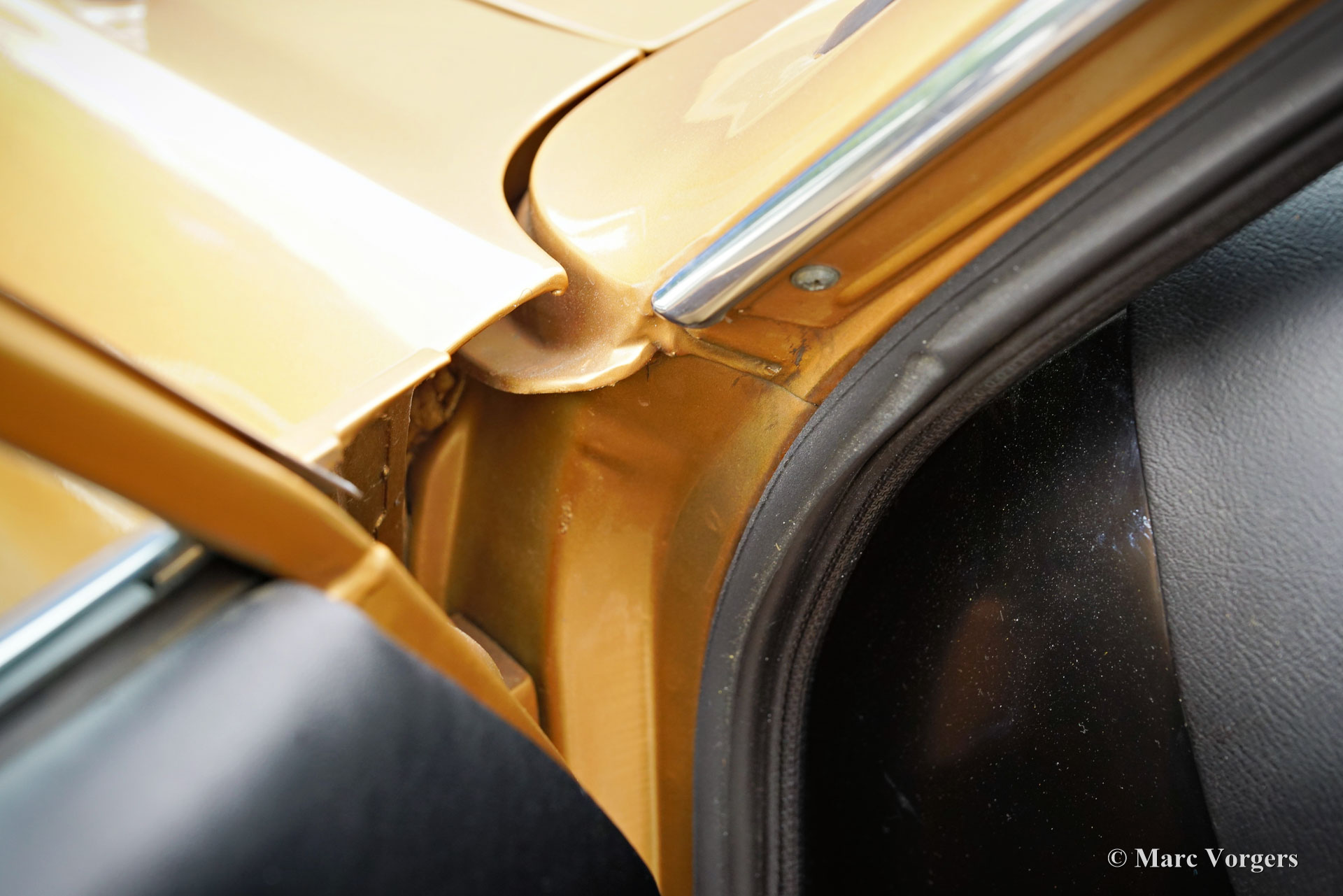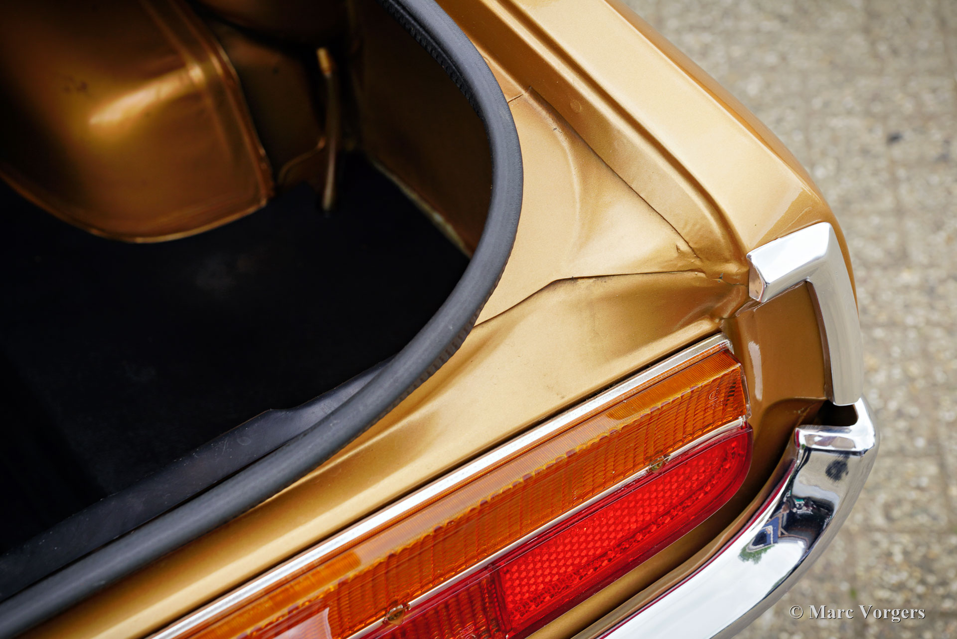 Ford Consul 2.3 GT Coupé, jaar 1974. Kleur brons/goud metallic met een zwart vinyl dak, gecombineerd met een antraciet/zwart stoffen/kunstlederen interieur afgewerkt met zwart tapijt en zwarte hemelbekleding. Deze prachtige Ford Consul 2.3 GT is nieuw verkocht in Frankrijk en de auto heeft vanaf nieuw slechts 57.000 kilometer gereden! Deze fraaie Ford verkeert in een uitmuntende en prachtige originele staat! De carrosserie toont perfecte lak, een perfect zwart vinyl dak, prachtig chroomwerk en een smetteloos origineel interieur! De buitenpanelen van de carrosserie zijn in het verleden perfect opnieuw gespoten, de lak aan de binnenkant van de deuren, motorkap en achterklepopeningen zijn allemaal origineel en de nieuwe lak “matcht” perfect! Alle originele fabrieksstickers zijn nog aanwezig. Deze Ford Consul GT is een unieke tijdcapsule, het zal moeilijk zo niet onmogelijk zijn om een tweede exemplaar te vinden in deze nooit gerestaureerde originele staat! De Ford Consul was verkrijgbaar als vierdeurs sedan, stationwagen en als tweedeurs “fastback” coupé. De hier gepresenteerde “fastback” coupé is het zeldzaamste model. De Ford Consul werd in andere landen en afhankelijk van de motorisering ook verkocht onder de naam Ford “Granada”. Na 1975 heetten al deze Ford-modellen Granada. De Ford Consul 2.3 GT wordt aangedreven door een 108 DIN pk sterke Ford “Keulen” 2,3 liter V6-motor, gekoppeld aan een handgeschakelde versnellingsbak met 4 versnellingen. De auto heeft achterwielaandrijving en de onafhankelijke wielophanging zorgt voor een uitstekende wegligging en veel comfort. De huidige eigenaar heeft een Momo sportstuur en een moderne radio gemonteerd, het originele stuur en een eerder geïnstalleerde jaren 1970 radio zijn bij de auto aanwezig. Deze Ford Consul is voorzien van een periode correct kompas op het dashboard en de auto wordt geleverd met de originele sleutelset. De volledige historie is gedocumenteerd en compleet met de originele boekjes. De Ford heeft een volledige onderhoudsbeurt gehad en alles is up-to-date. Facturen van de meest recente werkzaamheden zijn aanwezig. Deze Ford Consul 2.3 GT Coupé is een zeldzame en fantastische vondst voor de (Ford) oldtimerliefhebber!
