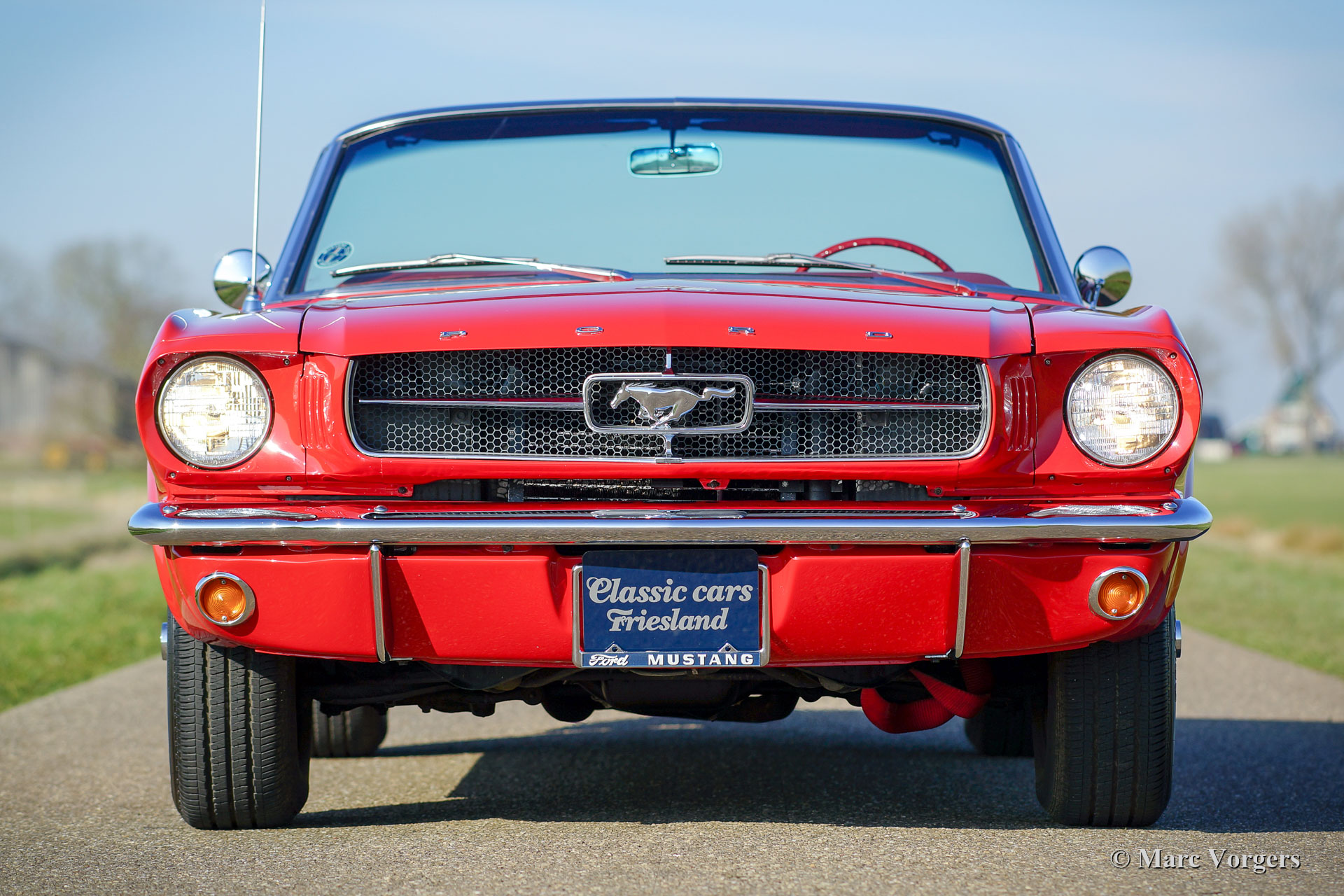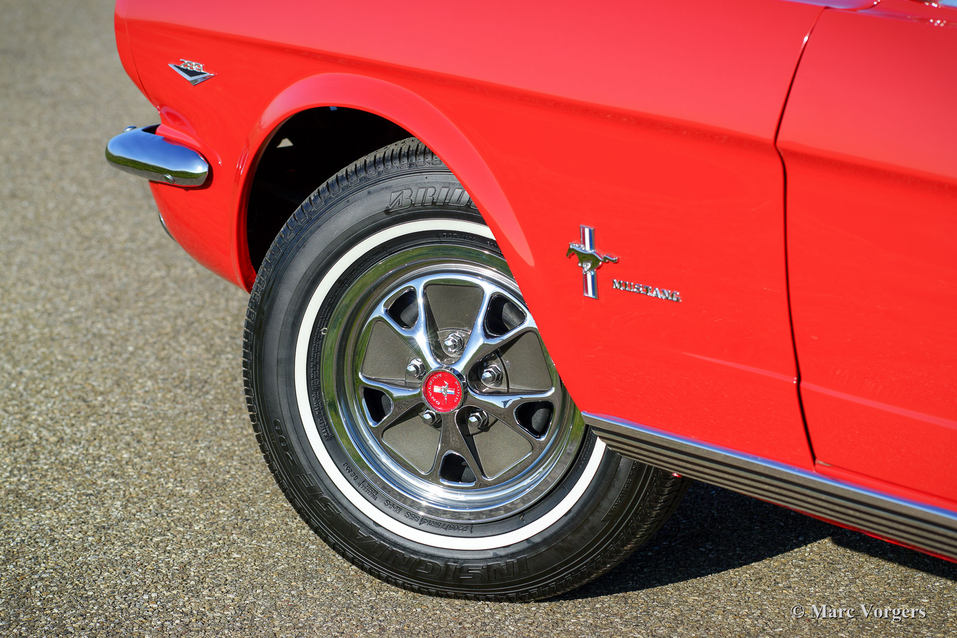 Ford Mustang 289 convertible, jaar 1965. Kleur rood met een rood leren interieur en rood tapijt. Zwarte cabrioletkap en een rode kapafdekking. Deze fantastische Ford Mustang werd professioneel en uitgebreid gerestaureerd naar absolute topstaat; concours! Dit is een gezocht 1965 model met de krachtige 289 cui (4,7 liter) V8-motor gecombineerd met een automatische 3-versnellingsbak. Deze prachtige Ford Mustang is voorzien van airconditioning, een elektrisch bediende cabrioletkap en een automatische versnellingsbak. Dit is een TOP-exemplaar!